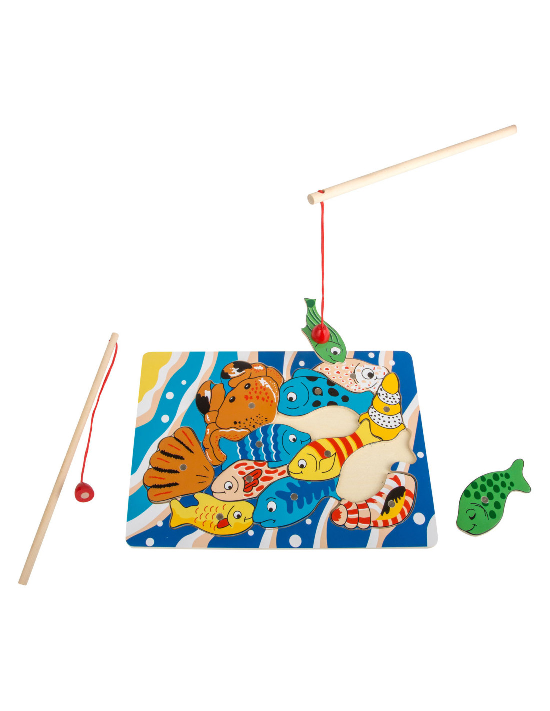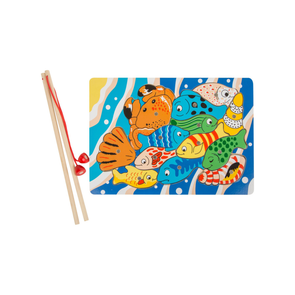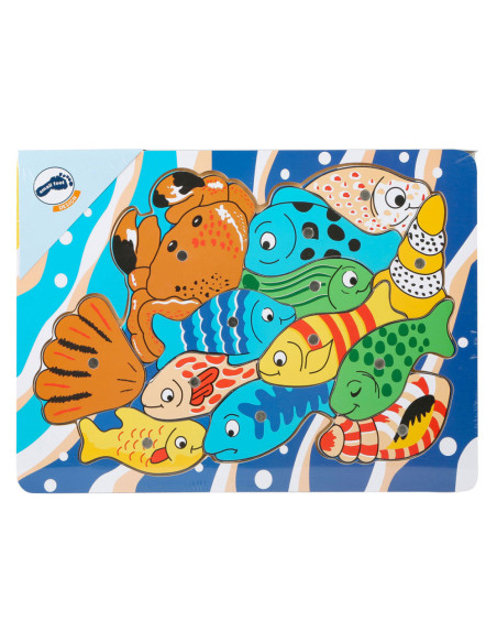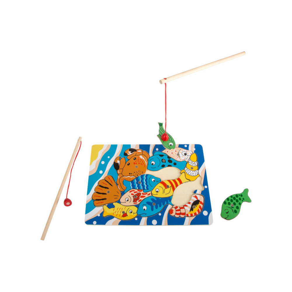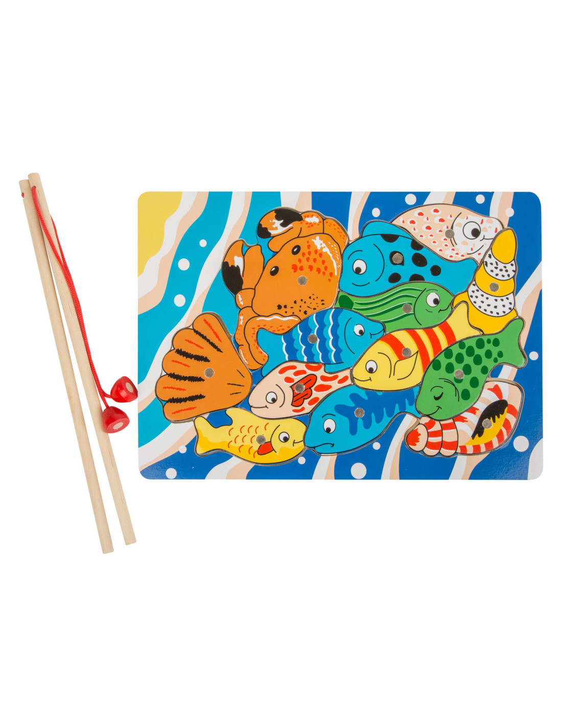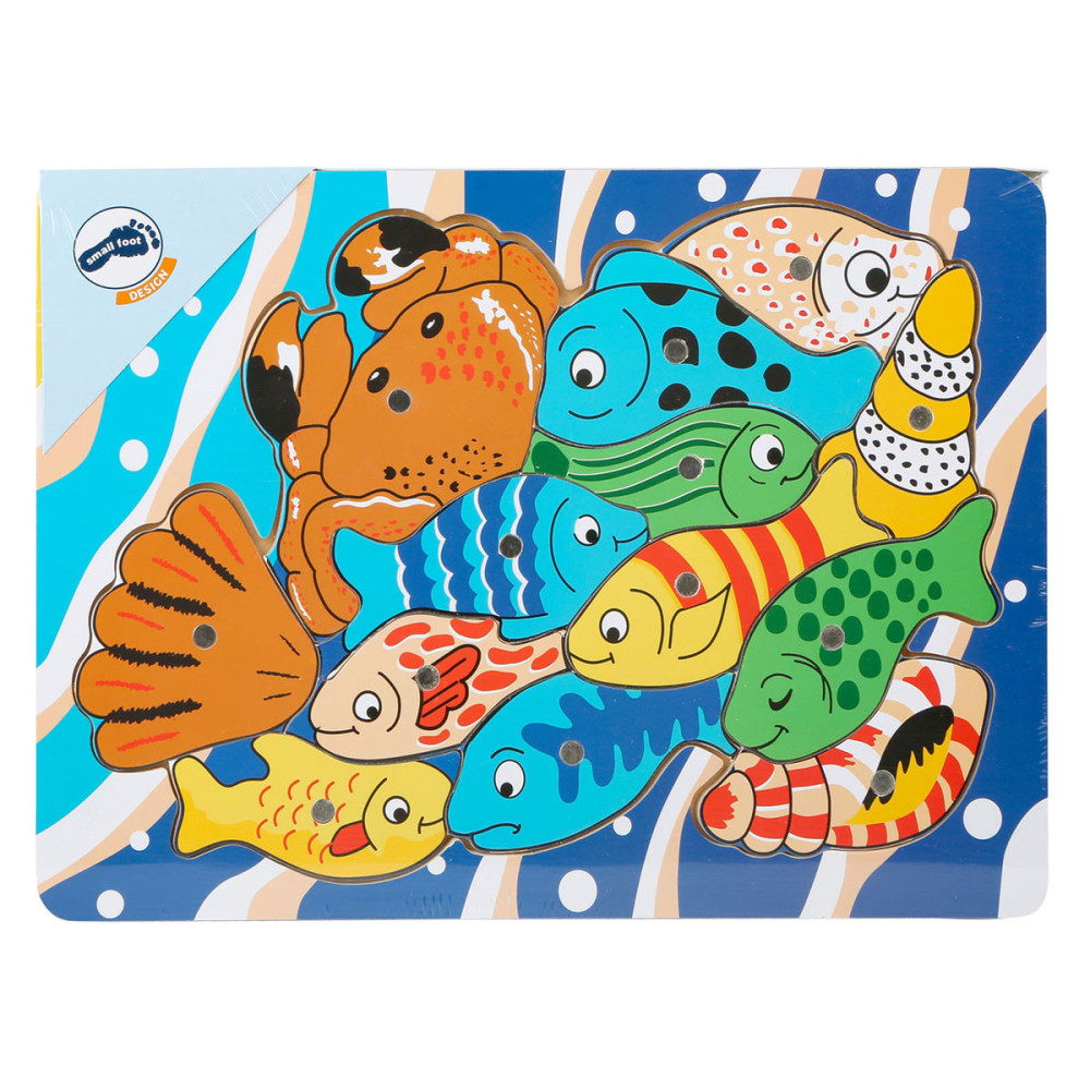 Dit visspel is ook een geweldige puzzel! Zodra je alle zeedieren uit de houten puzzellijst hebt gevist, kunnen de individuele houten vissen, kokkels en krabben weer in elkaar worden gezet in de lijst. Hiermee train je tegelijkertijd de oog-handcoördinatie en het geheugen. Een prachtige combinatie van een puzzel en een visspel!