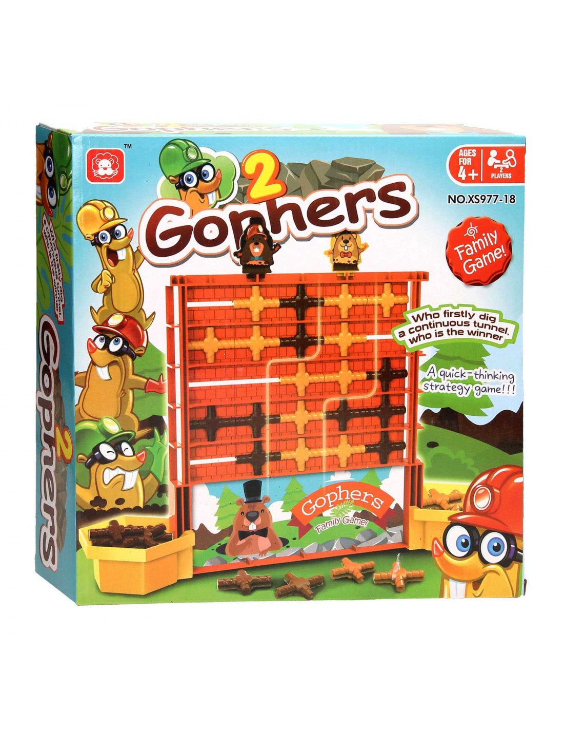 Strategisch spel voor 2 personen vanaf 4 jaar. Wie graaft het snelst een doorlopende gang naar boven voor de schattige marmotten? Gemaakt van kunststof. Dit spel bevat een Engelstalige handleiding.