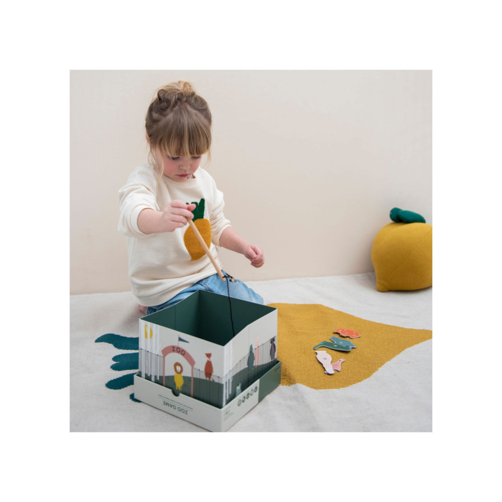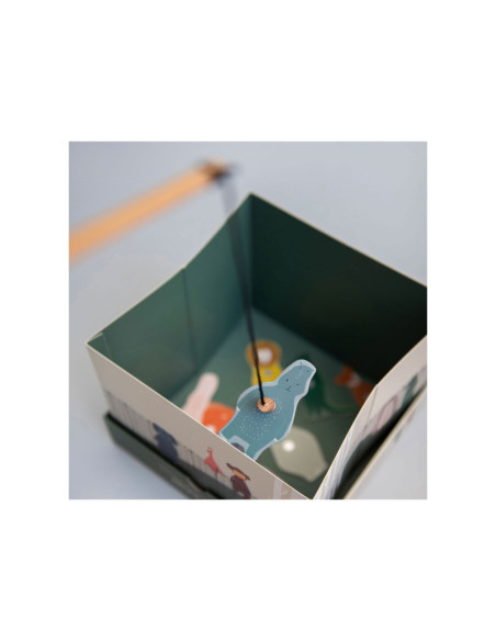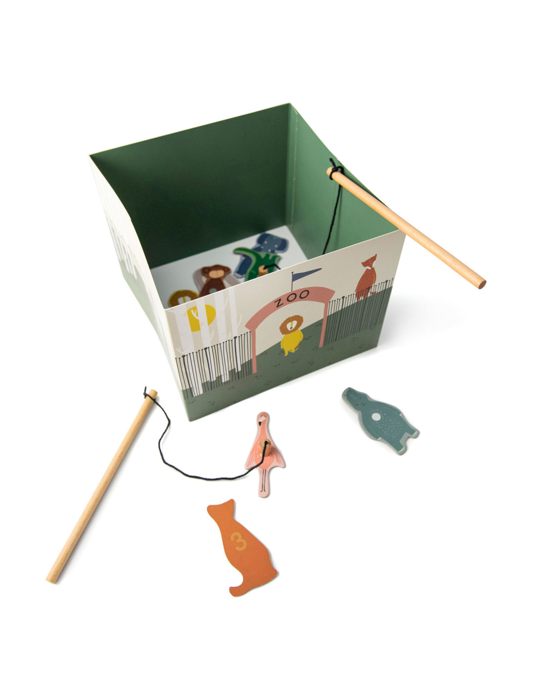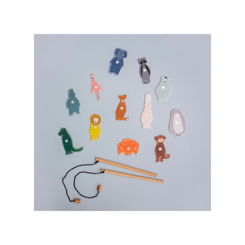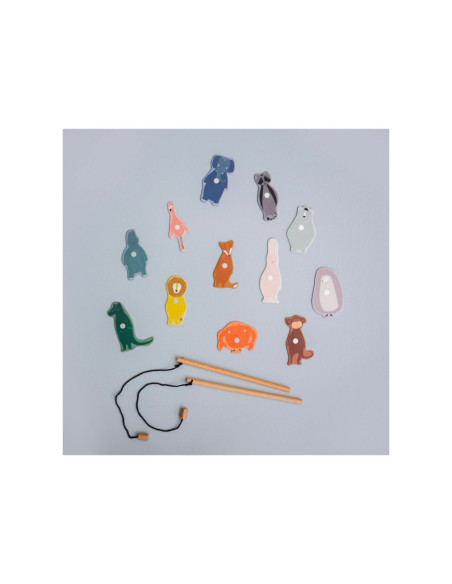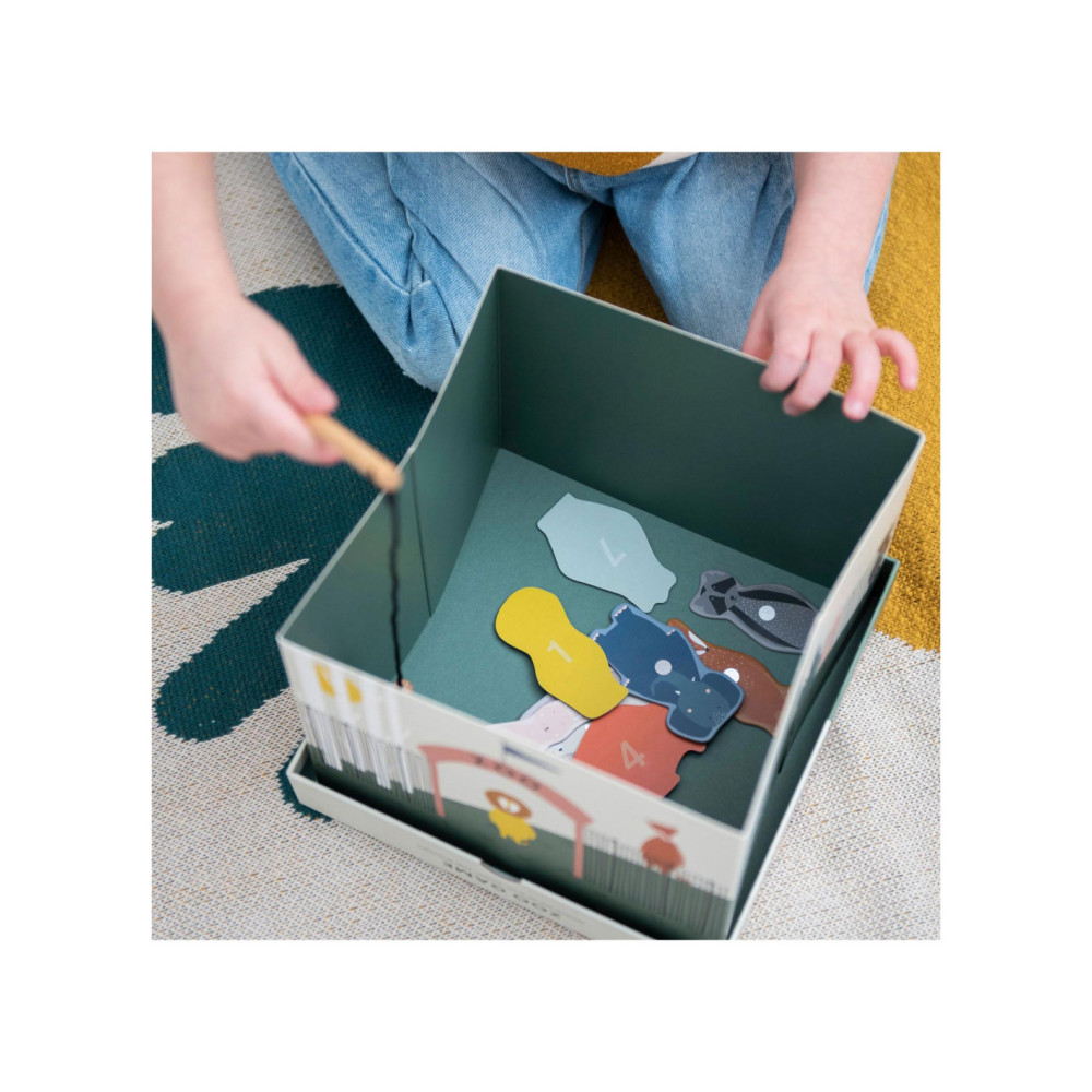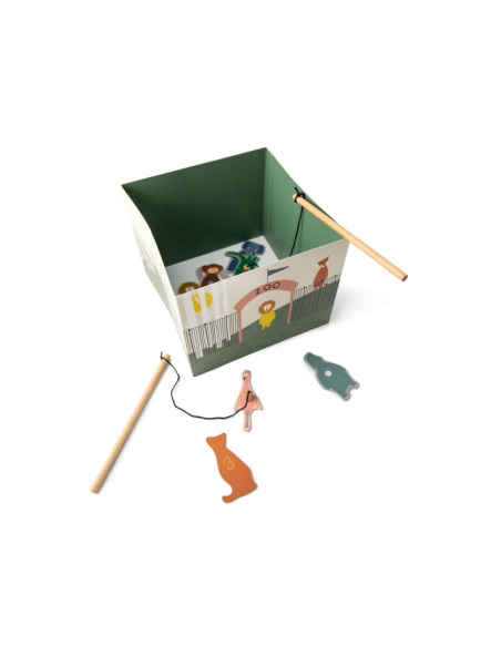 Pak een hengel en help onze dierenvrienden ontsnappen uit de zoo! Dit leuke spel bestaat uit 12 dieren, 2 houten hengels en een opvouwbare zoo. De dieren hebben een nummer op hun rug. Kinderen kunnen samenwerken om zo snel mogelijk zoveel mogelijk dieren te vangen of elkaar uitdagen om zoveel mogelijk punten te verzamelen! Een geweldig spel waar kinderen urenlang van kunnen genieten en hun motoriek oefenen. Dit spel is gemaakt van sterk FSC© karton en is bedrukt met soya inkt.