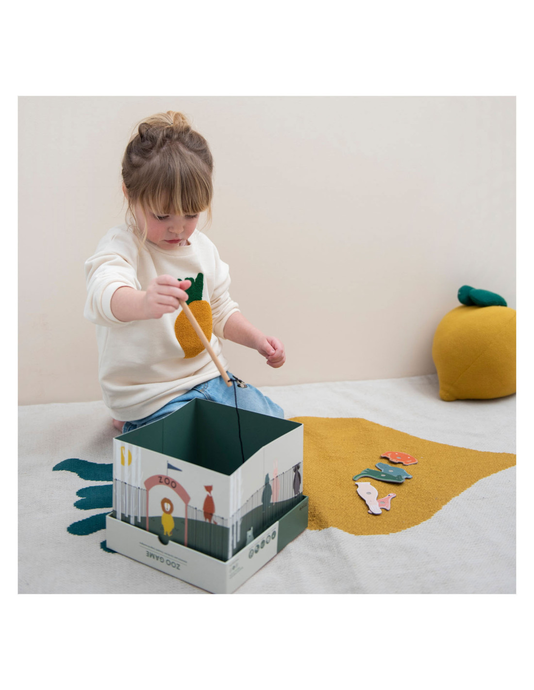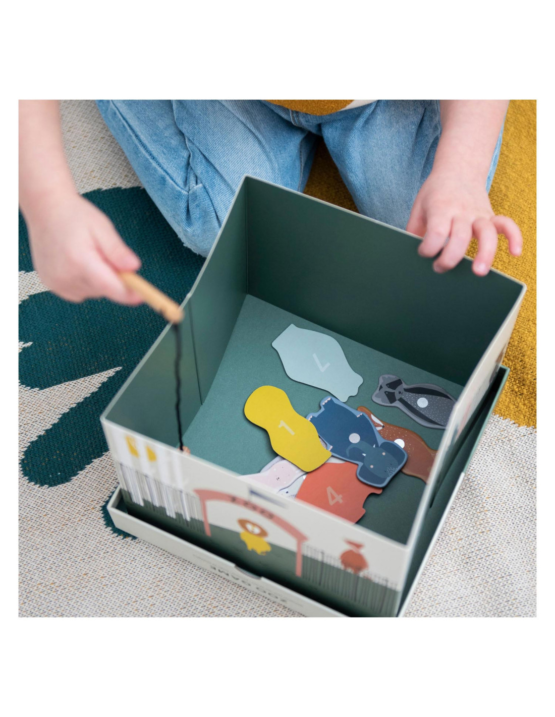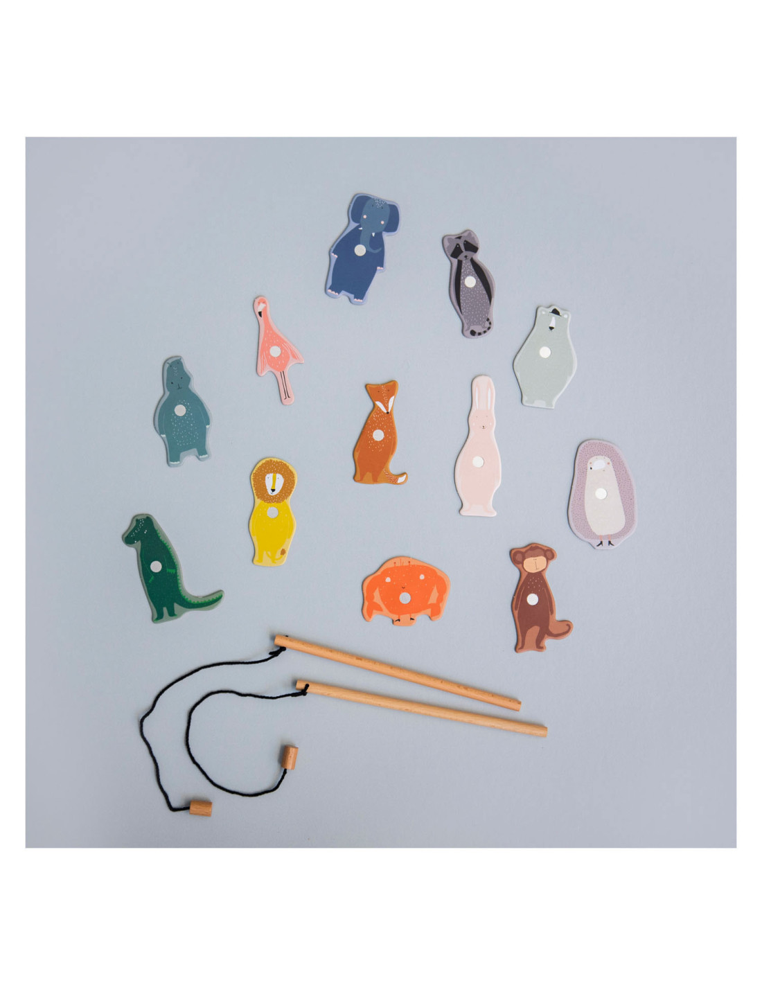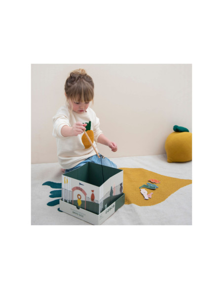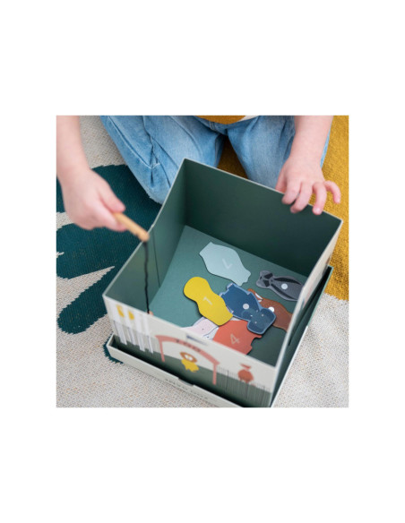 Pak een hengel en help onze dierenvrienden ontsnappen uit de zoo! Dit leuke spel bestaat uit 12 dieren, 2 houten hengels en een opvouwbare zoo. De dieren hebben een nummer op hun rug. Kinderen kunnen samenwerken om zo snel mogelijk zoveel mogelijk dieren te vangen of elkaar uitdagen om zoveel mogelijk punten te verzamelen! Een geweldig spel waar kinderen urenlang van kunnen genieten en hun motoriek oefenen. Dit spel is gemaakt van sterk FSC© karton en is bedrukt met soya inkt.