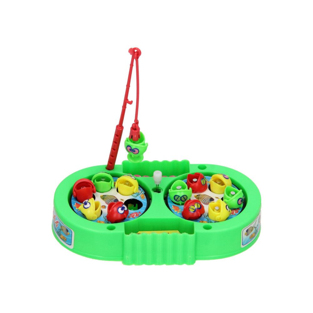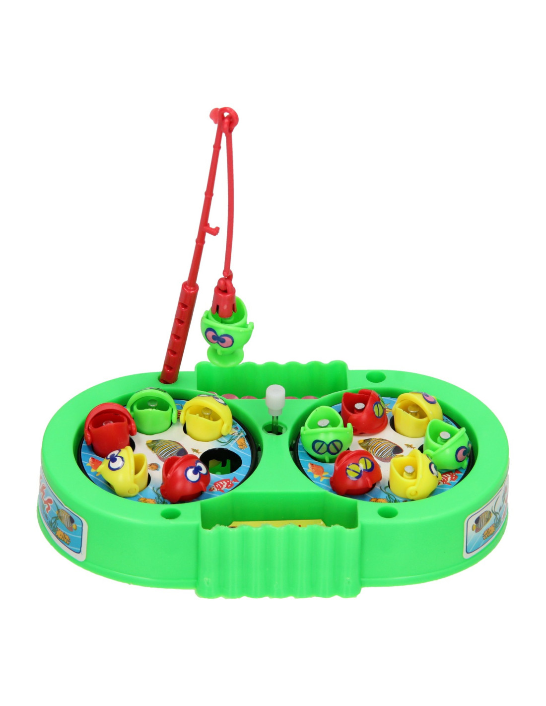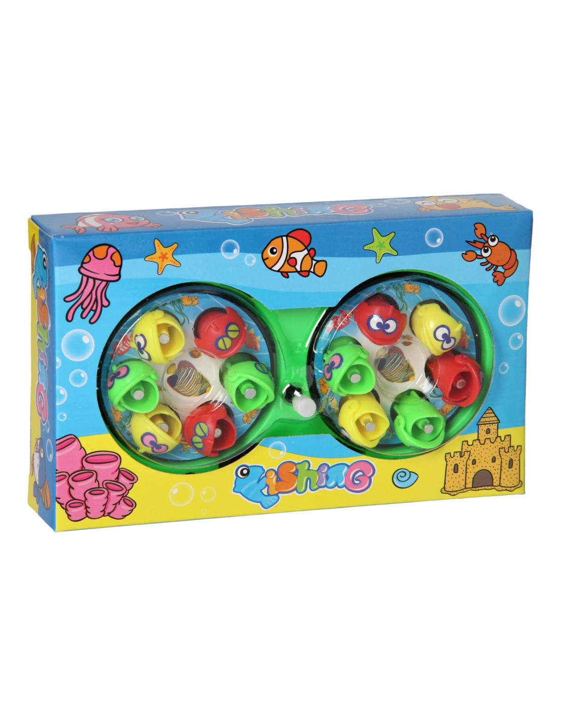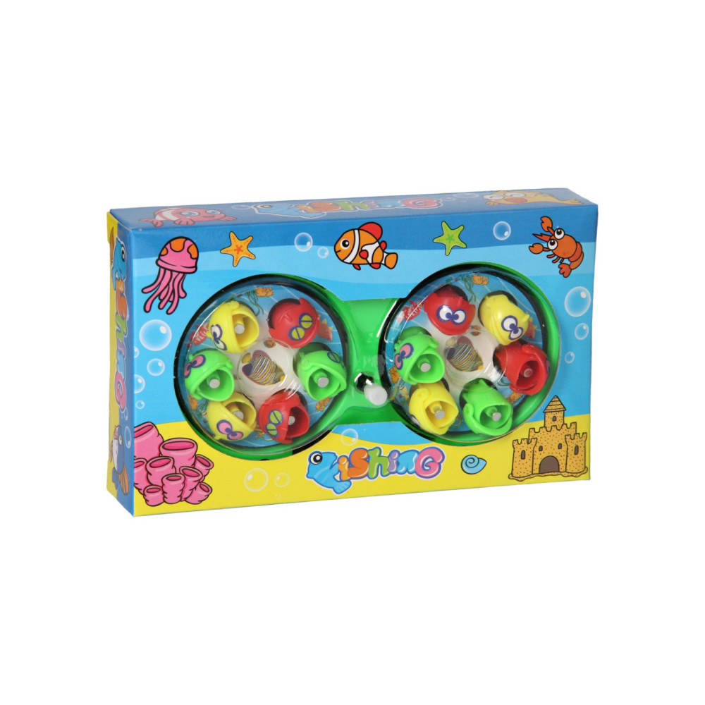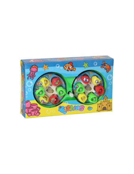 Vang de lekkerste visjes in dit luxe vishengelspel. Gooi je hengel uit en probeer alle vissen binnen te halen. Zorg dat het haakje van jouw hengel in de bek van de vis zit als hij zijn bekje dicht doet. Doordat het spel uit 2 vijvers bestaat kan je nog meer visjes vangen. De set bevat 12 visjes en 1 hengel.