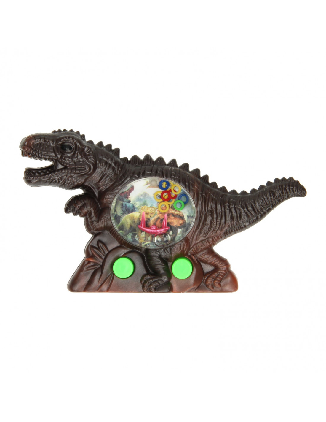 Met dit watergeduldspel in dinosaurus thema wordt het spelen nog leuker en avontuurlijker. Druk op de knopjes van het spelletje en laat de ringetjes door het water dwarrelen. Het doel is om de ringetjes precies op de staafjes te laten landen. Maar pas op, het vergt precisie en geduld om de uitdaging succesvol te voltooien!