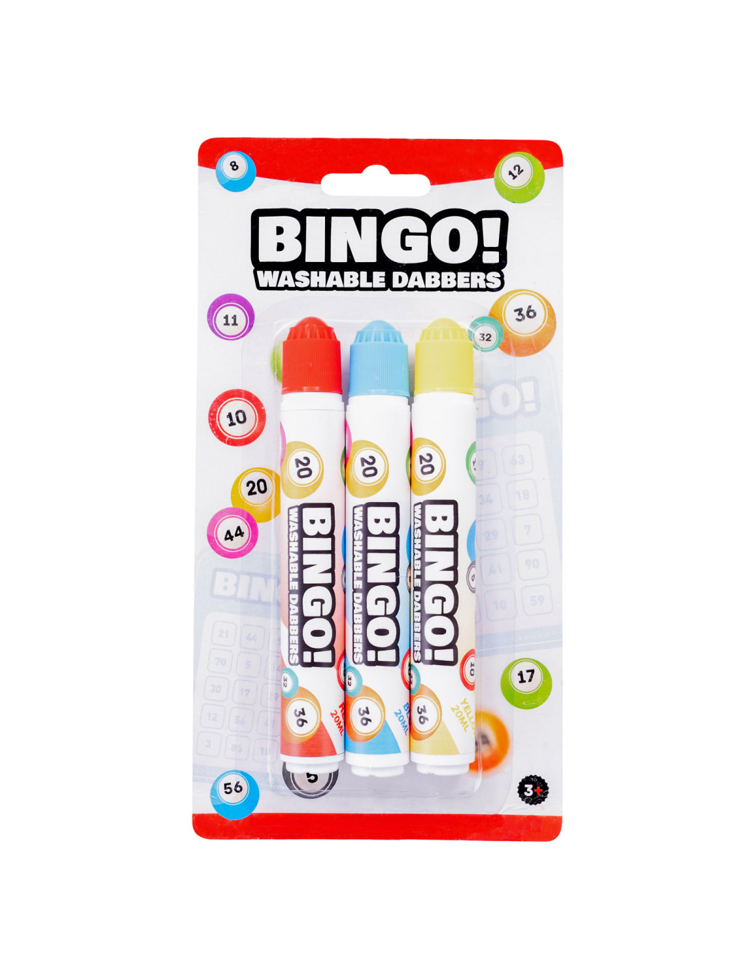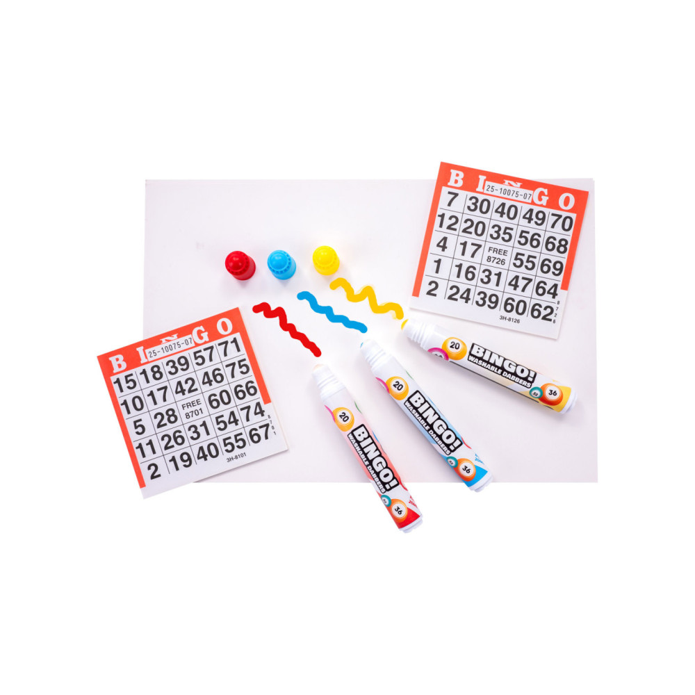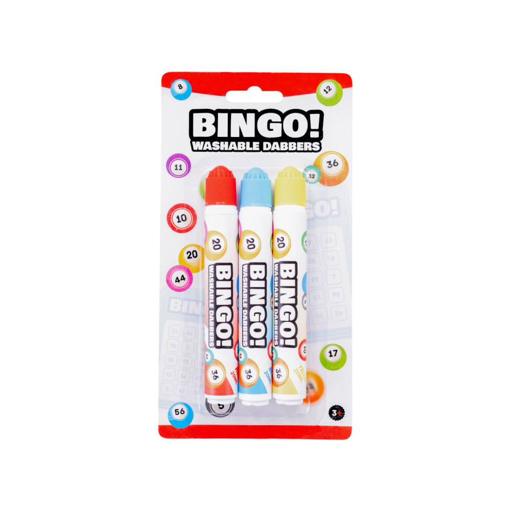 Bingo Stiften in de kleuren rood, geel en blauw. Inhoud: 20 ml per stift.