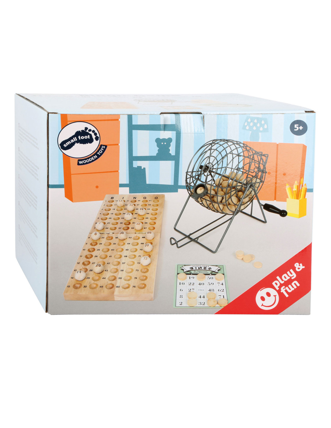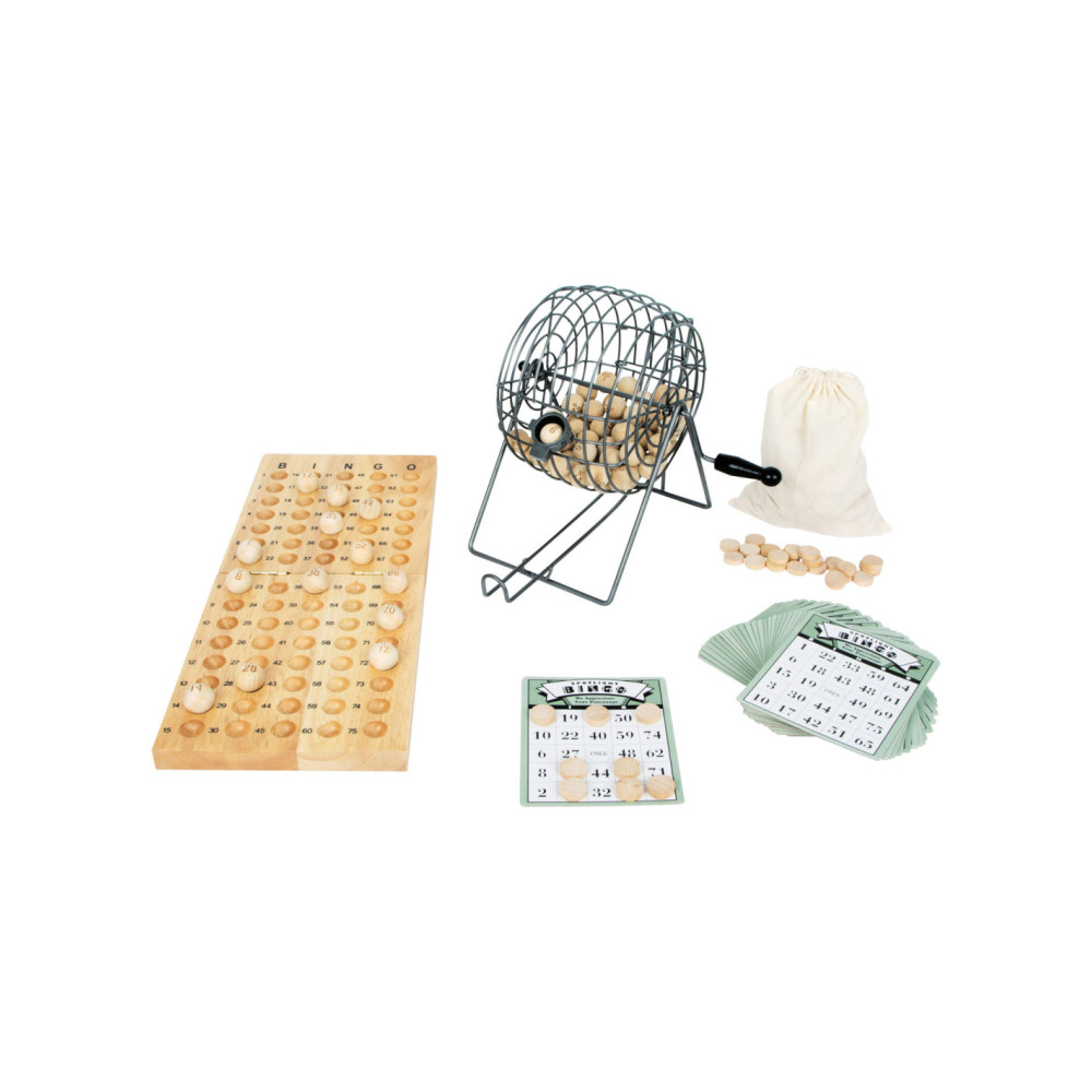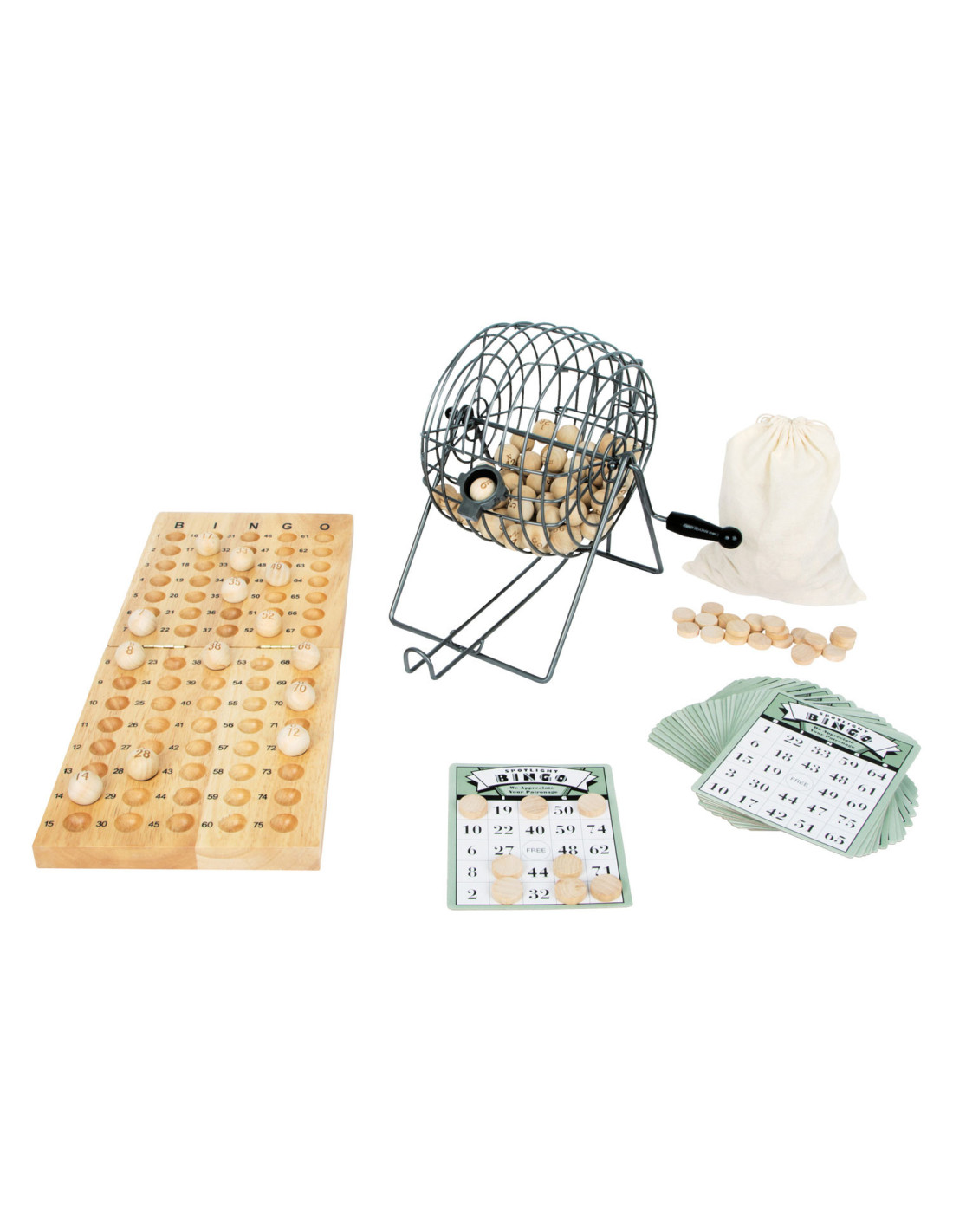 Bingo! Een realistisch bingospel om aan tafel te spelen. De regels zijn hetzelfde als voor de professionals - de winnende nummers worden uit de metalen trommel getrokken. De anderen moeten raden. Plezier is gegarandeerd met 24 kaarten, 75 houten ballen, 150 houten dekkaarten en een hoogwaardig houten bord.