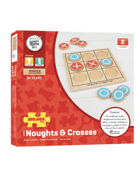 Dit traditionele boet kaas een eieren bevat stevige houten speelstukken die netjes in het houten speelframe passen. Ook bekend als Tic Tac Toe, wordt nullen en kruisen gespeeld door twee spelers die strijden om een matchende rij van drie nullen of kruisen te voltooien. Een ideaal reisspeelgoed en helpt bij het ontwikkelen van de strategische geest. Als het spel is voltooid, kunnen alle onderdelen in het houten frame worden opgeborgen. Tic Tac Toe is een geweldige kousvuller, reisspeelgoed, zakgeldspeelgoed of feesttasje. Gemaakt van hoogwaardige, verantwoord verkregen materialen. Voldoet aan de huidige Europese veiligheidsnormen. Noughts and Crosses Game - productkenmerken: Traditioneel houten spel van nullen en kruisen Het ideale speelgoed voor zakgeld of een gunst voor een feestje Helpt bij het ontwikkelen van de strategische geest