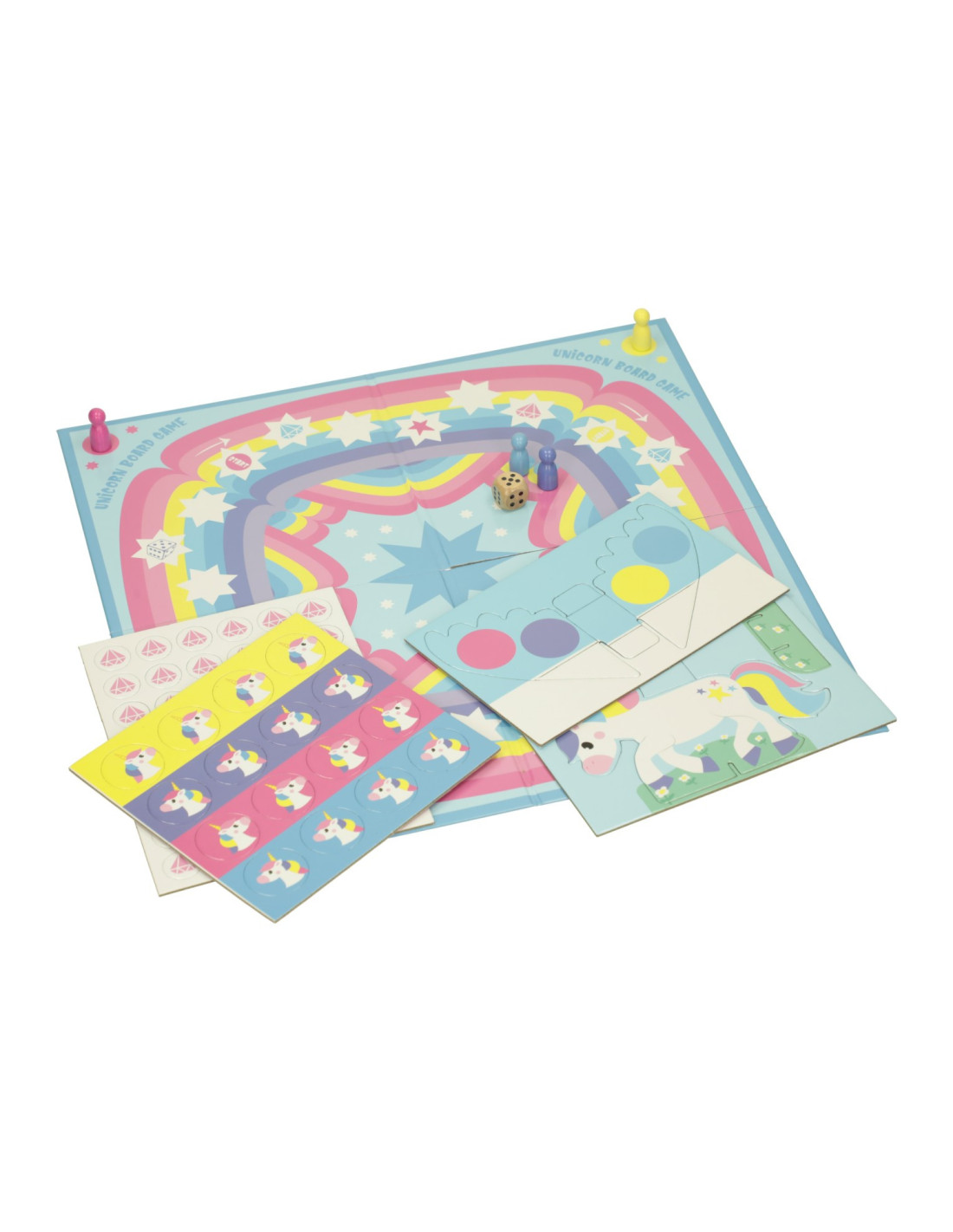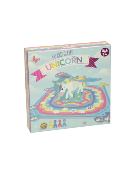 Bordspel waarbij het doel is om 4 eenhoorns zo snel mogelijk op het midden van het bord te plaatsen. Geschikt voor kinderen vanaf 3 jaar. Het spel kan gespeeld worden met 2 tot en met 4 personen.