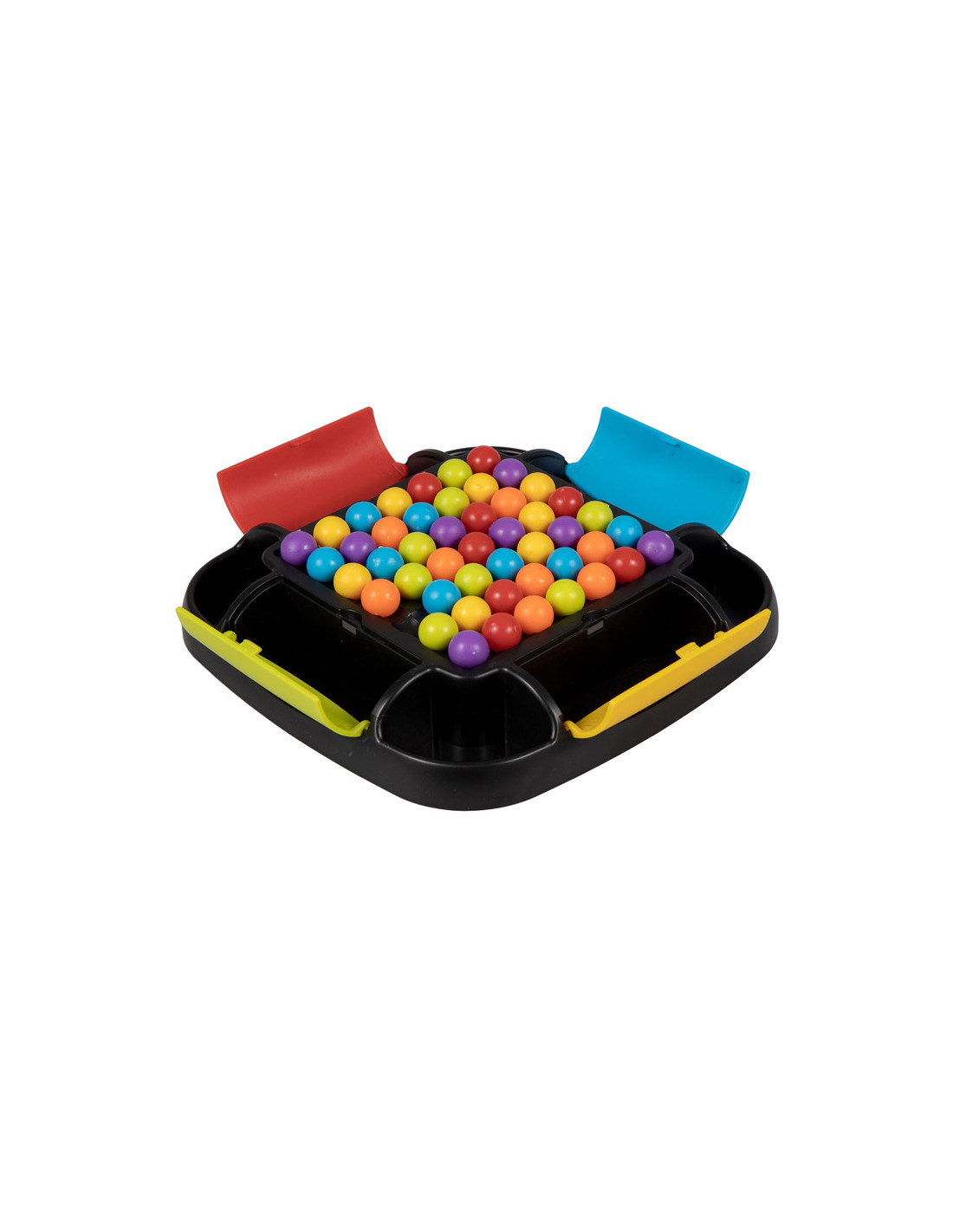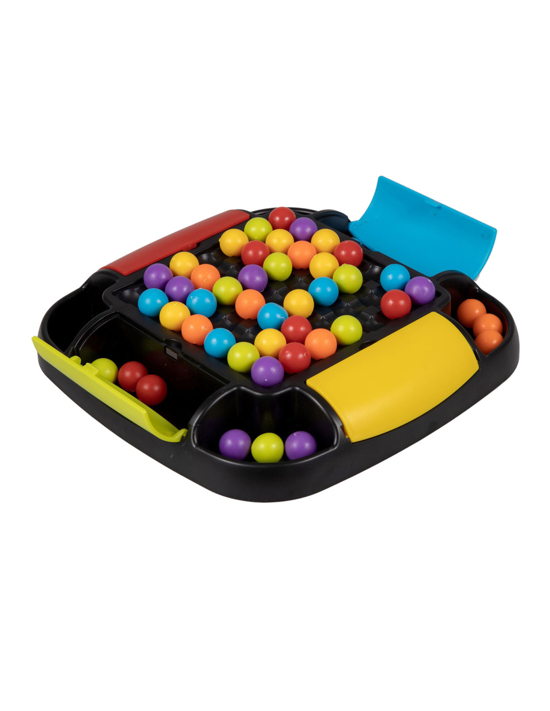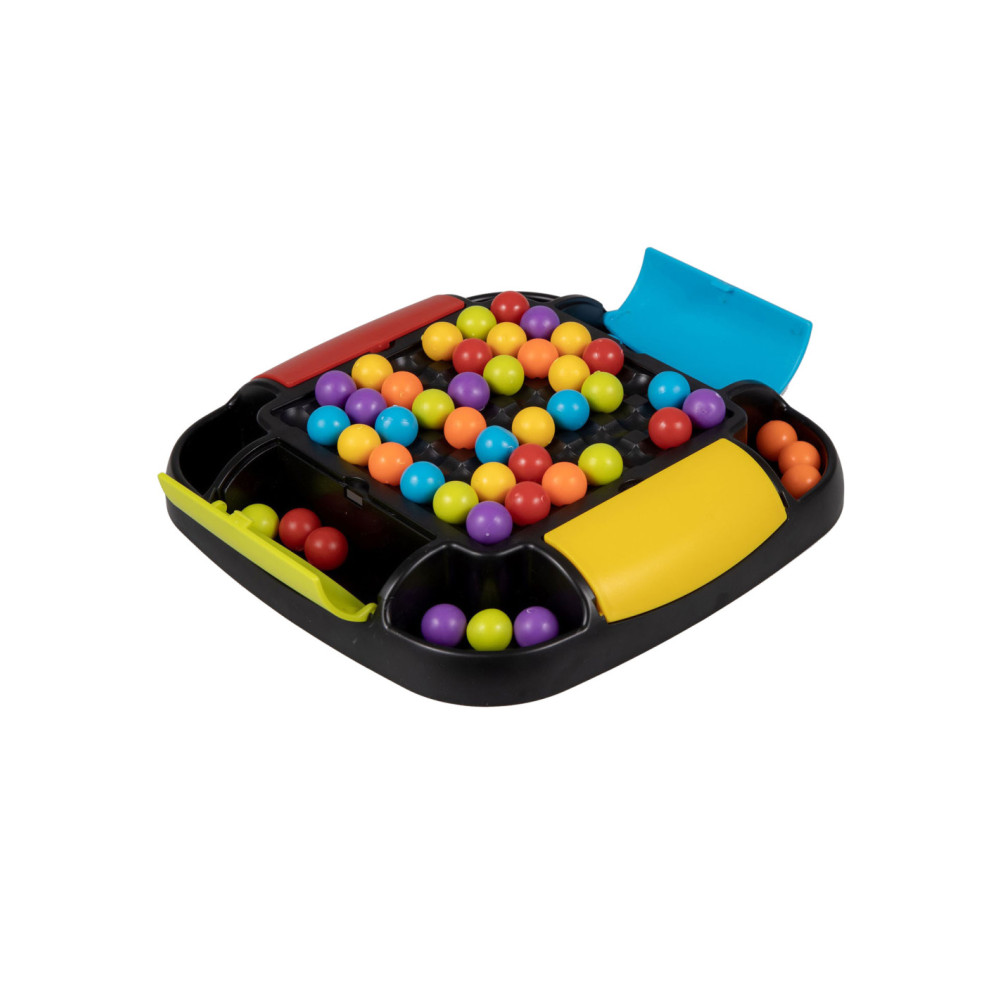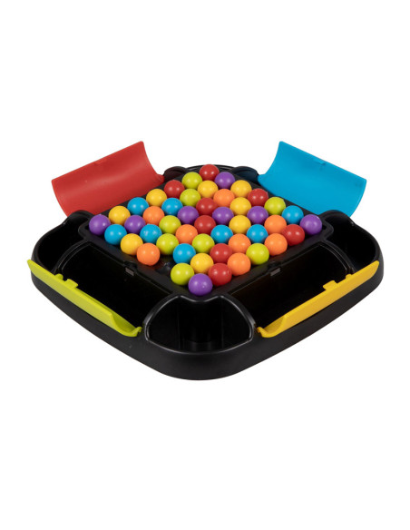Clown Games Rainbow Ball Game. Bij dit leuke spel plaats je balletjes op een bord. De balletjes hebben alle kleuren van de regenboog. Het doel van het spel is, om een rij met balletjes op een strategische manier te verschuiven, zodat zoveel mogelijk balletjes van dezelfde kleur op elkaar aansluiten. Alle aangrenzende balletjes mogen worden verzameld: wie er de meeste verzamelt, heeft gewonnen! Het bord heeft opbergvakken in 4 kleuren, zodat je na het spelen alle balletjes kunt opruimen. Inhoud: speelbord, 48 regenboogballetjes. Wordt geleverd in full-colour verpakking. Geschikt voor 2 tot 4 spelers vanaf 6 jaar.
