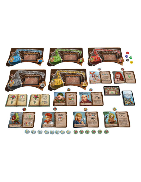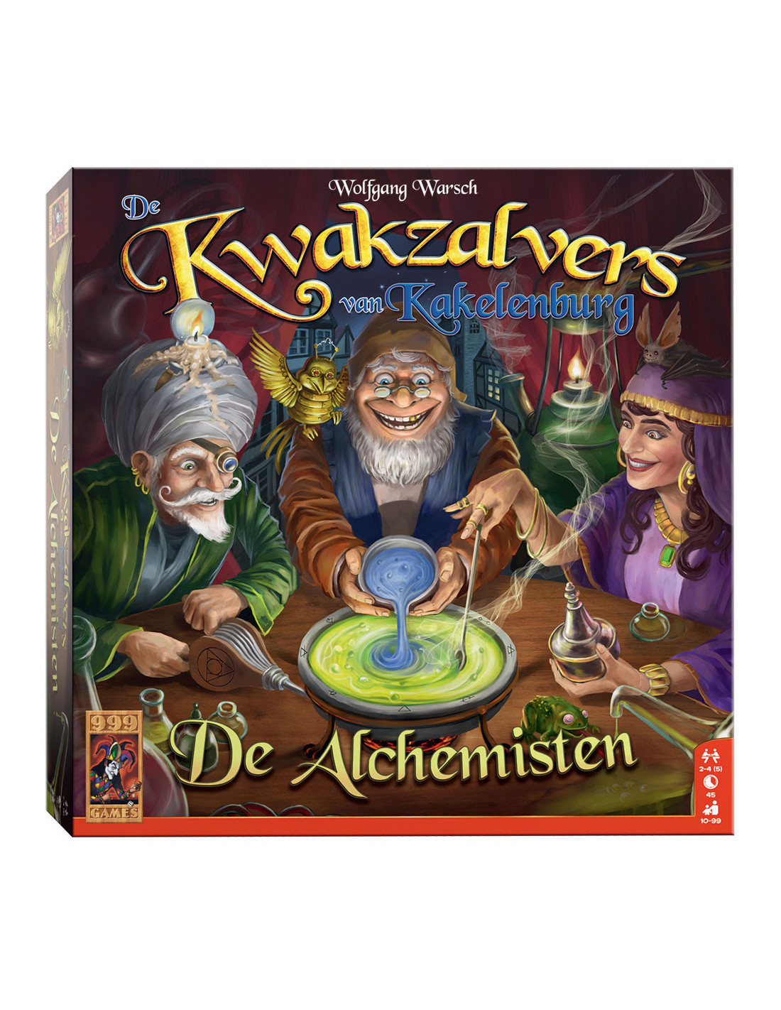 Uitbreiding Basispel ‘De Kwakzalvers van Kakelenburg’ vereist! Om met 5 spelers te kunnen spelen, is ook de uitbreiding ‘De kruidenheksen’ vereist.