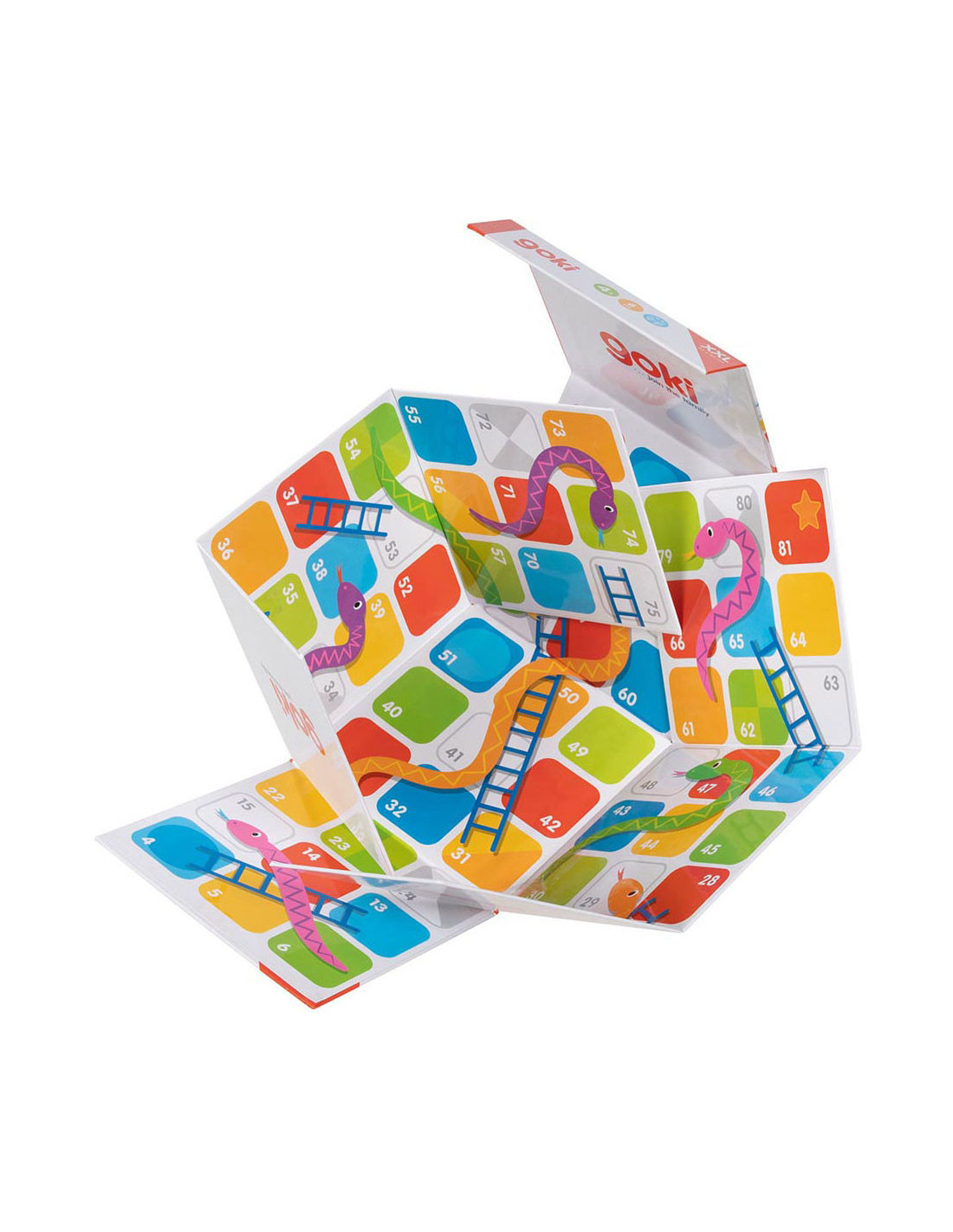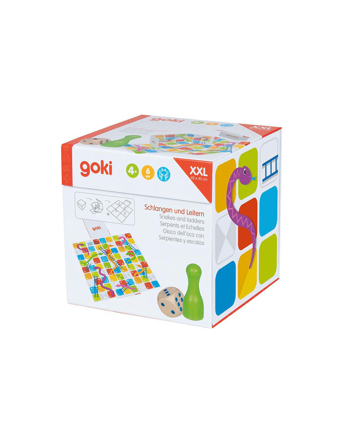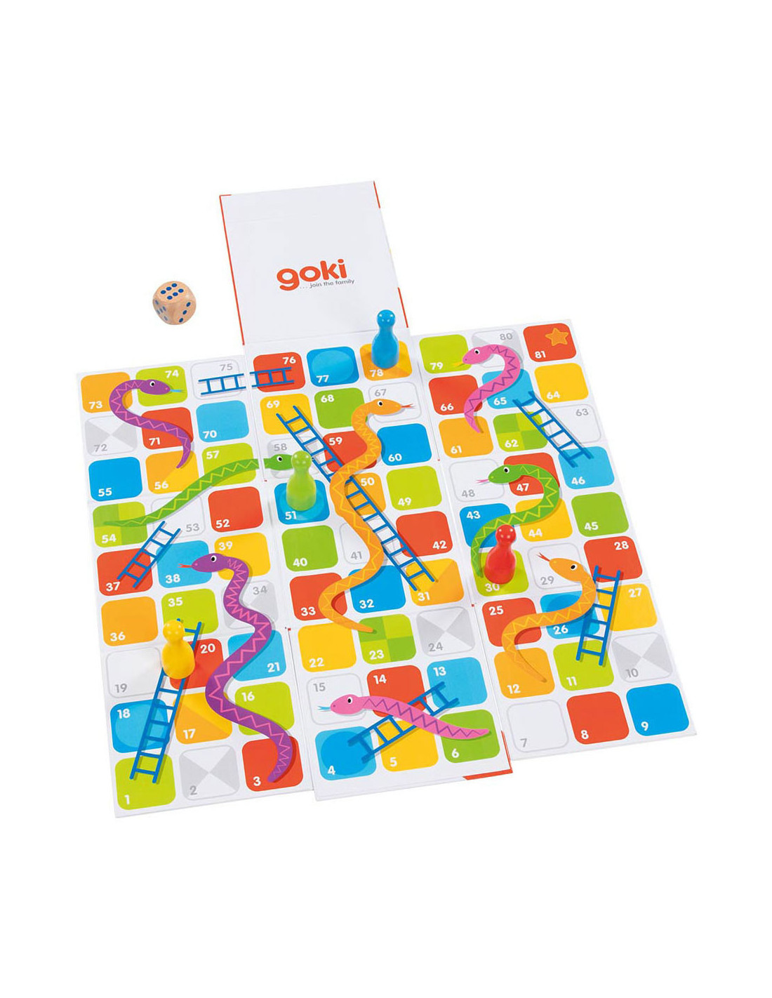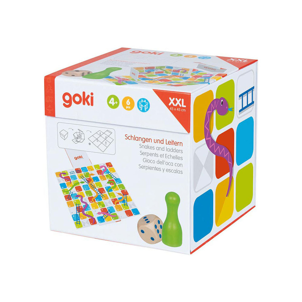 Snakes and Ladders is een gemakkelijk te leren dobbelspel waarbij de belangrijkste uitdaging is om geluk te hebben bij het gooien van de dobbelsteen. De verpakking is bijzonder praktisch en doordacht: uitgeklapt dient hij tevens als speelbord - in XXL- formaat! Wie bereikt als eerste de finish?