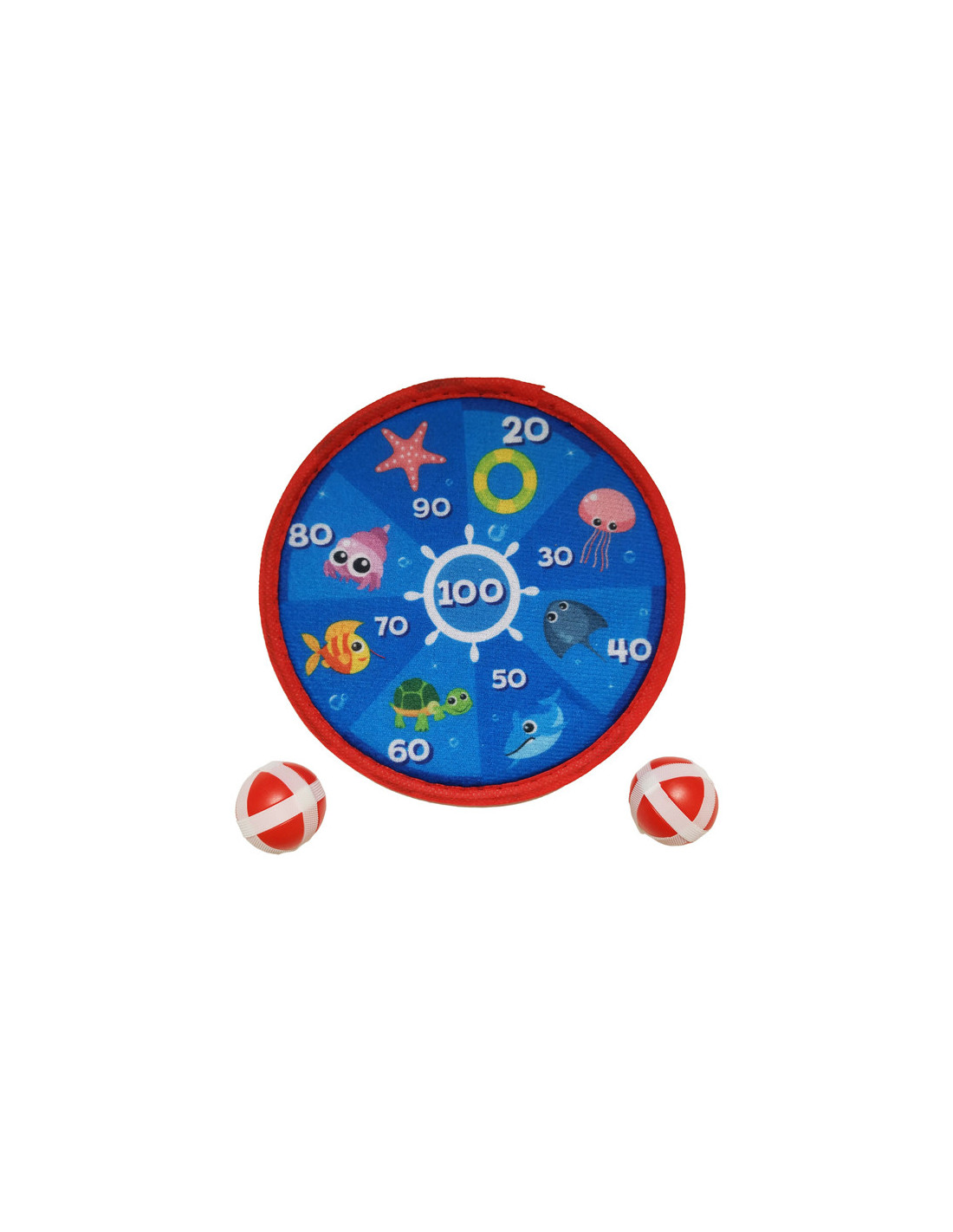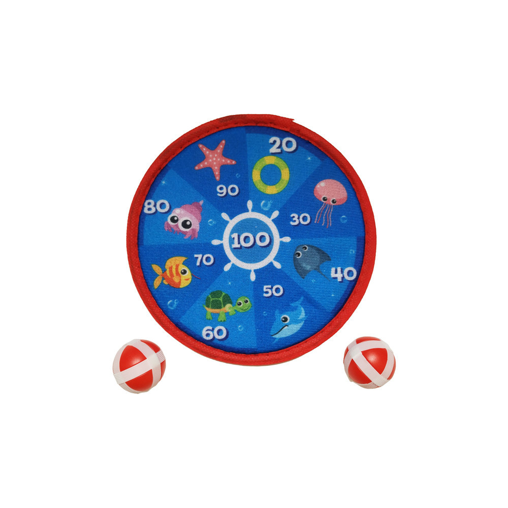 Klein klittenband dartboard van 18 centimeter groot, in leuk onderwaterthema met verschillende zeedieren. Inclusief 2 klittenband ballen. Geschikt voor kinderen vanaf 3 jaar oud.