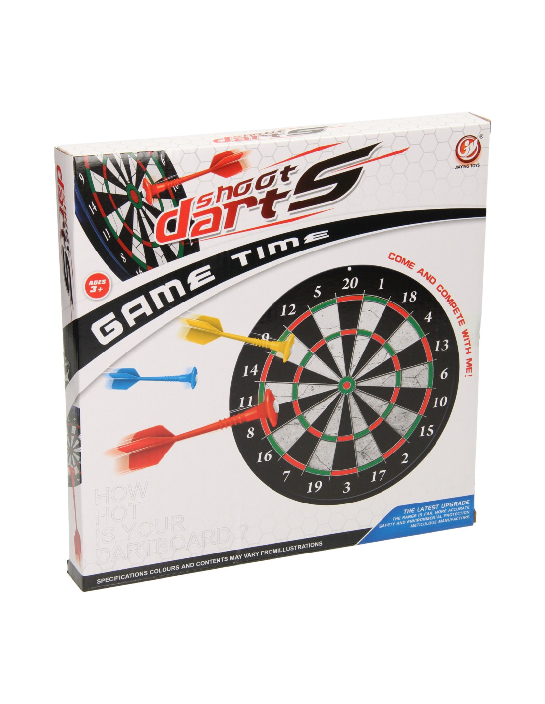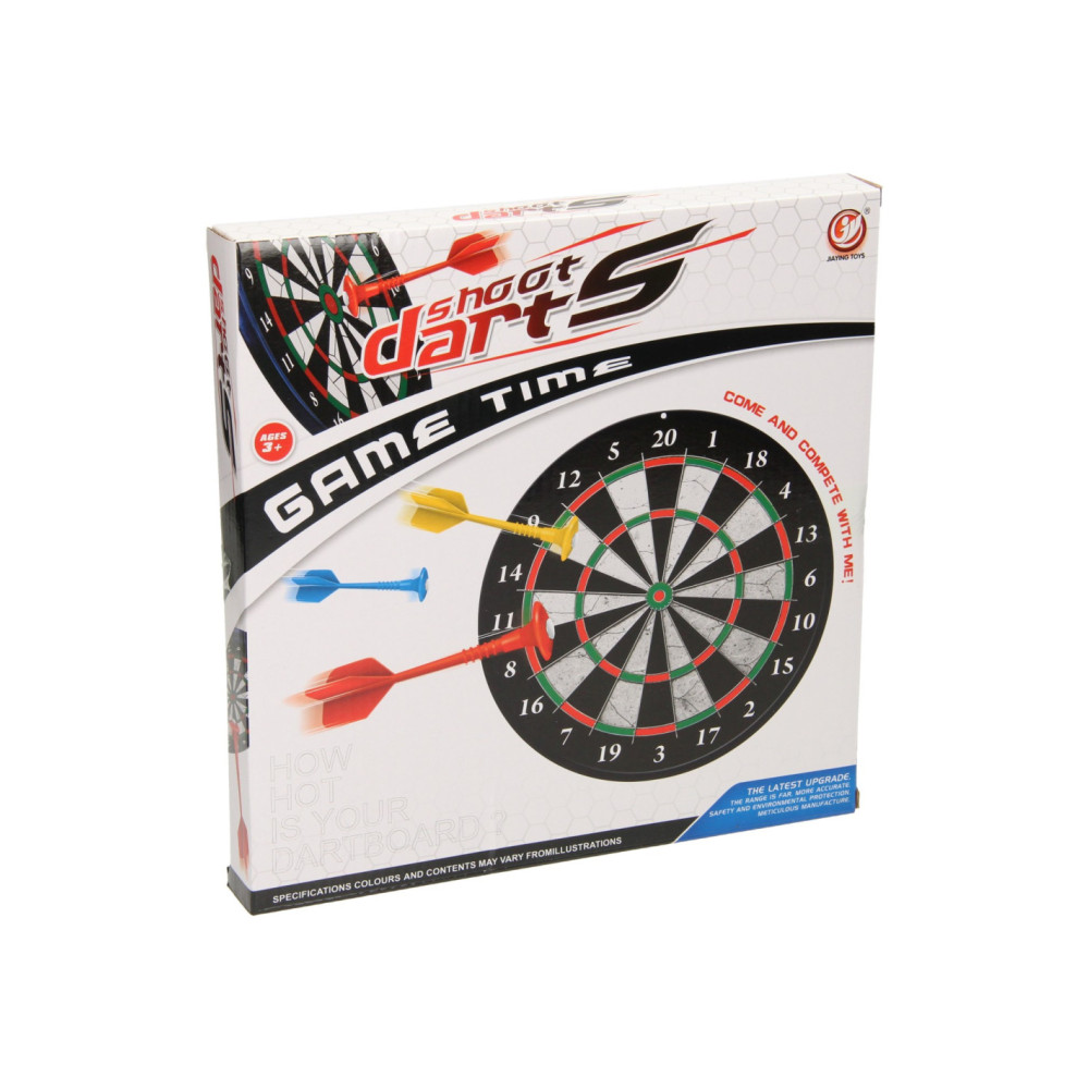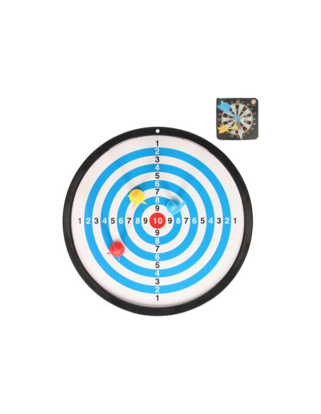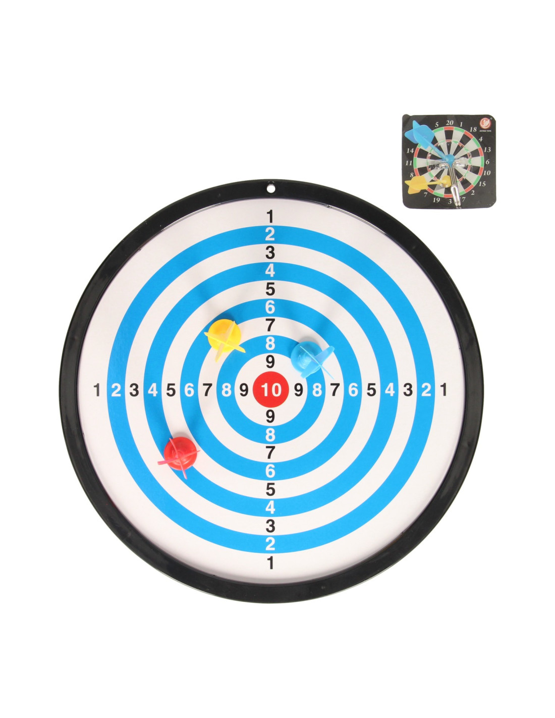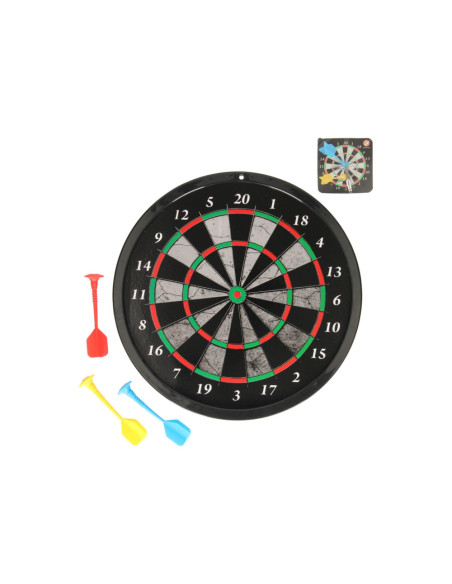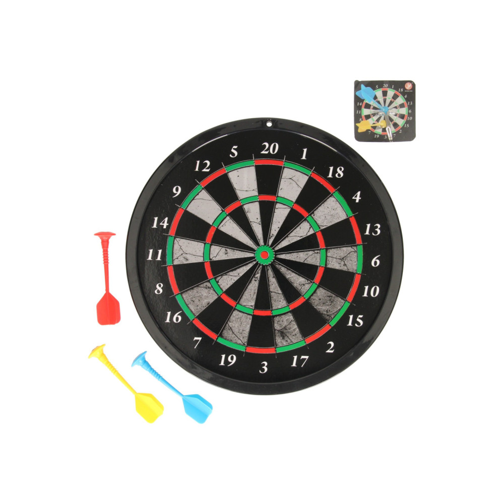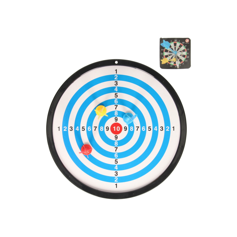 Klittenband Dartset Dubbelzijdig met 3 pijlen. Het bord heeft een doorsnede van 26 centimeter.