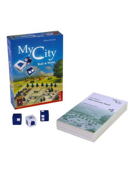 My City, maar dan als dobbelspel! Dobbel en krabbel jouw eigen stad bij elkaar in deze snelle en compacte versie van het populaire legacyspel. Rol de dobbelstenen om te zien welke vorm je in jouw stad moet neerpennen. Hoe slimmer je jouw stad inricht, hoe meer punten je scoort. Twaalf verschillende niveaus verdeeld over vier campagnes geven volop uitdaging. Wie maakt de beste stad?
