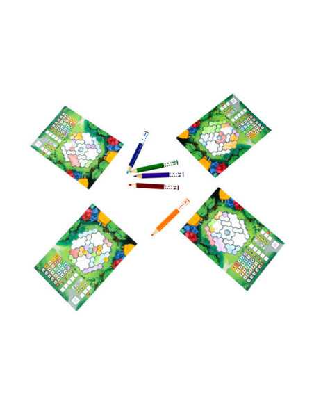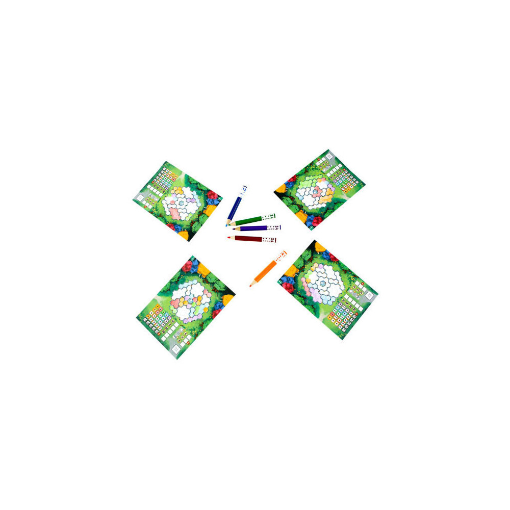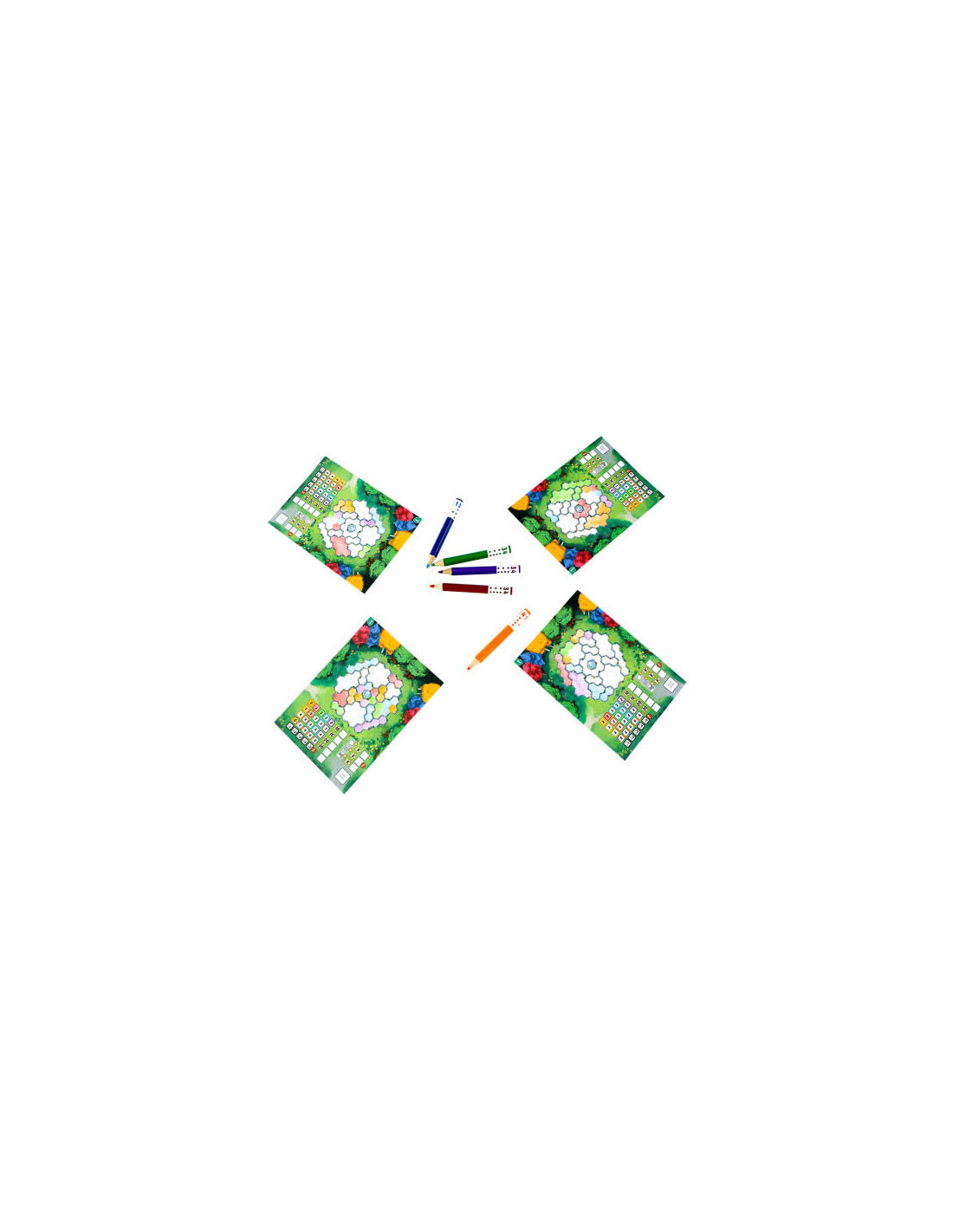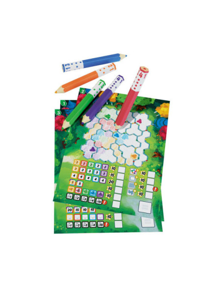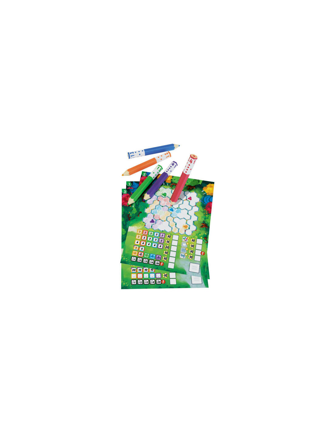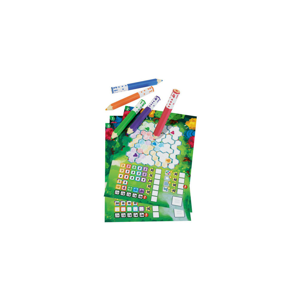 Vul tuinen met een enkele kleur of juist met 5 verschillende. Zet er passende bloemen en bomen in, en scoor zo de meeste punten! Kies steeds 1 van de gerolde kleurpotloden en kleur het op de betreffende zijde aangegeven aantal velden op de tuinen in. Afhankelijk van het gekozen scorevel verdien je op verschillende manieren punten. Heb jij aan het einde de meeste punten?