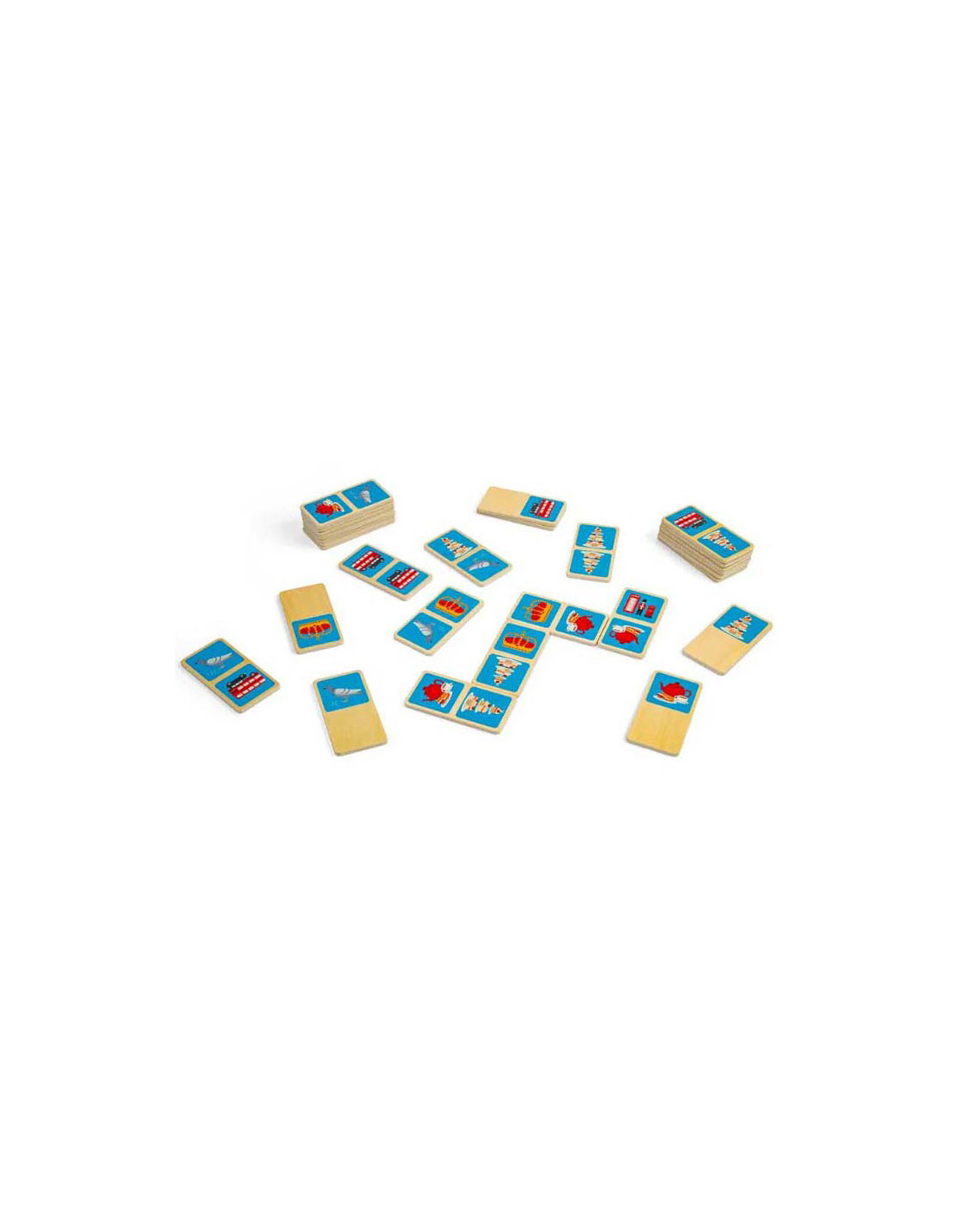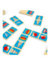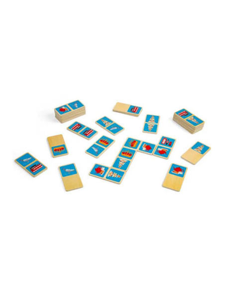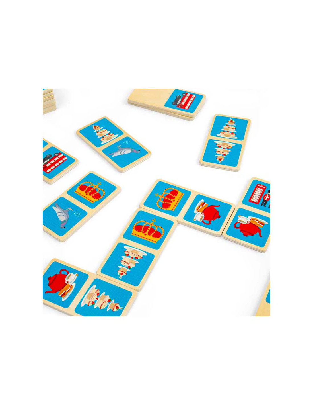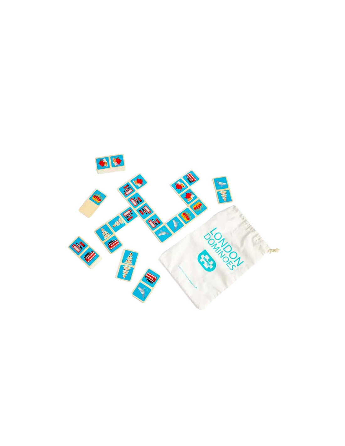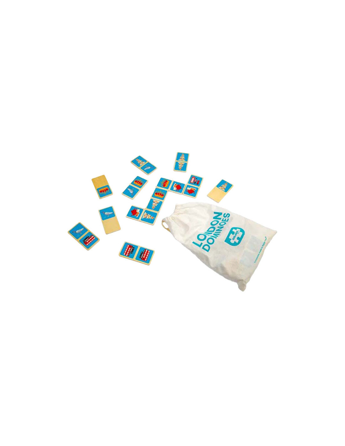 Breng een beetje Britse charme in huis met dit 28-delige London dominoes spel. Elke domino heeft een kleurrijke illustratie van de iconische stad, zoals een rode dubbeldekkerbus, zwarte taxi of koninklijke kroon. De houten domino's worden geleverd in een handige trekkoordtas, ideaal voor reizen en opslag.