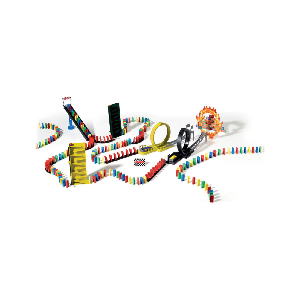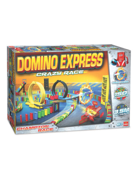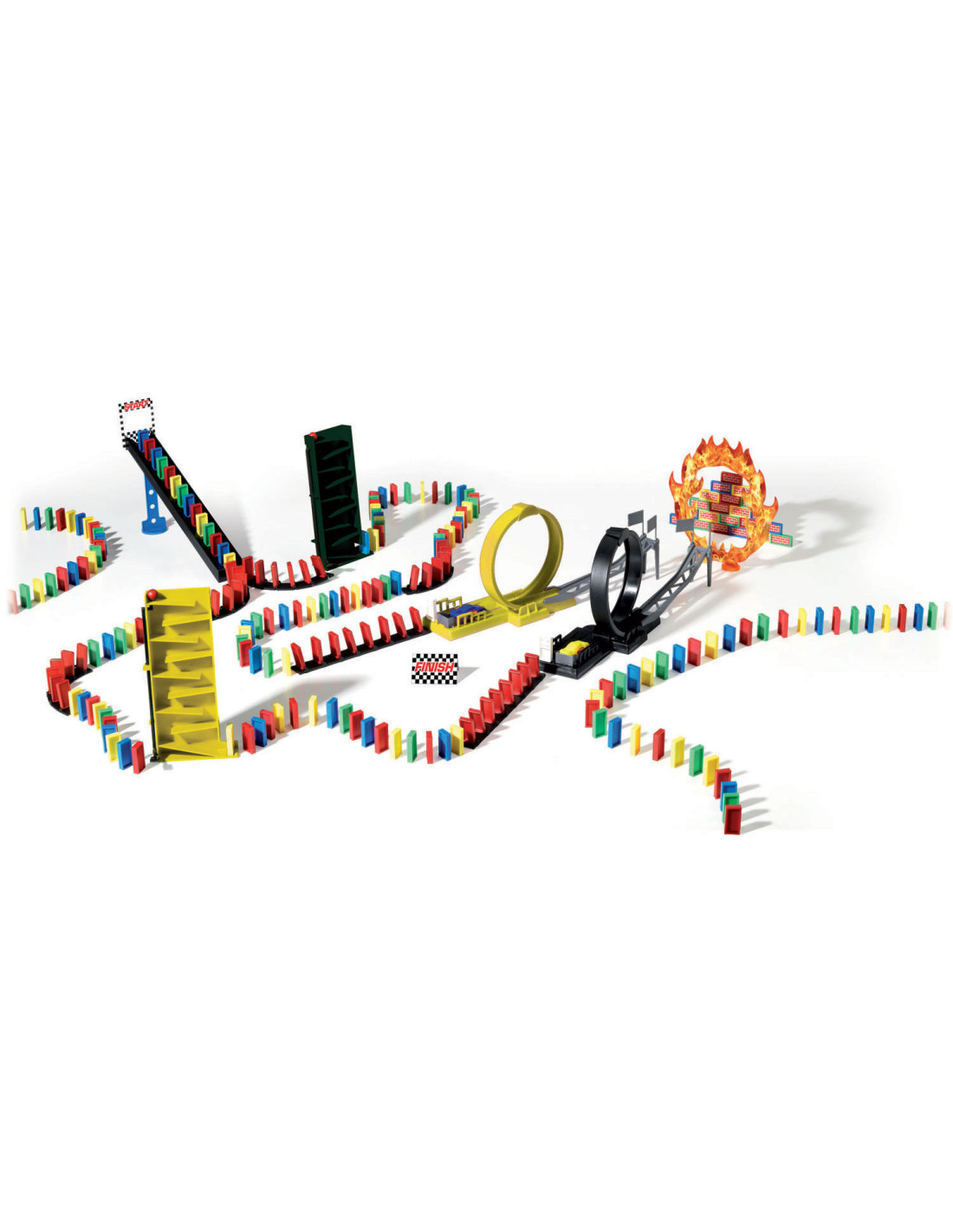 Maak een spannend parcours voor je dominostenen met deze Crazy Race set. Plaats de 150 domino's in 2 routes over de 2 hindernissen en ontdek welke auto er als eerste via de looping door de brandende ring heen vliegt. Deze set van Domino Express bevat 3,5 meter aan parcours en wordt geleverd met speciale racedecoratie om de setting compleet te maken.