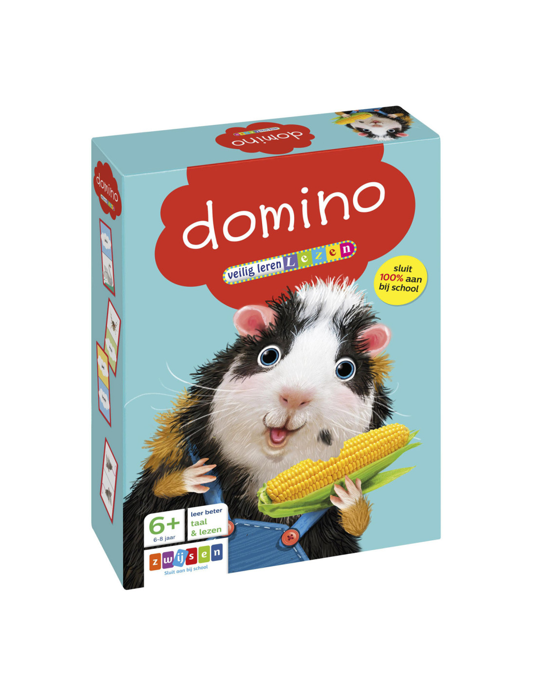 Een superleuk dominospel voor kinderen die leren lezen. Kinderen die al kunnen lezen, zullen er ook veel plezier mee beleven. Het dominospel bestaat uit kaartjes met woorden en kaartjes met plaatjes die op elkaar rijmen. Het doel is de rijmende kaartjes, in de vorm van een woord of een plaatje, aan elkaar te leggen. Tijdens het spelen, lezen kinderen eenvoudige woorden en zijn ze tevens bezig met rijmen. Zo vergroten kinderen op een speelse manier hun woordenschat. De vrolijke illustraties vergroten het speelplezier.
