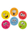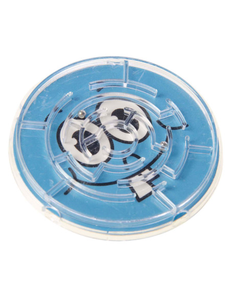 Rond geduldspelletje met vrolijke emoface gezichten in verschillende kleuren. Elk gezicht toont een andere uitdrukking, zoals knipogen, lachen of gekke blikken, wat het spel een grappige en speelse uitstraling geeft. In het doolhof moeten kleine metalen balletjes door kantelen naar het midden worden geleid, wat zorgt voor uitdaging en plezier.