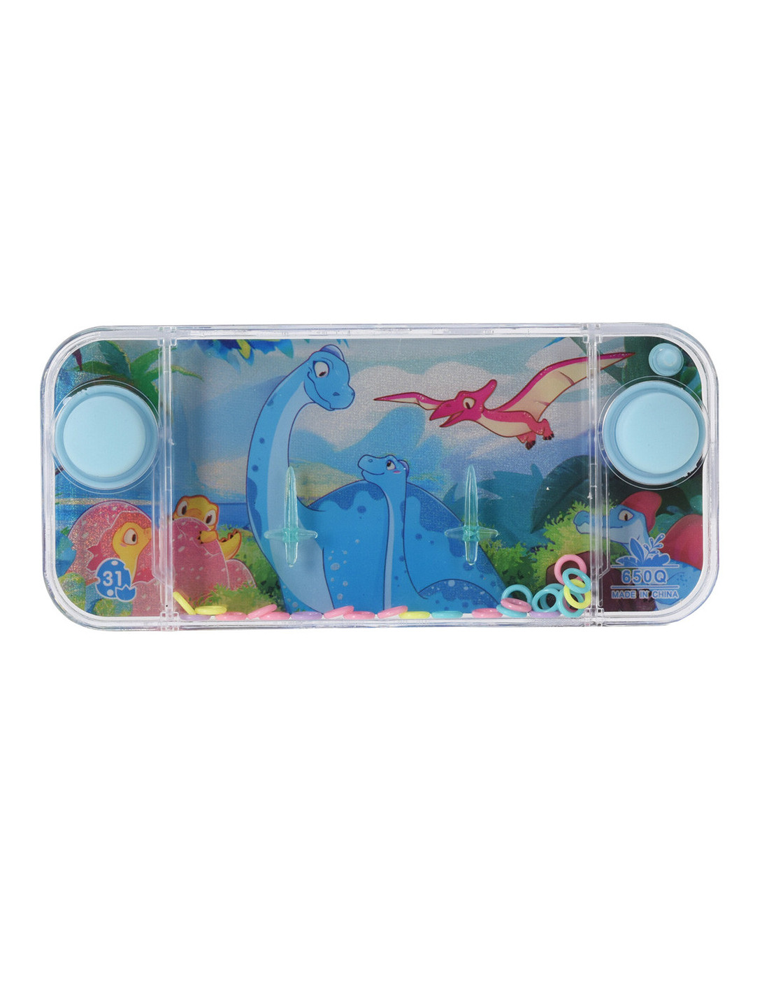 Het geduldspel dinosaurus met water is een uitdagend en leuk spel voor kinderen vanaf 3 jaar. Het doel is om de ringetjes om de staafjes te rijgen terwijl ze door het water dwarrelen. Dit vereist geduld en concentratie, en is een geweldige manier om de fijne motoriek te ontwikkelen. Het spel heeft een vrolijke onderwaterwereld op de achtergrond die kinderen zeker zal aanspreken.