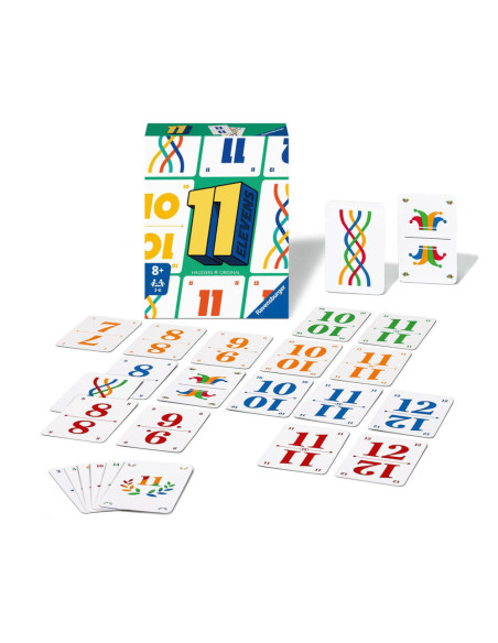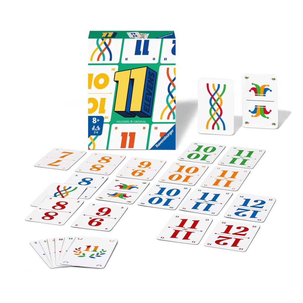 "Elevens" is het ultieme kaartspel voor de hele familie, met eenvoudige regels die zorgen voor eindeloos plezier! Het doel is om getallenkaarten slim aan te leggen, brugkaarten en jokers doelbewust te gebruiken en bonuspunten te incasseren. Met spanning en afwisseling tot de laatste kaart, want aan het einde wint de speler met de meeste punten!