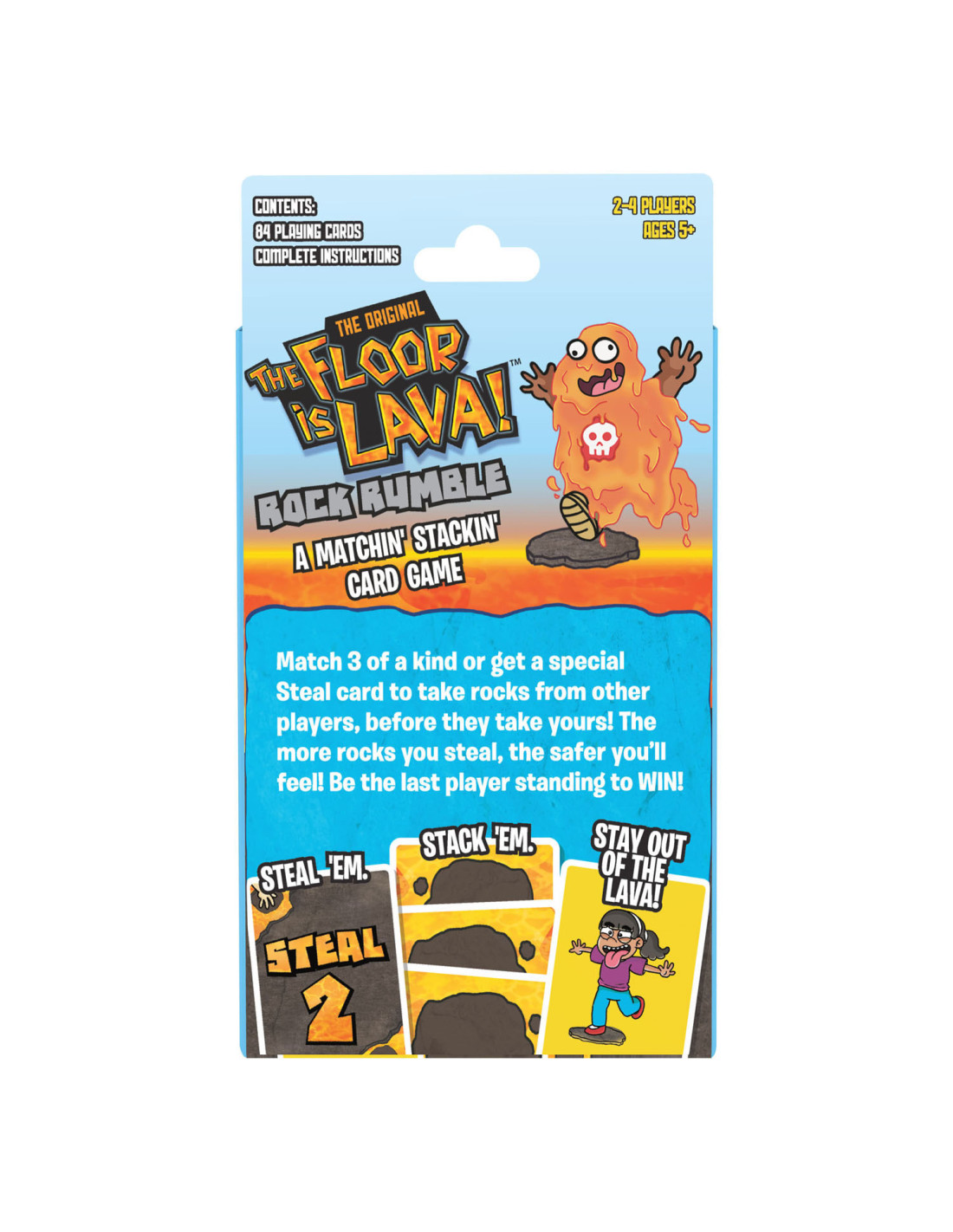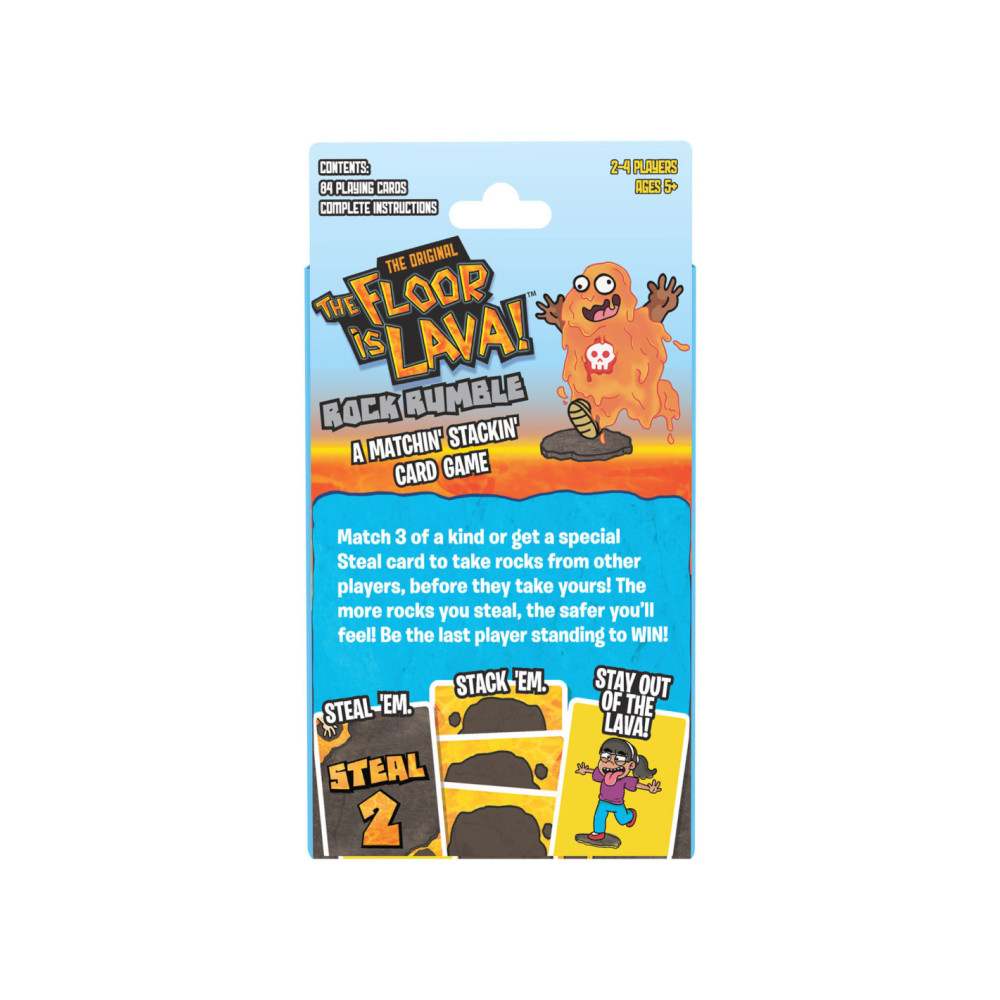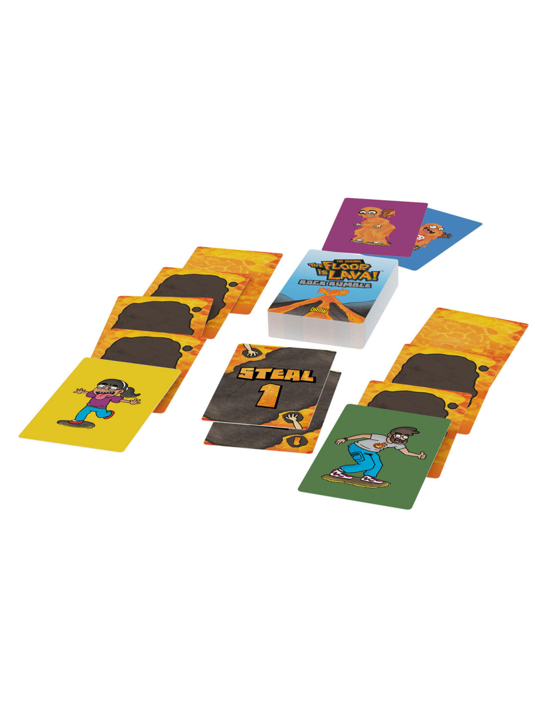 The Floor Is Lava is er nu ook in een kaartspel. Spelers moeten hun eigen stenen bouwen om niet in de lava te vallen. Tegelijkertijd moeten spelers proberen de stenen van hun tegenstanders kapot te maken. De laatste speler die veilig blijft wint.