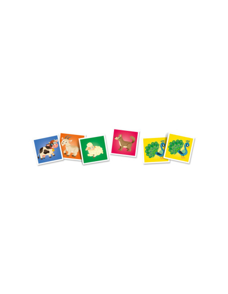 Een klassiek, maar nog steeds populair spel, om het observatievermogen en het geheugen te ontwikkelen. 48 kaartjes van 5 x 5 cm, stevig en gekleurd Made in Italy Veel plezier met je dag in de boerderij Dankzij de schitterende gekleurde afbeeldingen zal het nog leuker zijn om je vrienden uit te dagen met het allerberoemdste geheugenspel ooit.