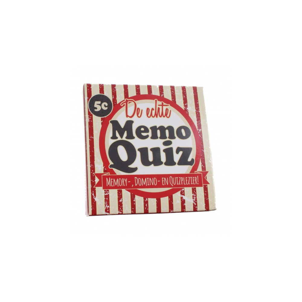 Nova Carta de echte Memoquiz De echte Memoquiz is een van de gezelschapsspellen uit de memoquiz-serie van Nova Carta. Een heerlijk familiespel met Kerst & Nieuw op tafel. Een speler draait twee fotokaarten om. Sluit een plaatje van het ene kaartje aan op een plaatje van het andere kaartje, dan mag hij een vraag beantwoorden. Bij een goed antwoord mag hij de fotokaartjes houden. De speler met de meeste fotokaartjes is de winnaar! Specificaties: Kleur: beige, rood Geslacht: junior, unisex Materiaal: karton Afmetingen: 87 x 87 x 14 mm Gewicht: 75 gram Taal: Nederlands Aantal spelers: 2 tot 5 spelers Spelduur: ca. 25 minuten Leeftijd: vanaf 8 jaar Inhoud: 25 Fotokaarten met 50 foto's 15 Quizkaarten met 90 vragen