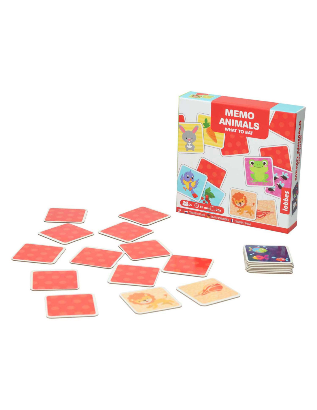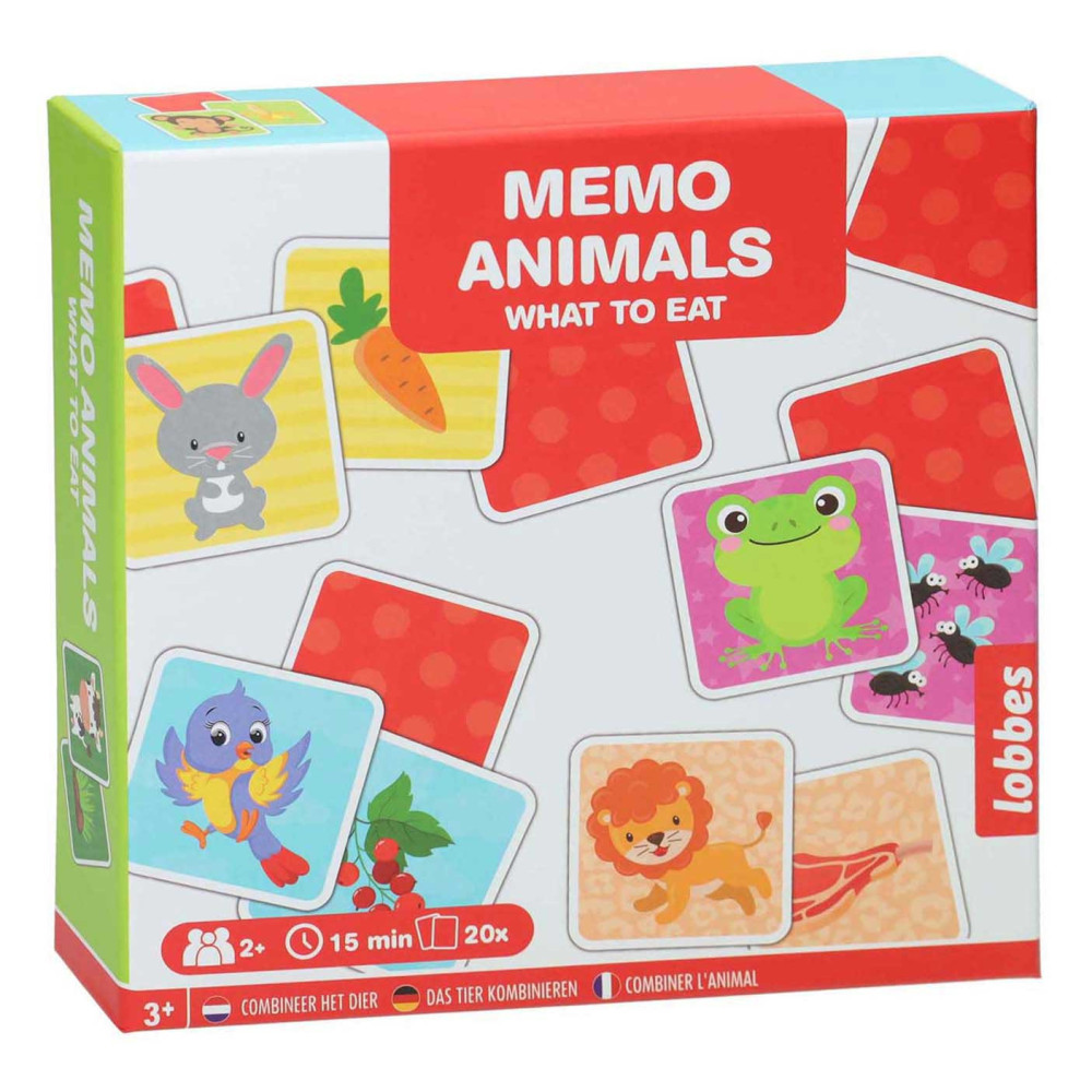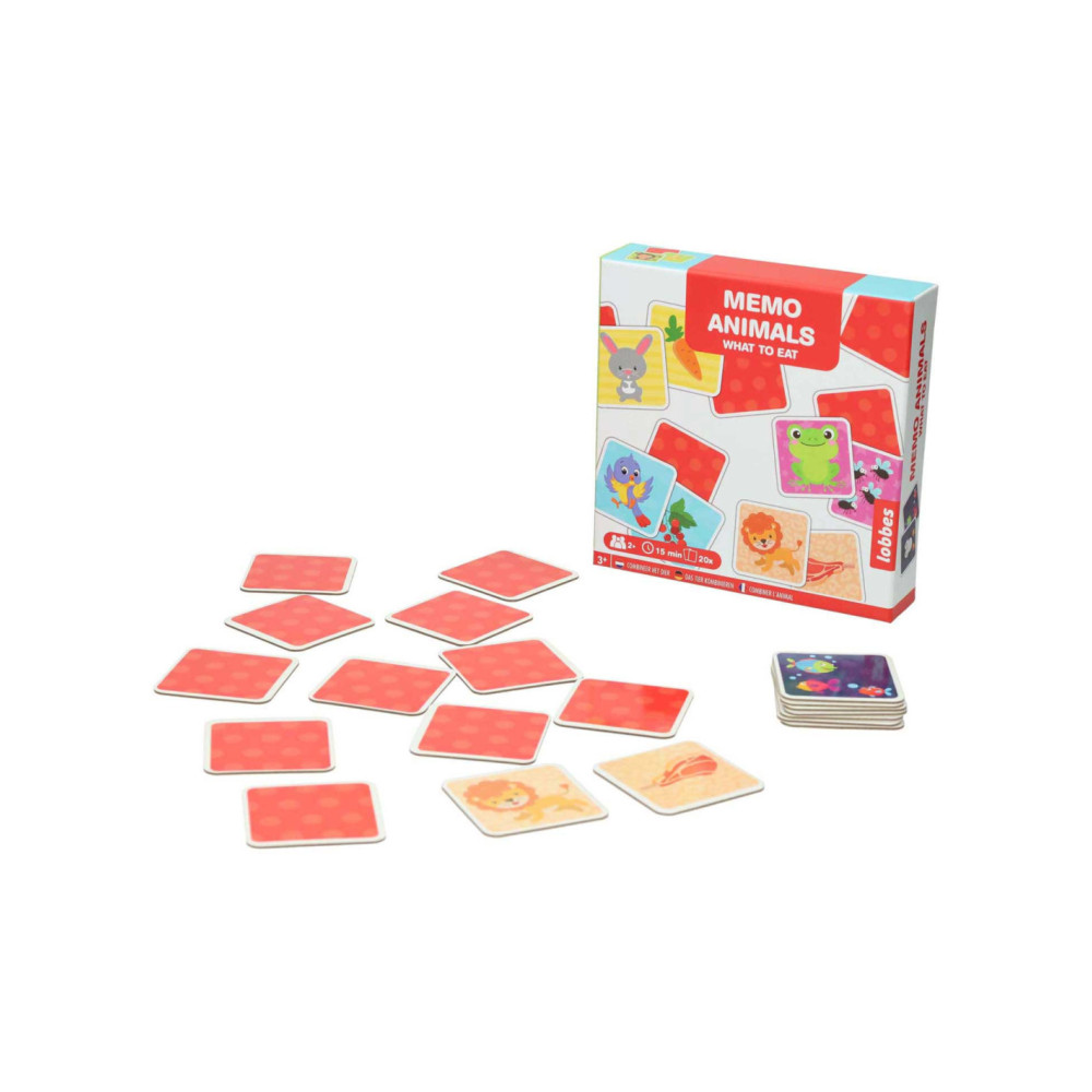 Find the Match: vind de juiste combinatie tussen het dier en wat hij eet. Geschikt voor 2 spelers vanaf 3 jaar. Het spel bevat 20 kaarten.