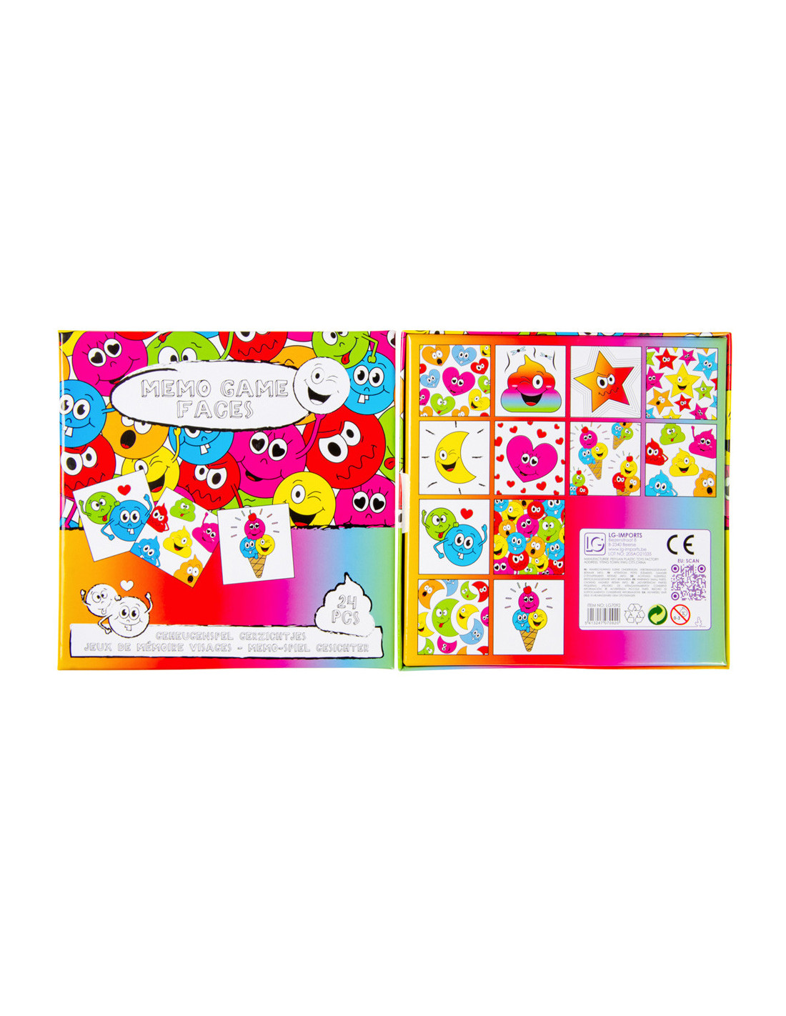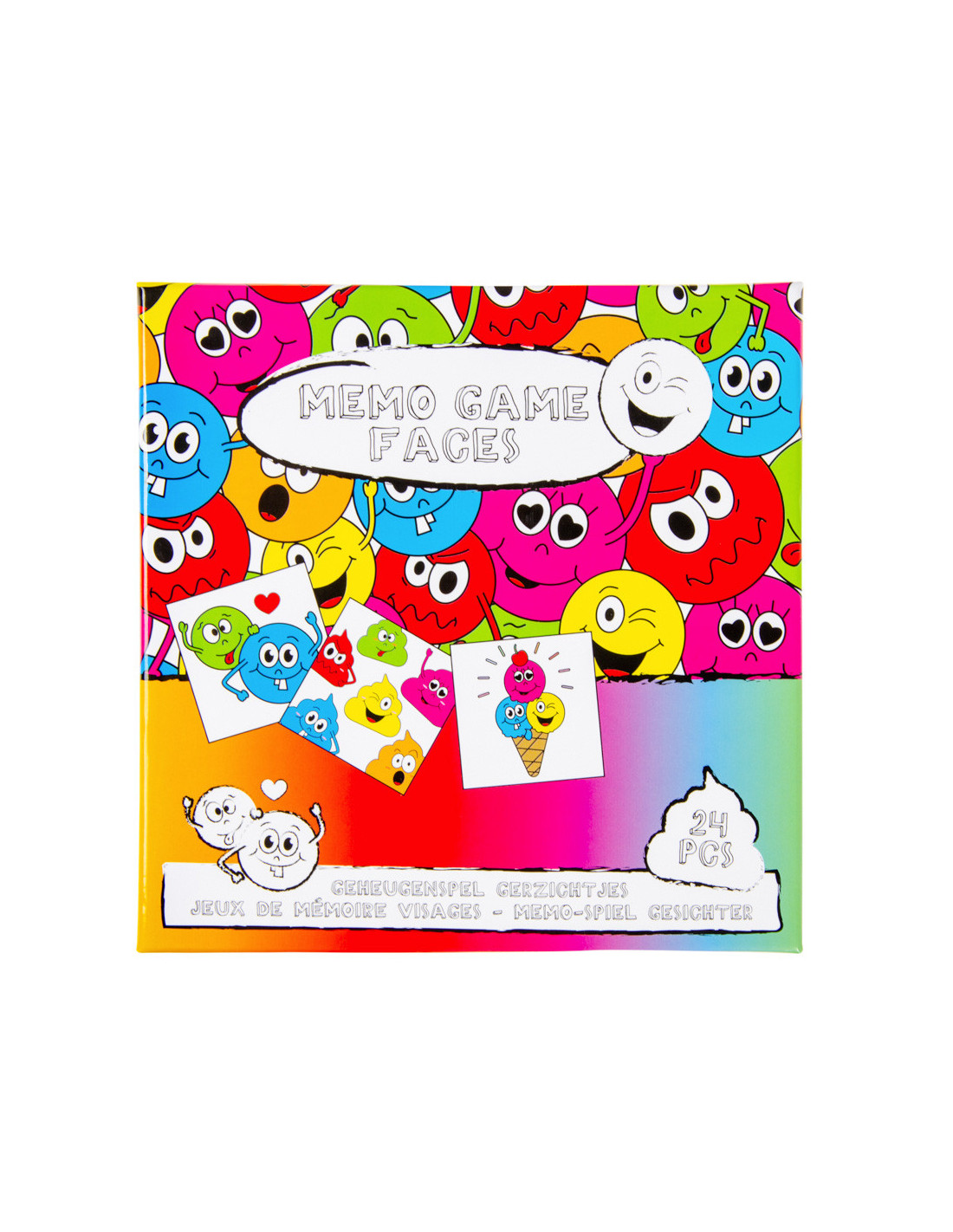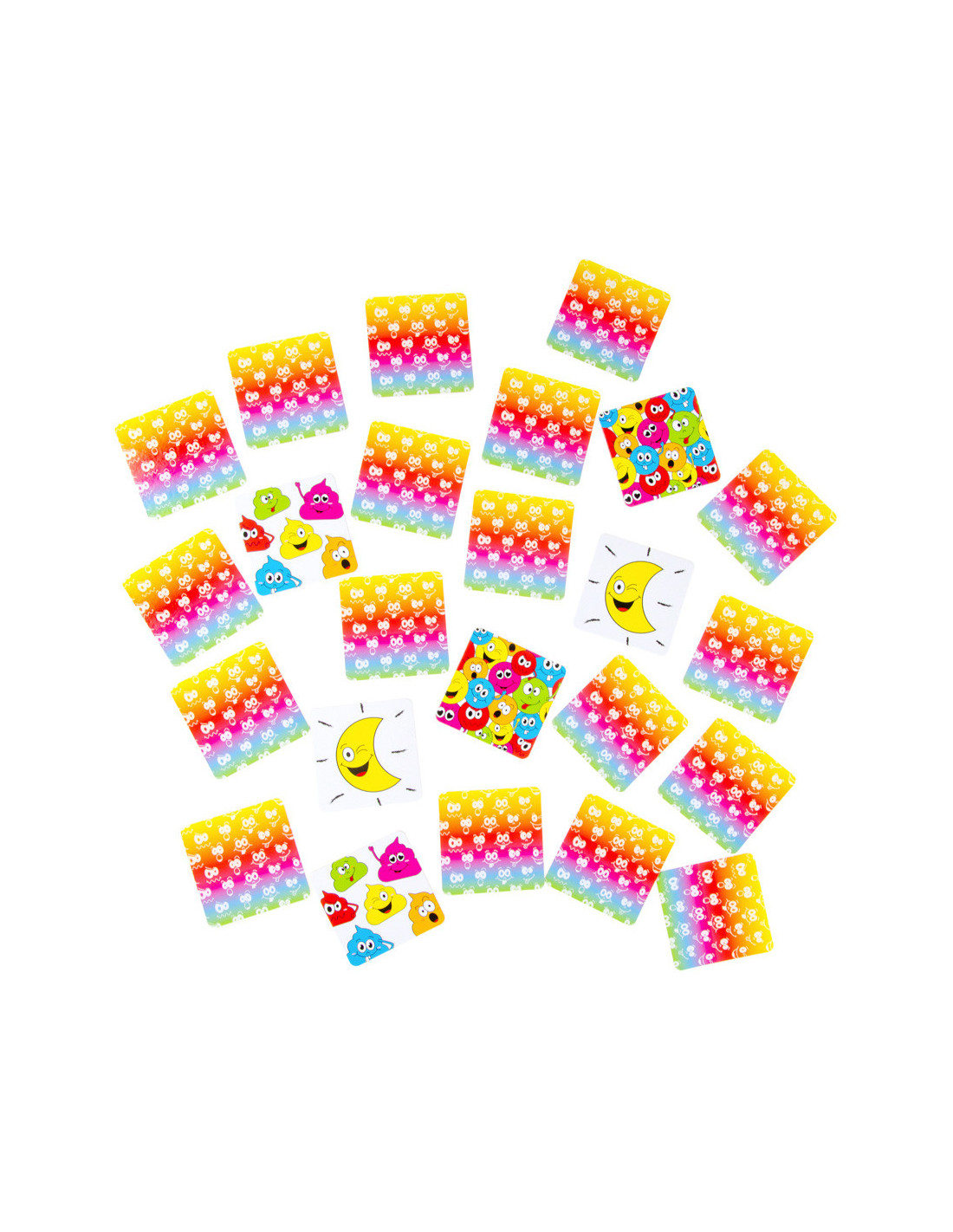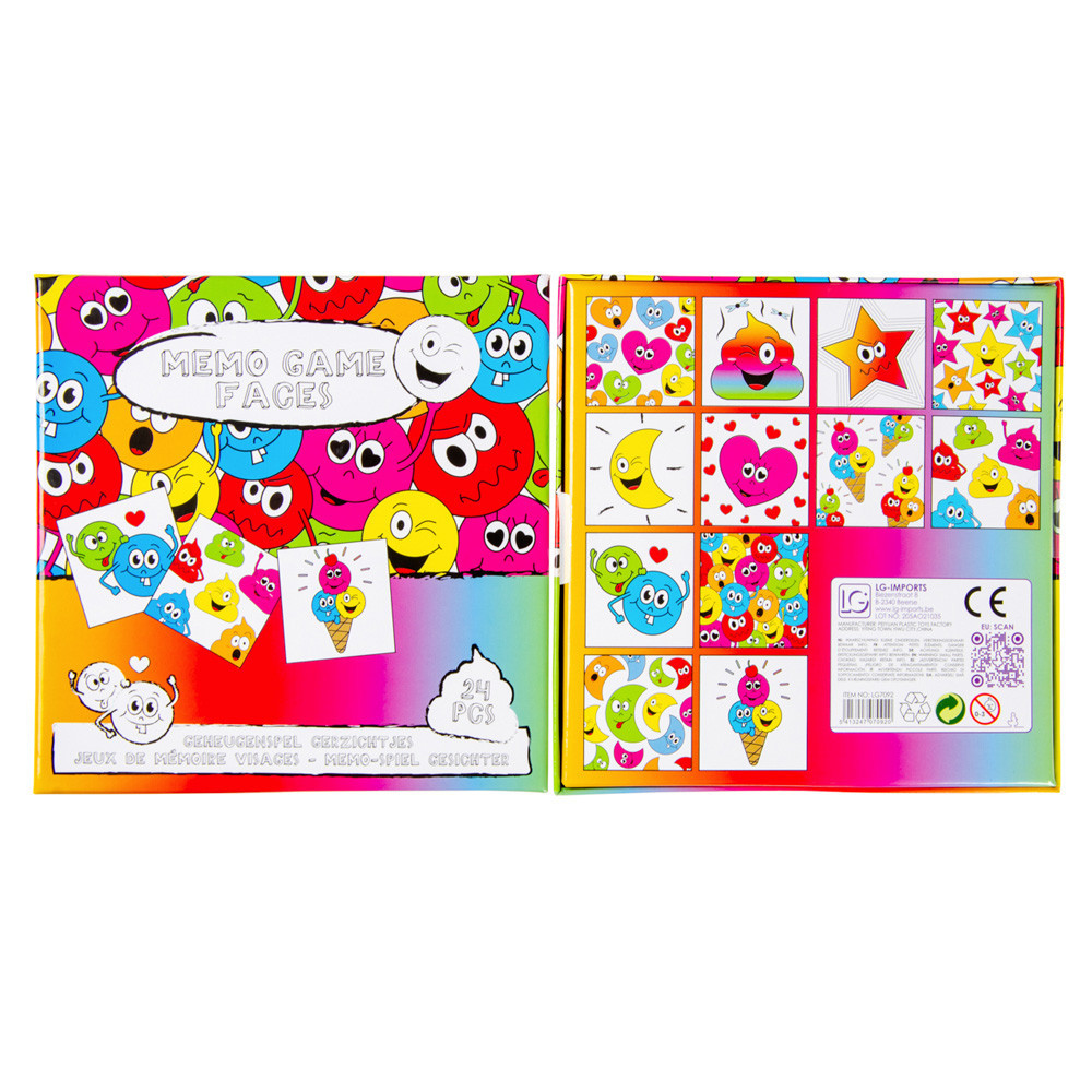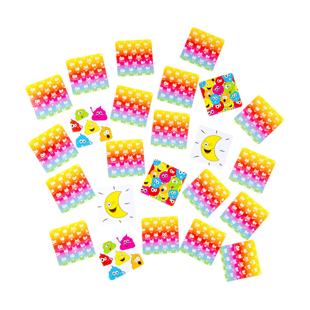 De set bestaat uit een aantal kleurrijke kaartjes met grappige lachgezichten. Draai de kaartjes om en probeer de bijpassende paren te vinden. Met elke succesvolle match vergroot je je score en kom je dichter bij de overwinning. Het spel kan worden gespeeld door kinderen en volwassenen, dus het is leuk voor het hele gezin!