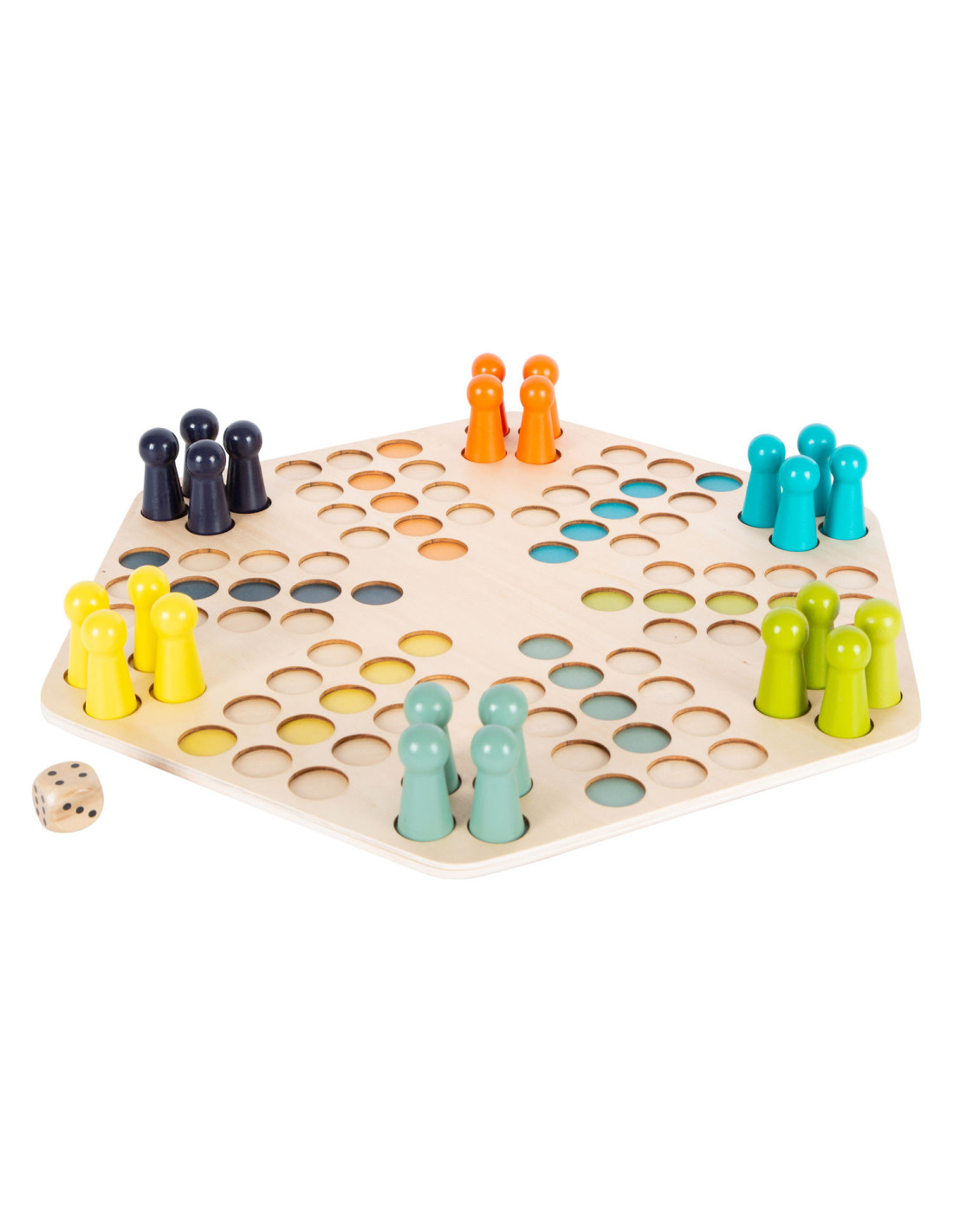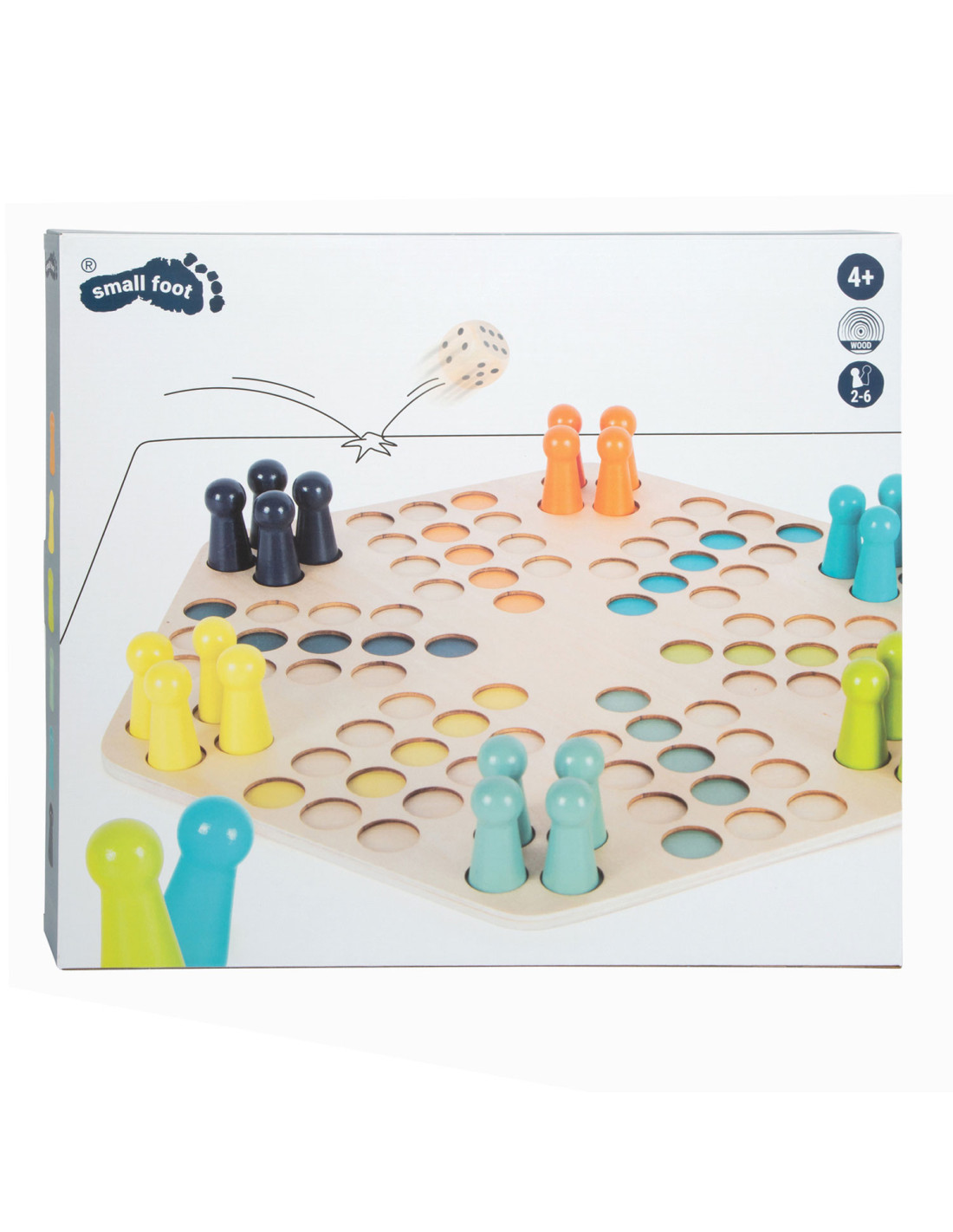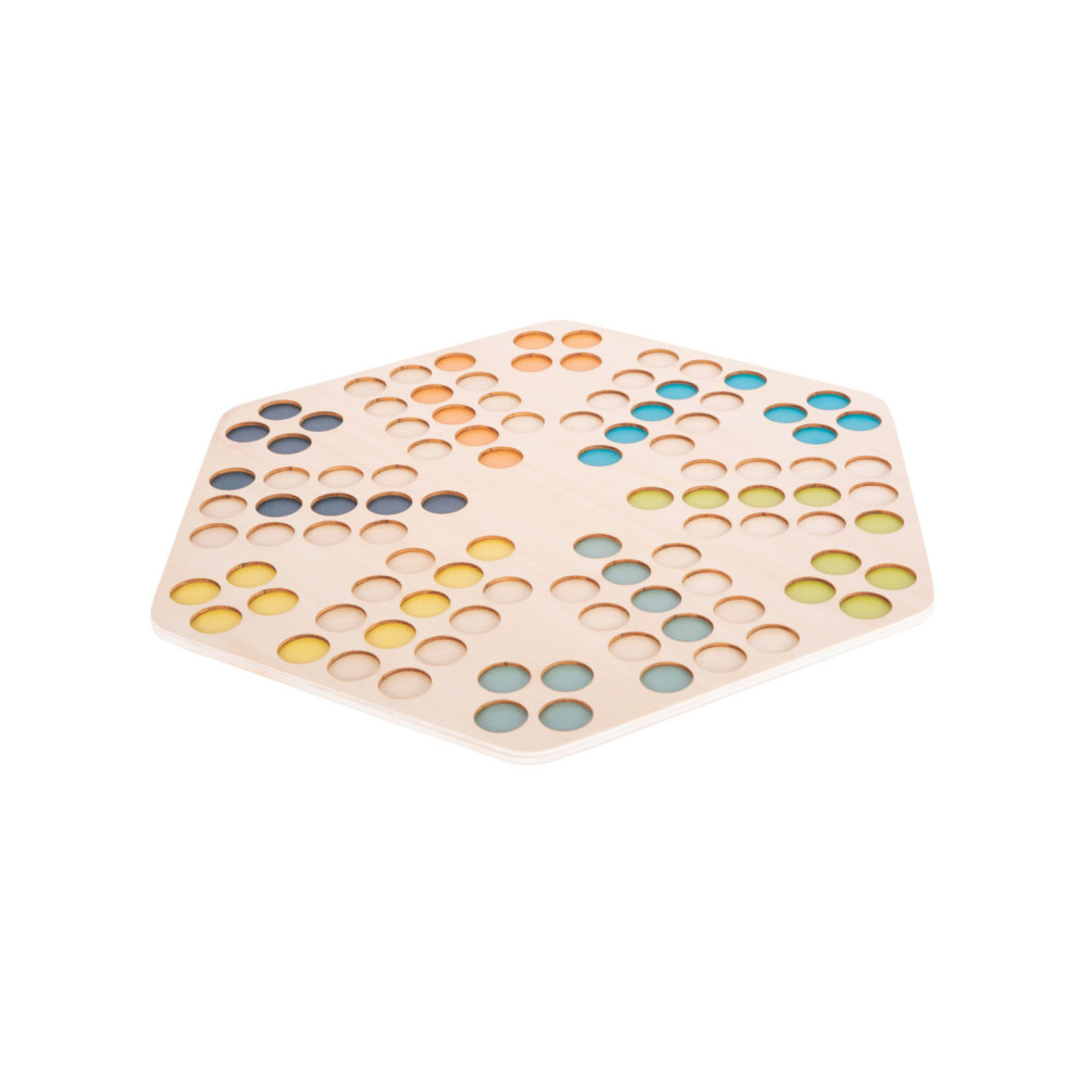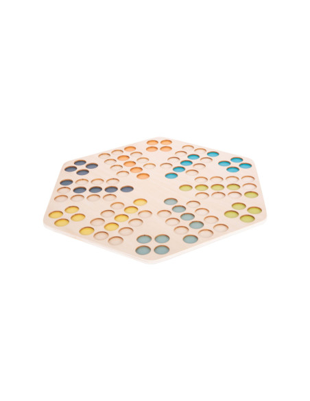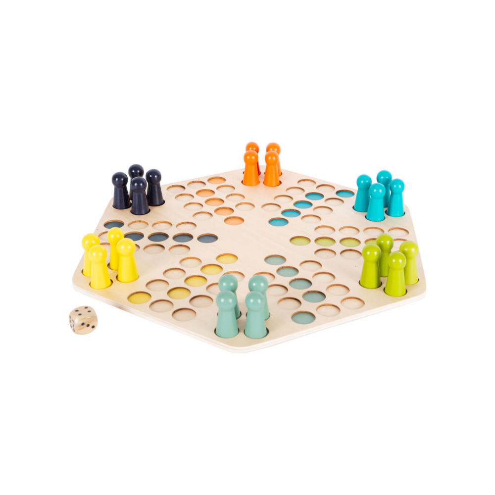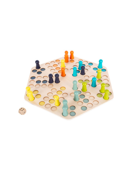 Een klassiek gezelschapsspel voor zes spelers! Dit houten spel van Ludo maakt indruk met zijn XXL-formaat en extra grote speelstukken. Precies wat je nodig hebt voor kleine of onstabiele handen!