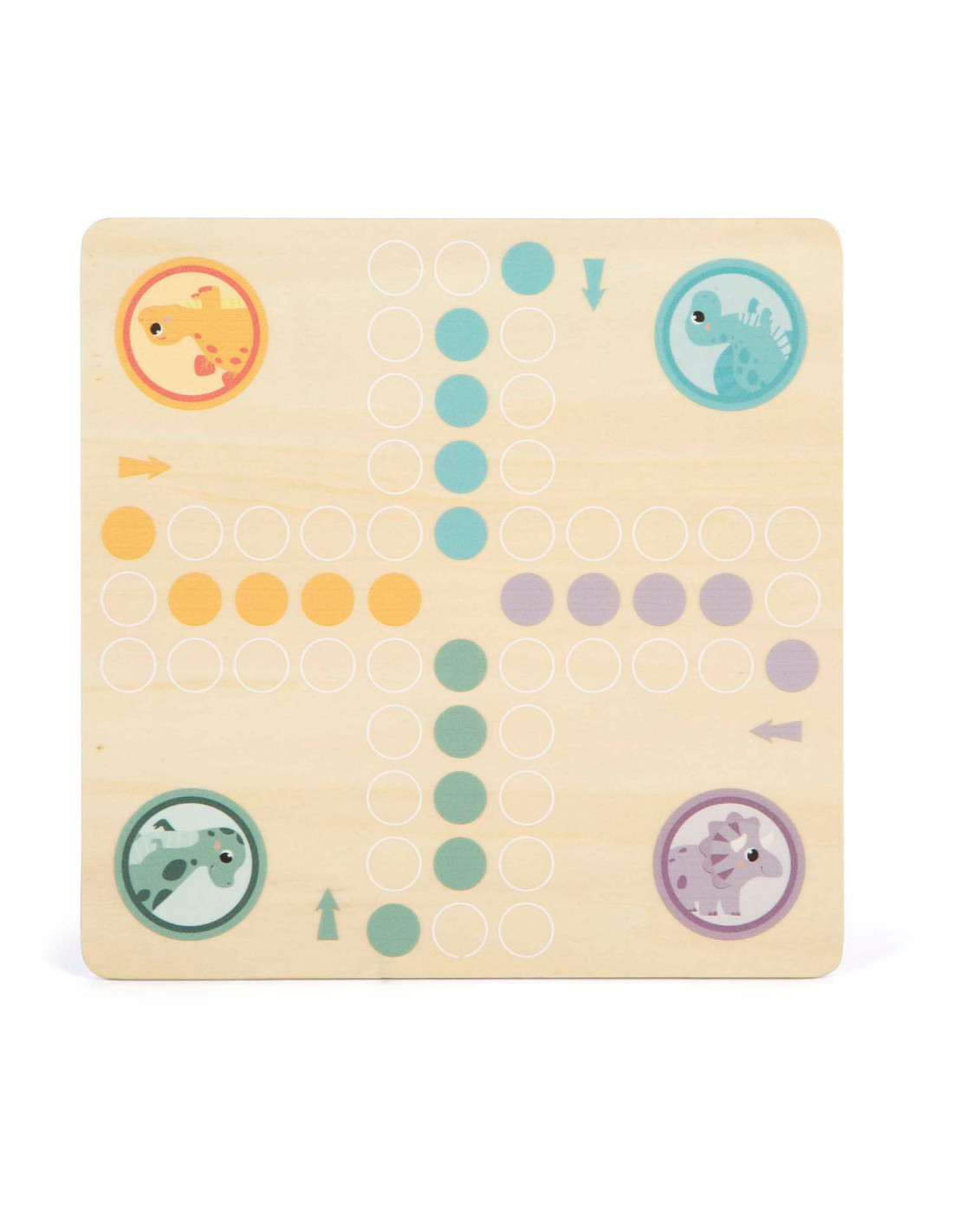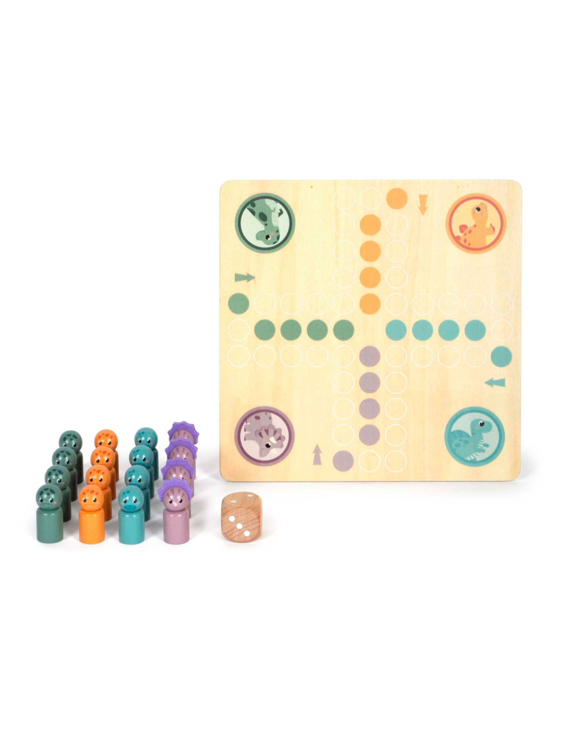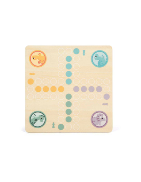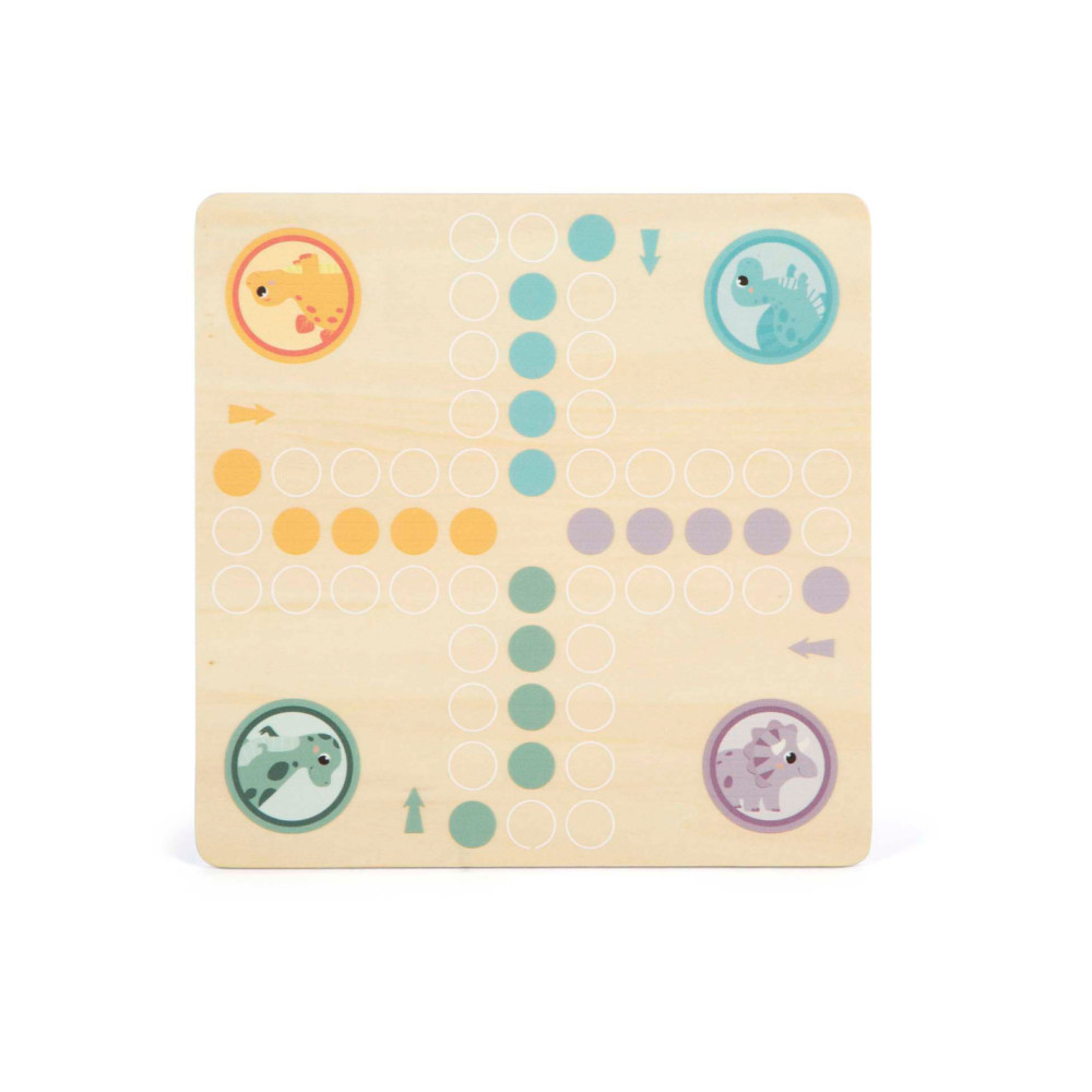 Ludo bordspel met dinosaurus thema. Geschikt voor kinderen vanaf 4 jaar. Het bord is 20 x 20 x 1 cm groot.