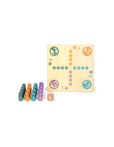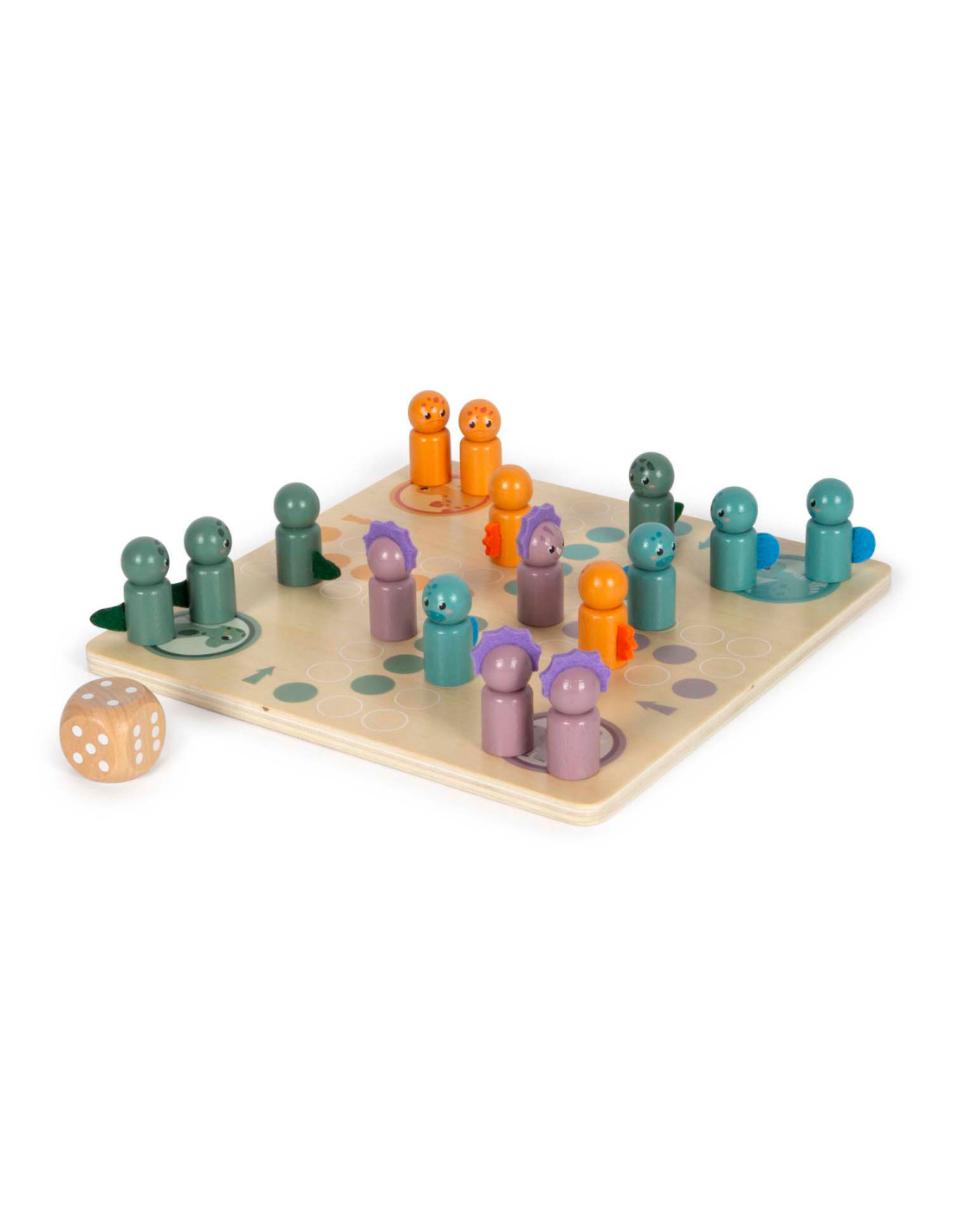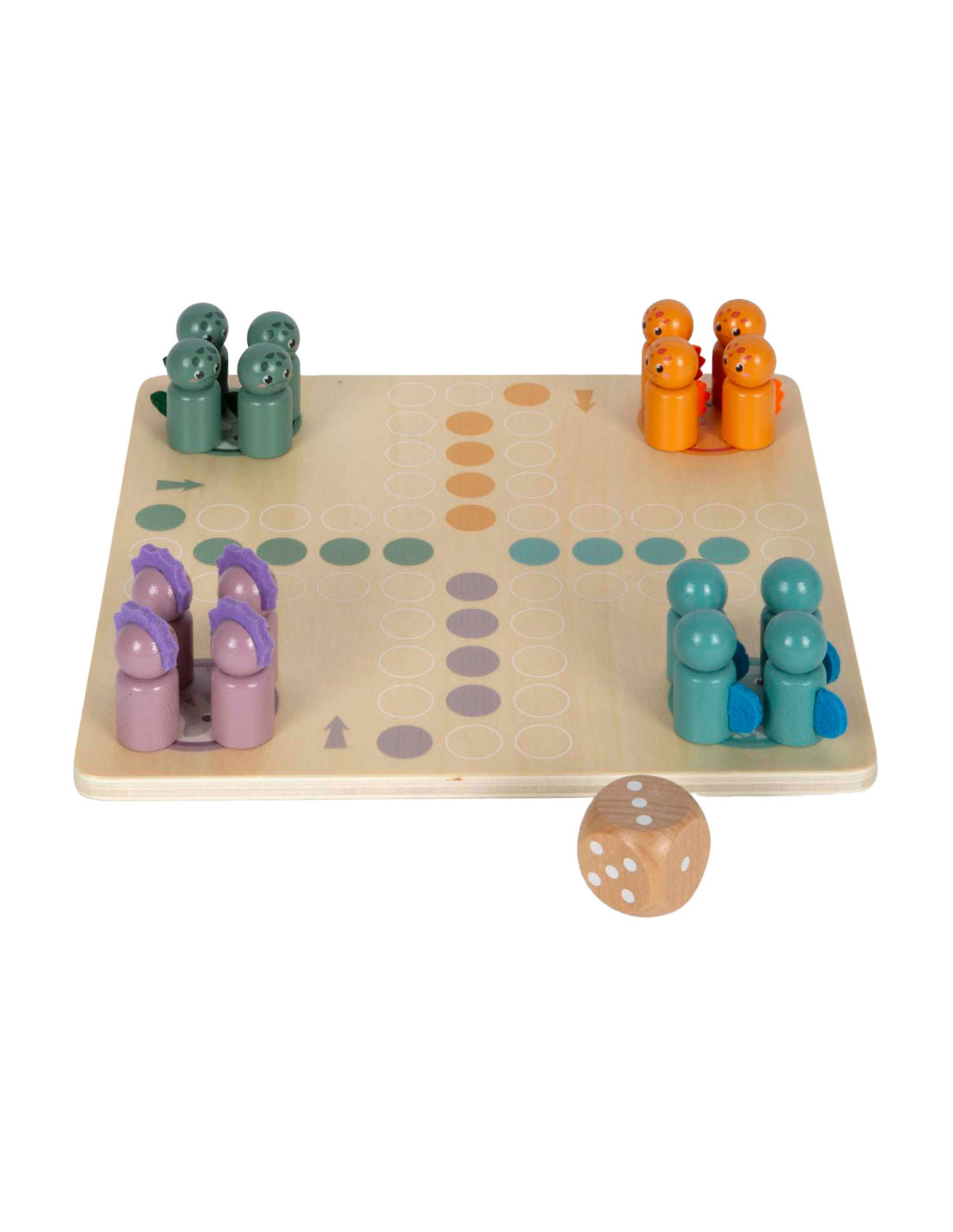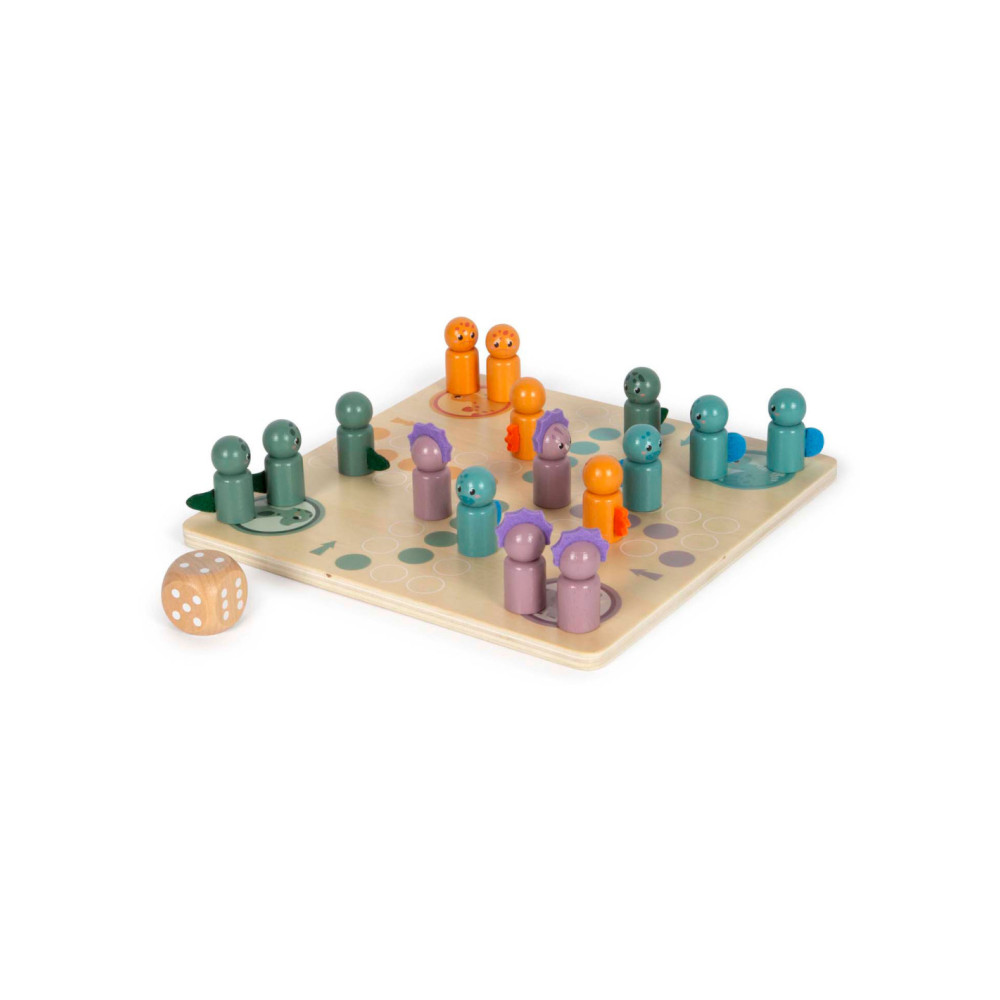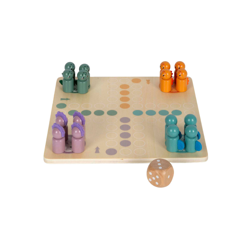Ludo bordspel met dinosaurus thema. Geschikt voor kinderen vanaf 4 jaar. Het bord is 20 x 20 x 1 cm groot.