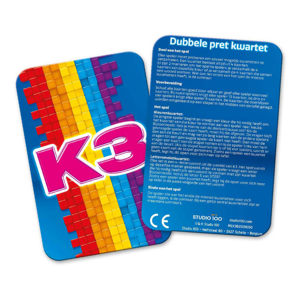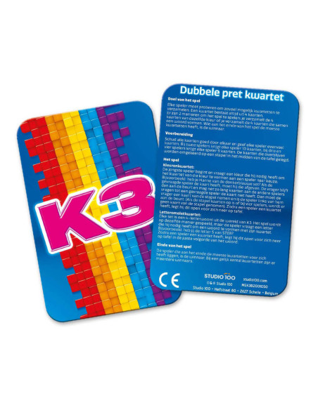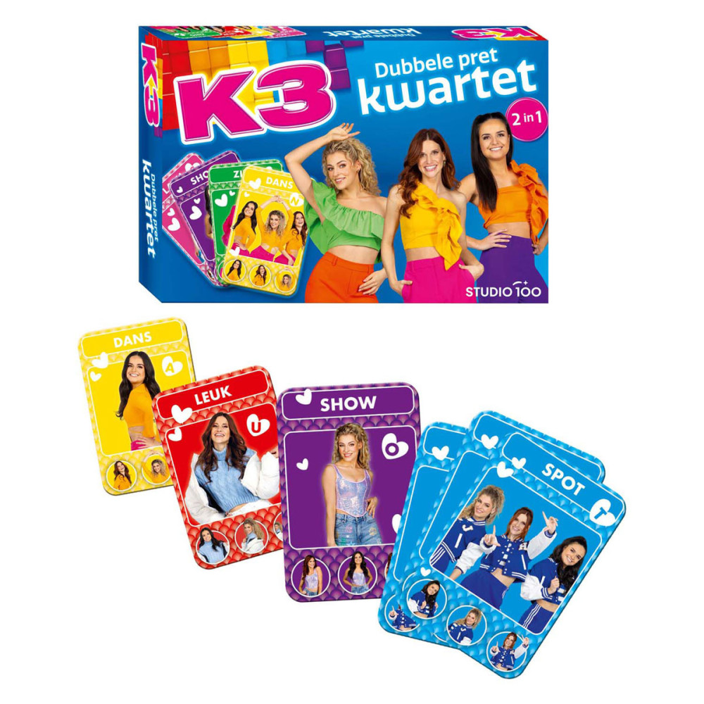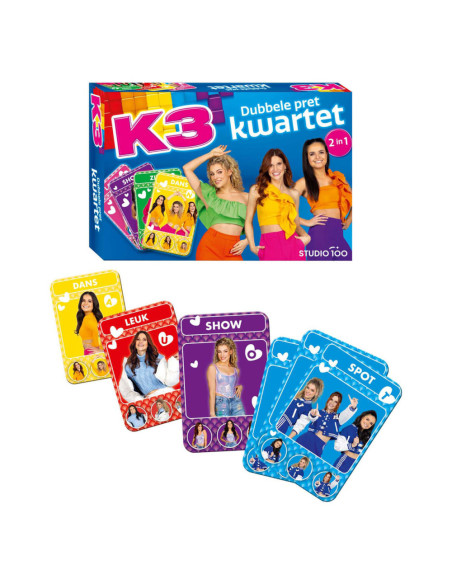K3 kwartetspel met 2 mogelijkheden om kwartet te behalen. Geschikt voor 2 spelers vanaf 4 jaar.