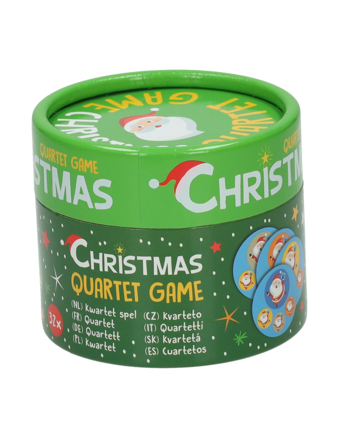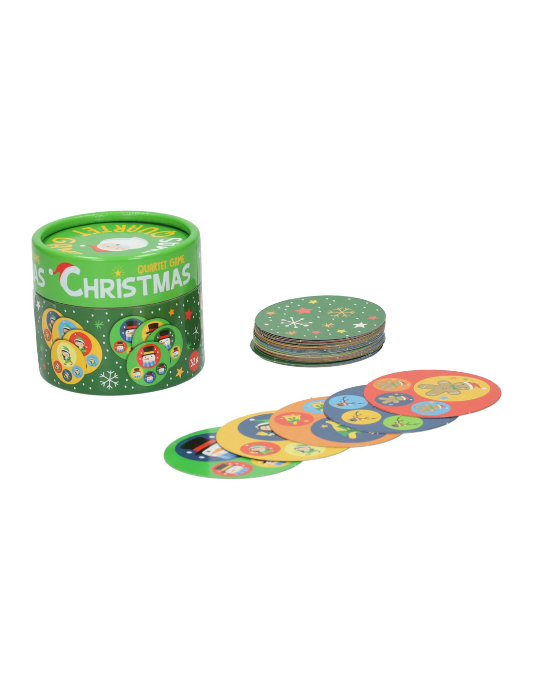 Kwartetspel met Kerstmis-thema. Inhoud: 32 kaarten