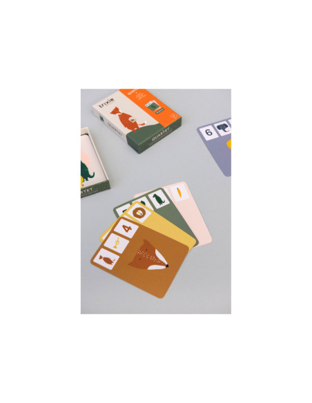 Probeer zo snel mogelijk 4 kaarten van dezelfde reeks te verzamelen! Dit is een echte klassieker die steevast in de smaak valt bij kinderen. Kwartet is een educatief spel met leuke dierenillustraties. Door te spelen leren kinderen verschillende dieren kenne, terwijl ze ook andere belangrijke vaardigheden oefenen zoals hun geheugen en concentratie. Een leuk spel om met de rest van het gezin te spelen waarbij de spanning stevig kan oplopen om al eerste je kaarten af te leggen! Dit spel is gemaakt van sterk FSC© karton en is bedrukt met soya inkt.