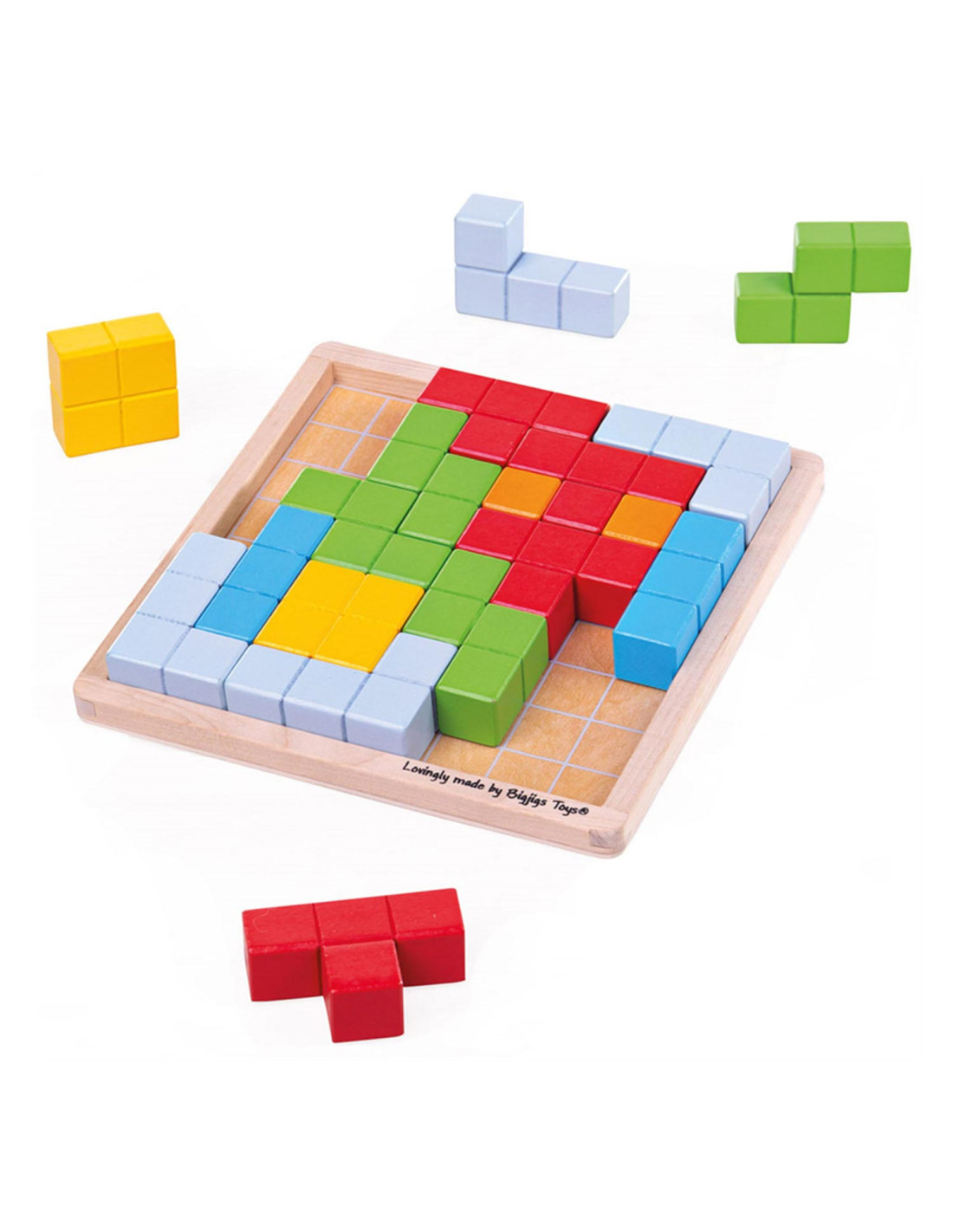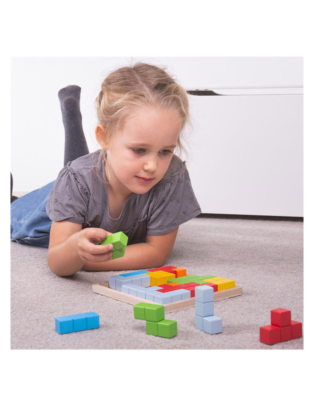 Houten blokpuzzel voor kinderen vanaf 3 jaar oud. Haal de kleurrijke blokjes uit de bak en probeer ze weer allemaal in elkaar te passen. De houten blokpuzzel is het perfecte spel voor interactieve speelsessies en het ontwikkelen van hand-oogcoördinatie. Gemaakt van hoogwaardige, verantwoorde materialen en gecoat met niet-giftige, kindvriendelijke verven en lakken. Geschikt voor kinderen vanaf 3 jaar oud. Afmetingen: 18 x 18 x 1,3 centimeter.