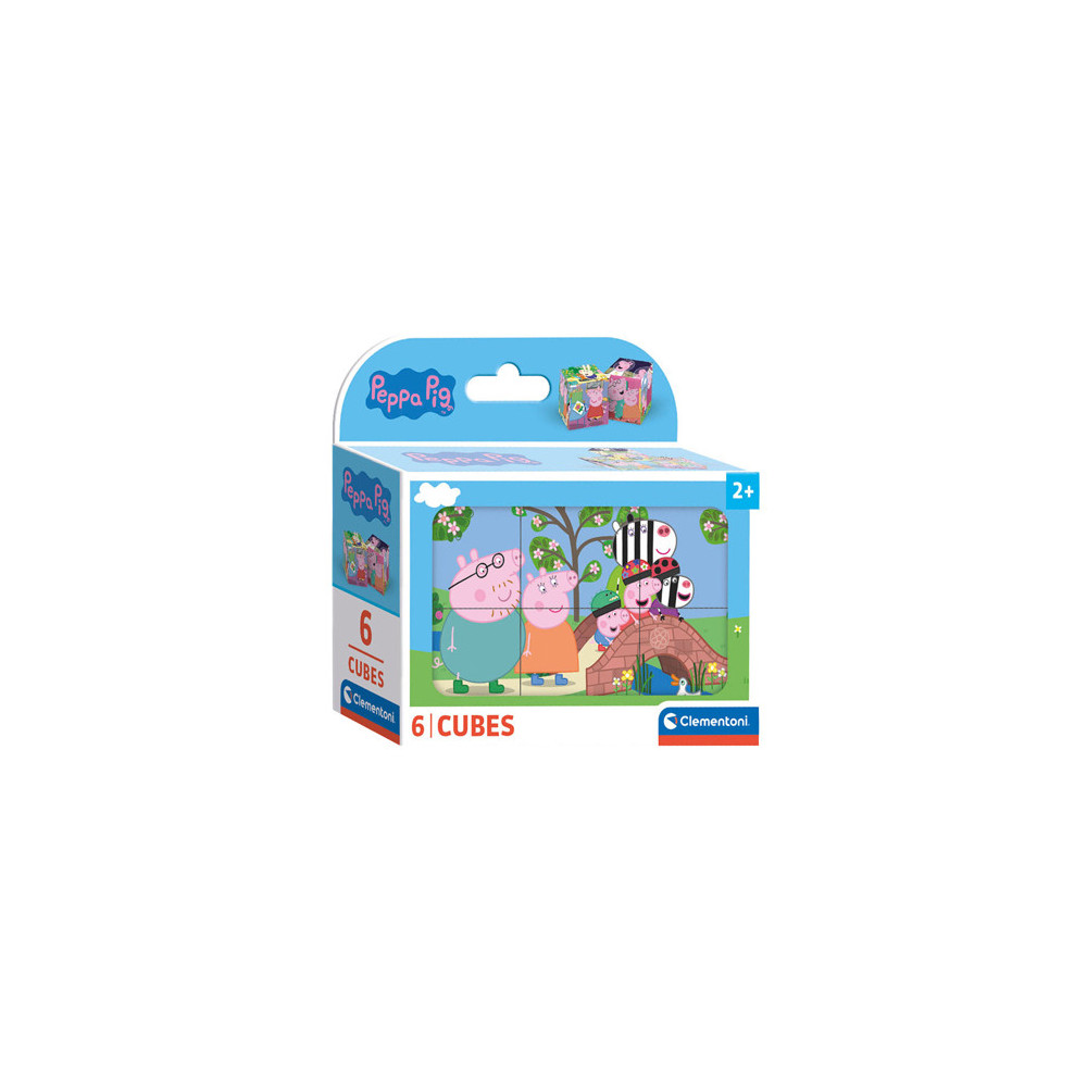 Peppa Big blokken puzzel. Een pakket met 6 Clementoni-blokjes om 6 verschillende Peppa Big afbeeldingen te puzzelen. Deze puzzels stimuleren de opmerkzaamheid, het logisch denken en de handvaardigheid. Geschikt voor kinderen vanaf 2 jaar oud.