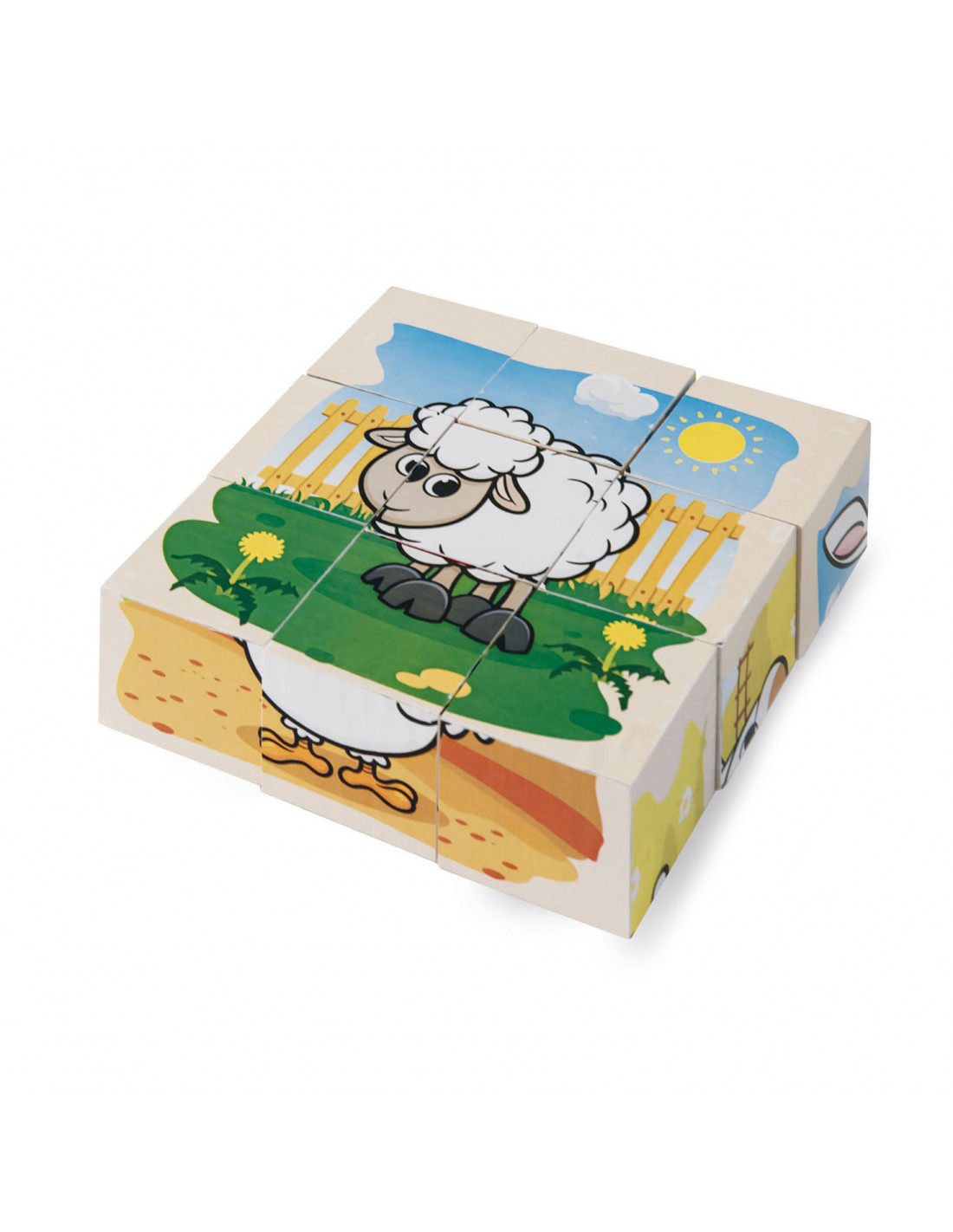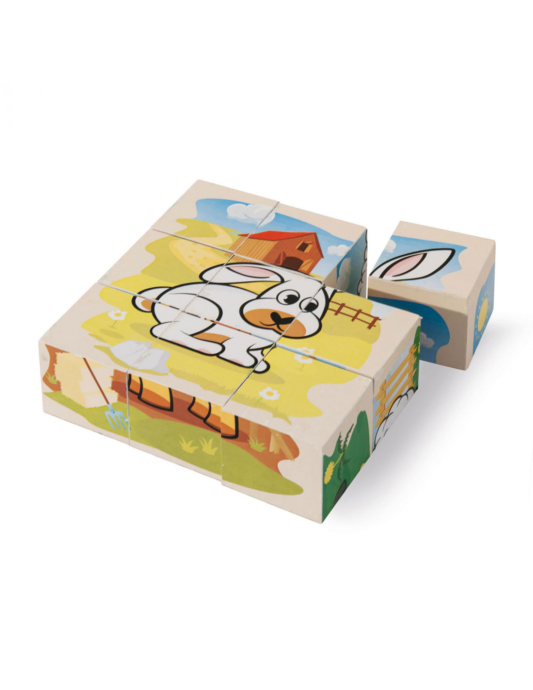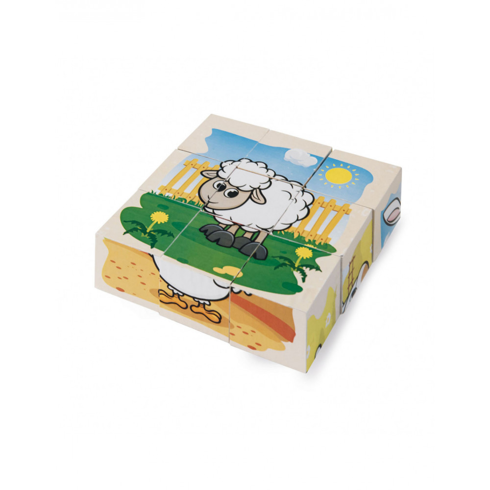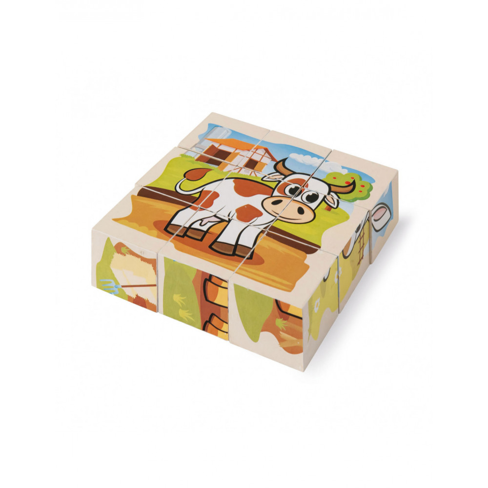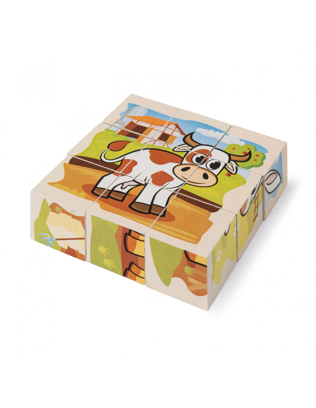 Eicchorn houten blokpuzzel boerderij met zes verschillende boerderijdieren. Het hout is 100% FSC-gecertificeerd.