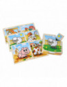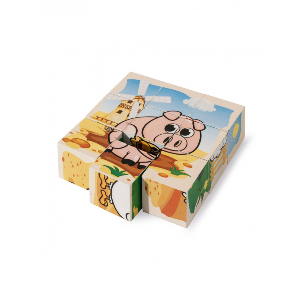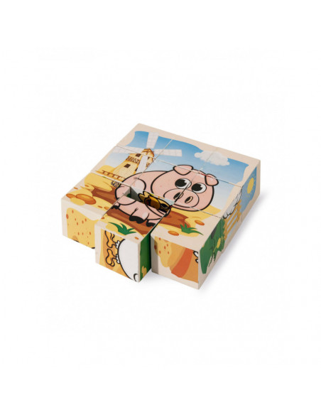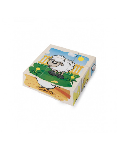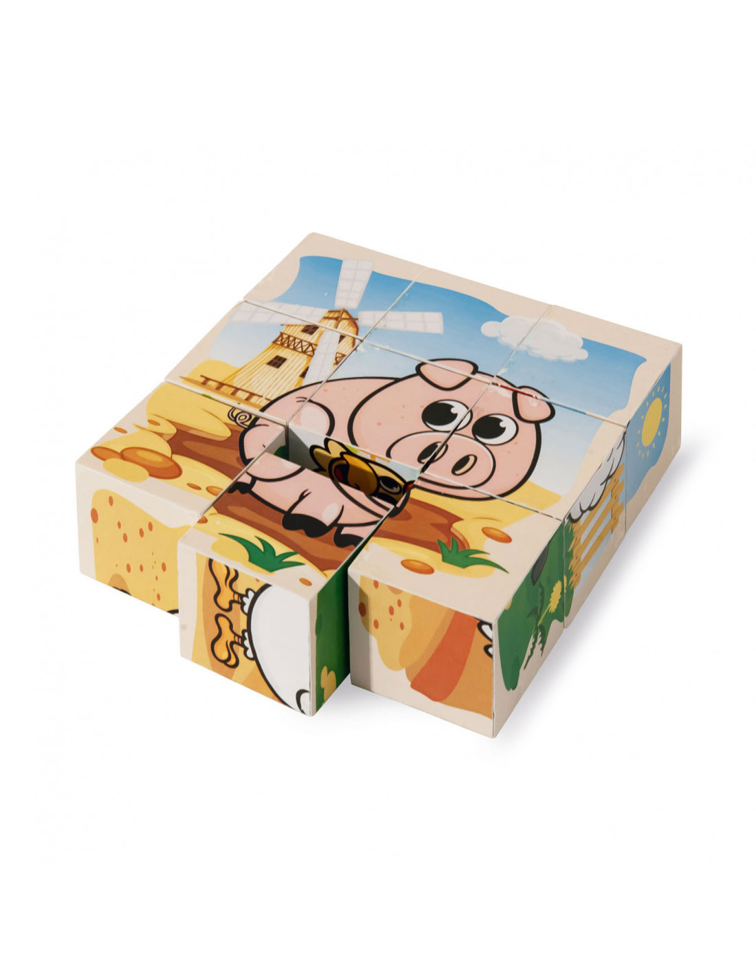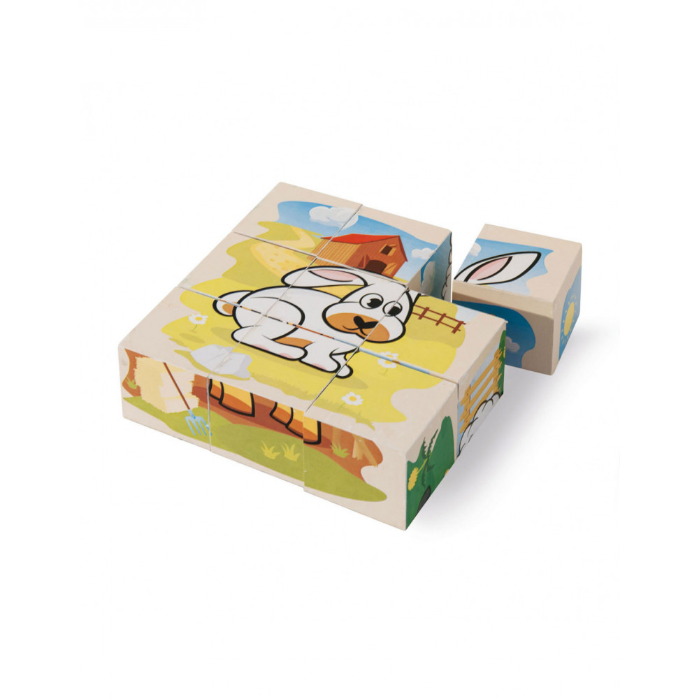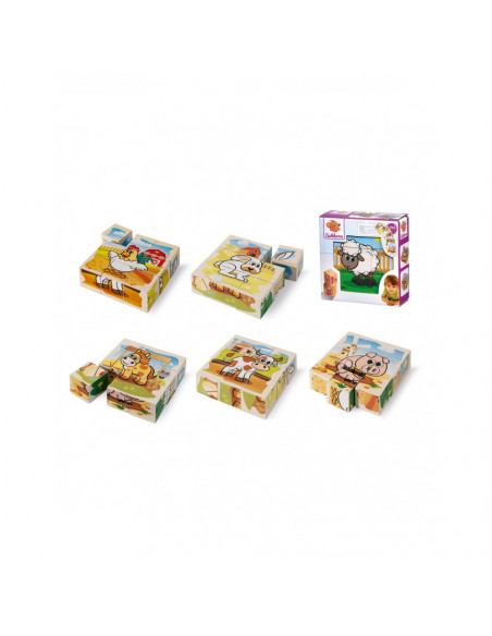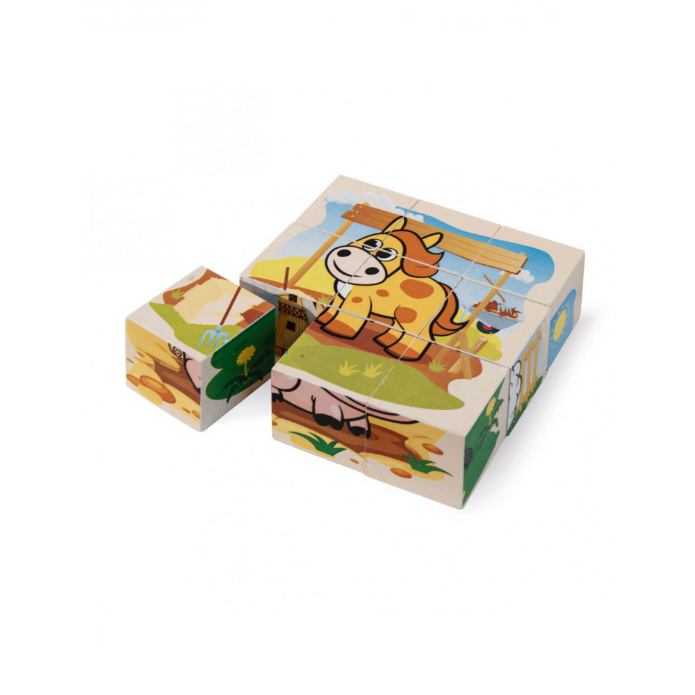 Eicchorn houten blokpuzzel boerderij met zes verschillende boerderijdieren. Het hout is 100% FSC-gecertificeerd.
