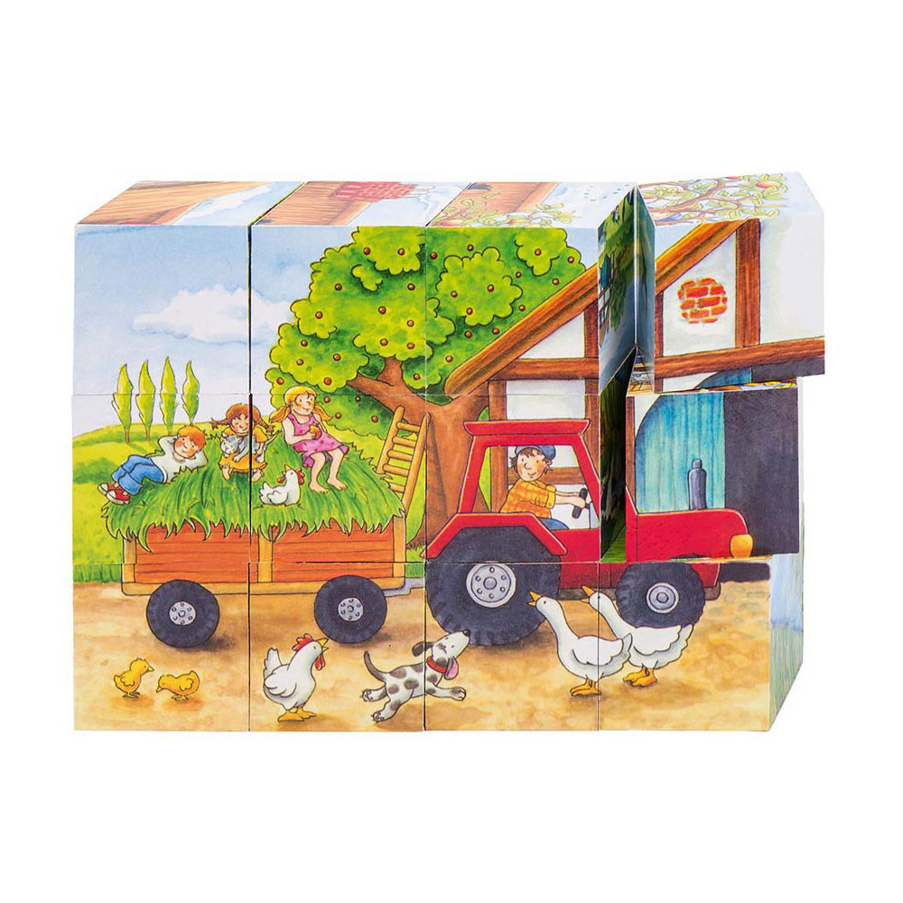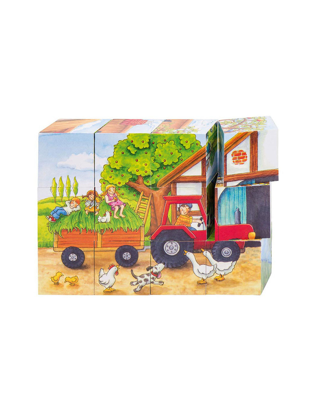 Houten blokpuzzel met het thema leven op de boerderij van Goki. De puzzel bestaat uit 12 blokken waarmee je 6 verschillende puzzels kunt maken. De puzzel is 14 x 10,5 x 3,5 centimeter groot en geschikt voor kinderen vanaf 3 jaar.