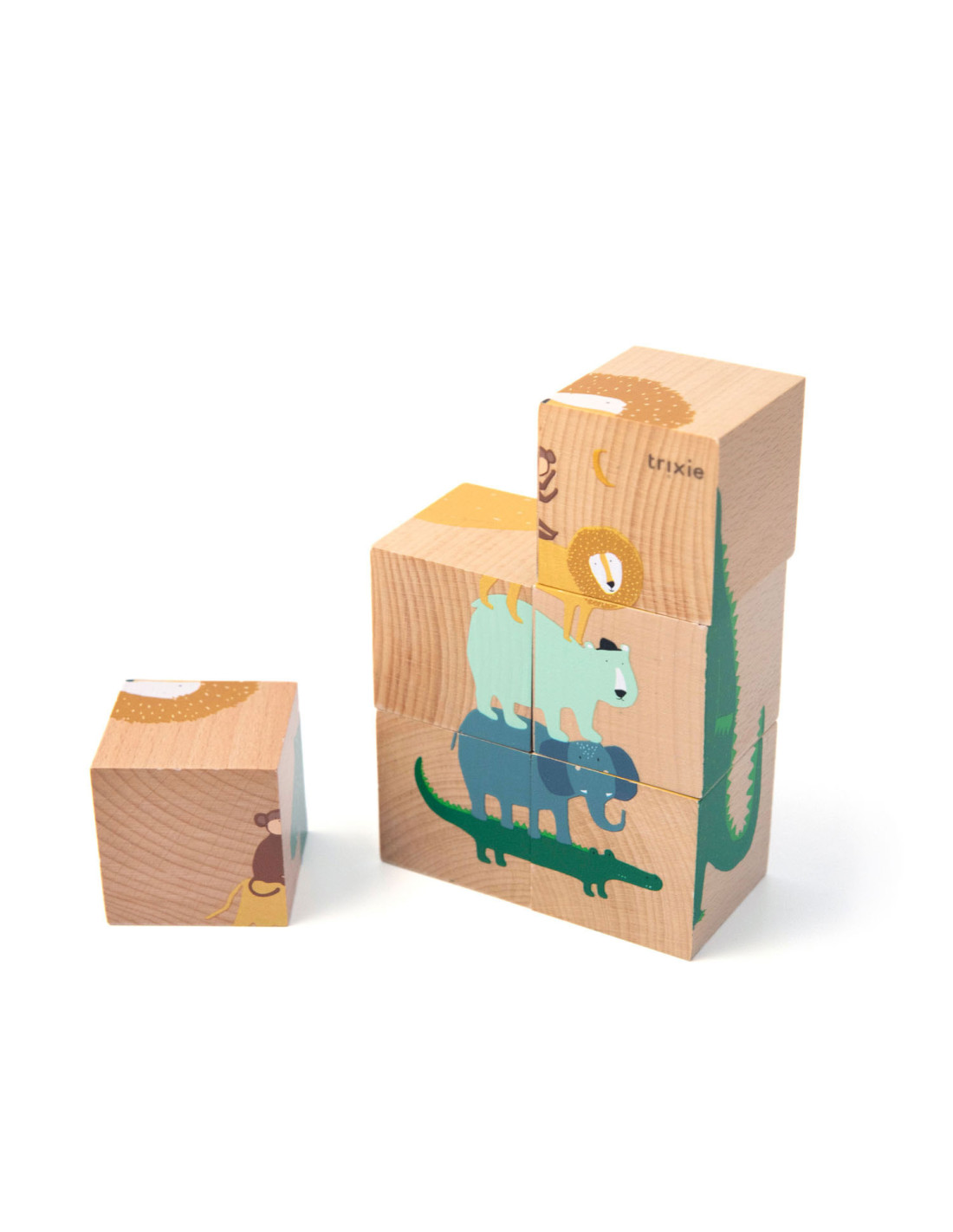 Een klassieker onder het houten speelgoed: puzzelblokken! Zes verschillende puzzels om in elkaar te zetten en wat leuk om de houten blokken op elkaar te stapelen. Deze puzzelblokken zullen de fijne motoriek en cognitieve vaardigheden van uw kind verbeteren. De puzzel is gemaakt van 100% FSC © gecertificeerd hout. Alle verven zijn op waterbasis en veilig voor baby's.