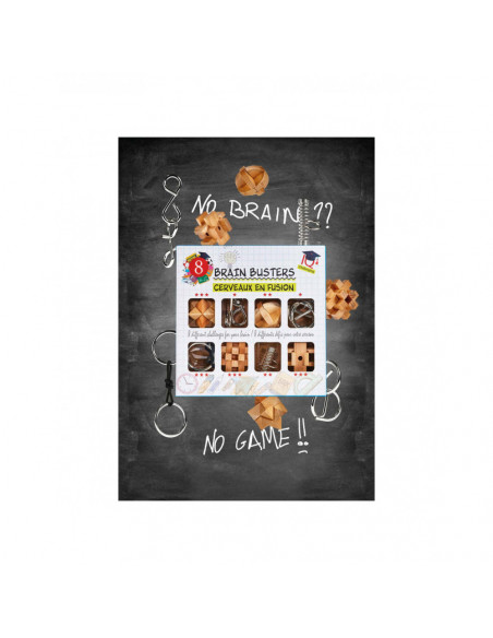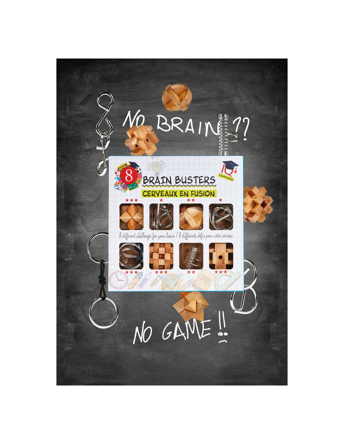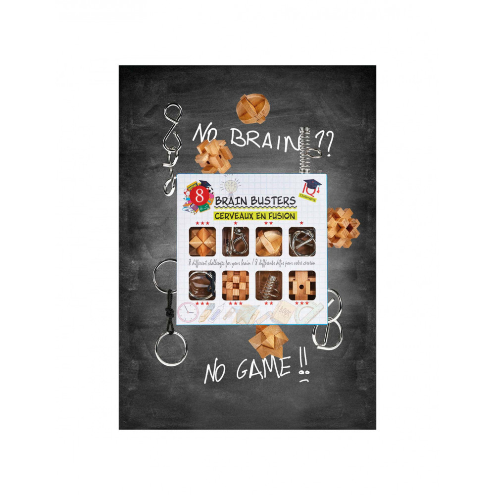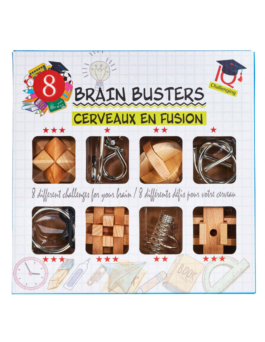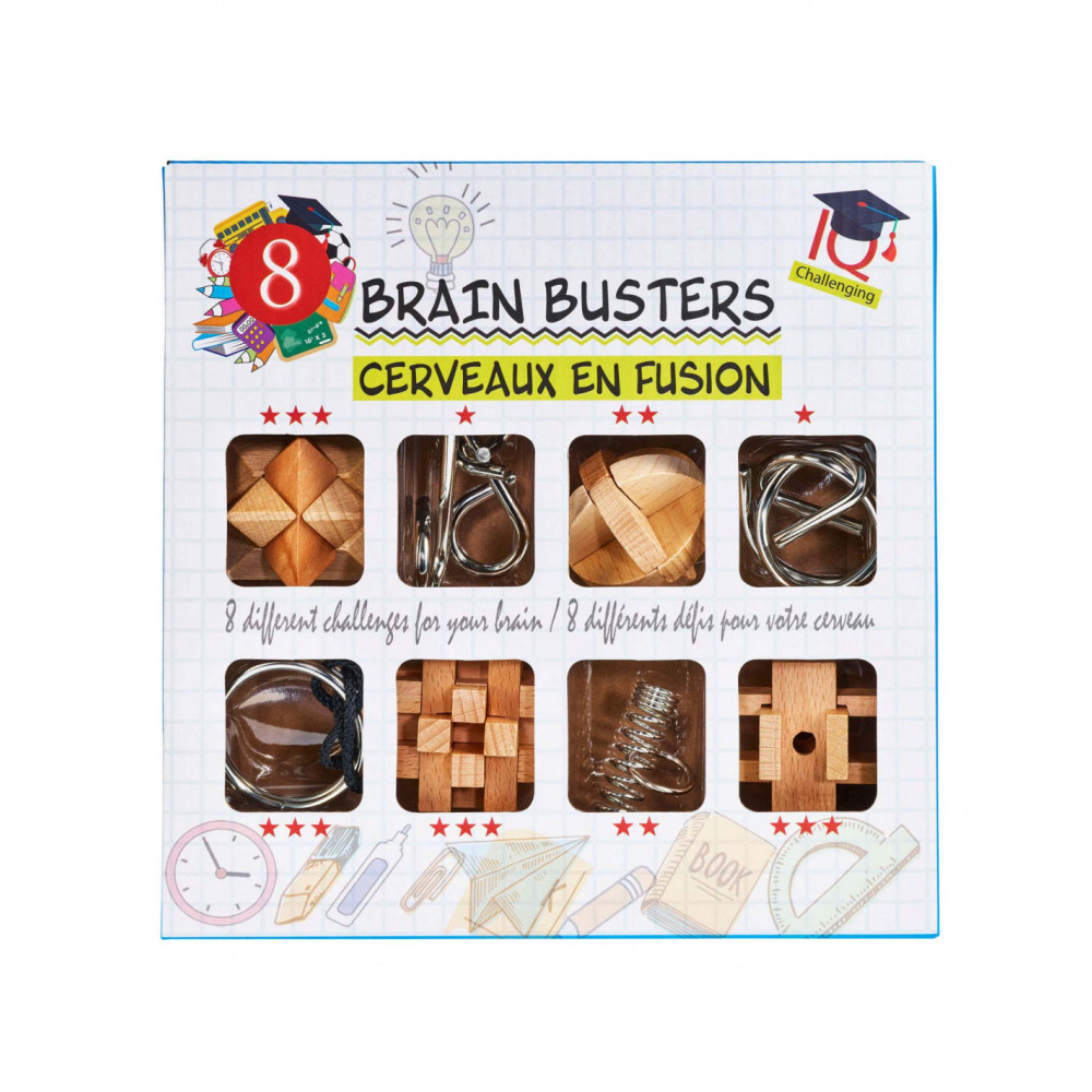 8 stuks breinpuzzels gemaakt van hout en metaal.