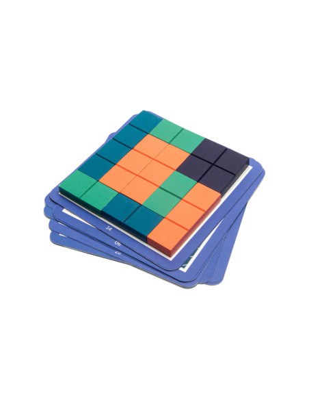 Met deze kleurrijke houten legpuzzel wordt puzzelen kinderspel voor zesjarigen. De puzzel bestaat uit vierkante vormen, waarbij het de bedoeling is om de gekleurde stippen te matchen met het juiste vierkante puzzelstukje. Het bijgeleverde boekje geeft de oplossing van de puzzel, maar het is natuurlijk veel leuker om er zelf achter te komen.