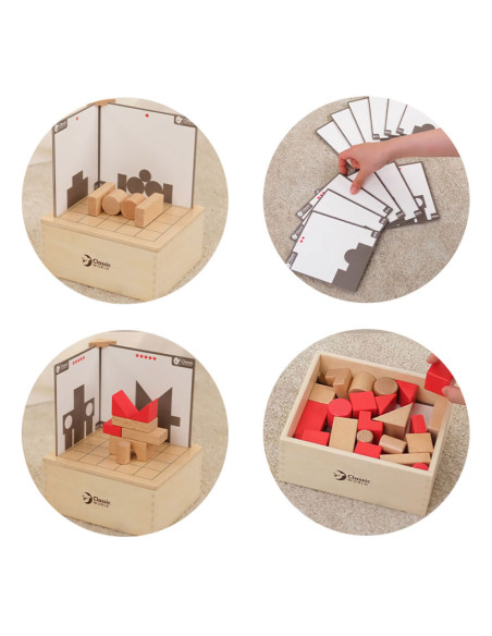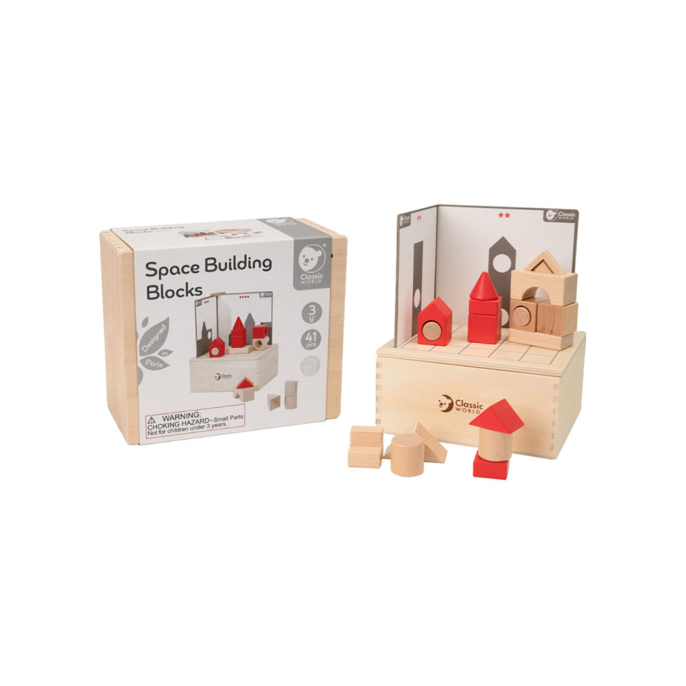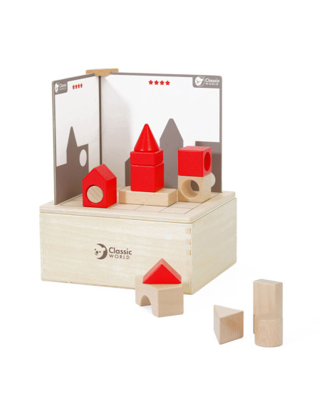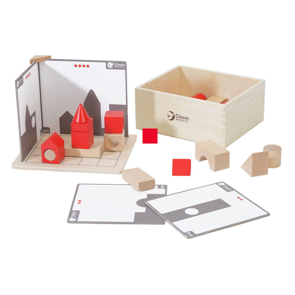 Slim constructiespel van Classic World voor peuters en kinderen. Bouw met de ruimteblokken de silhouetten op de kaartjes na. Klopt het aan alle kanten? Gemaakt van duurzaam hout en bewerkt met kindveilige materialen. Geschikt voor kinderen vanaf 3 jaar.