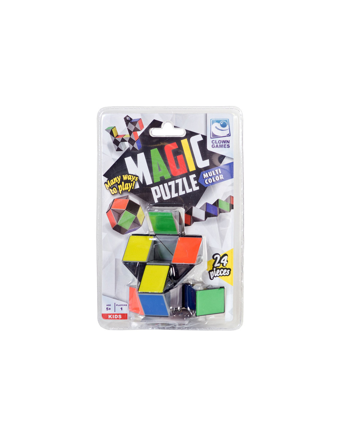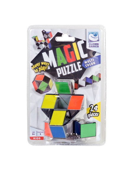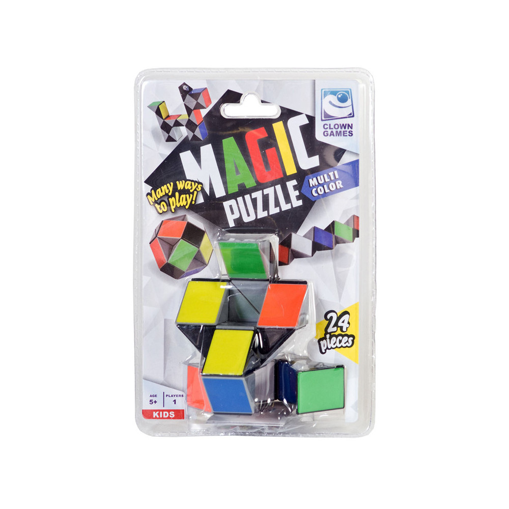 Clown Magic Puzzle in multi colour! Met deze coole puzzel kun je van alles maken! Een struisvogel, een sleutel of een bal...gebruik jouw fantasie! Deze fidget bestaat uit 24 draaibare elementen. Wordt geleverd in clamshellverpakking. Geschikt voor kinderen vanaf 5 jaar.