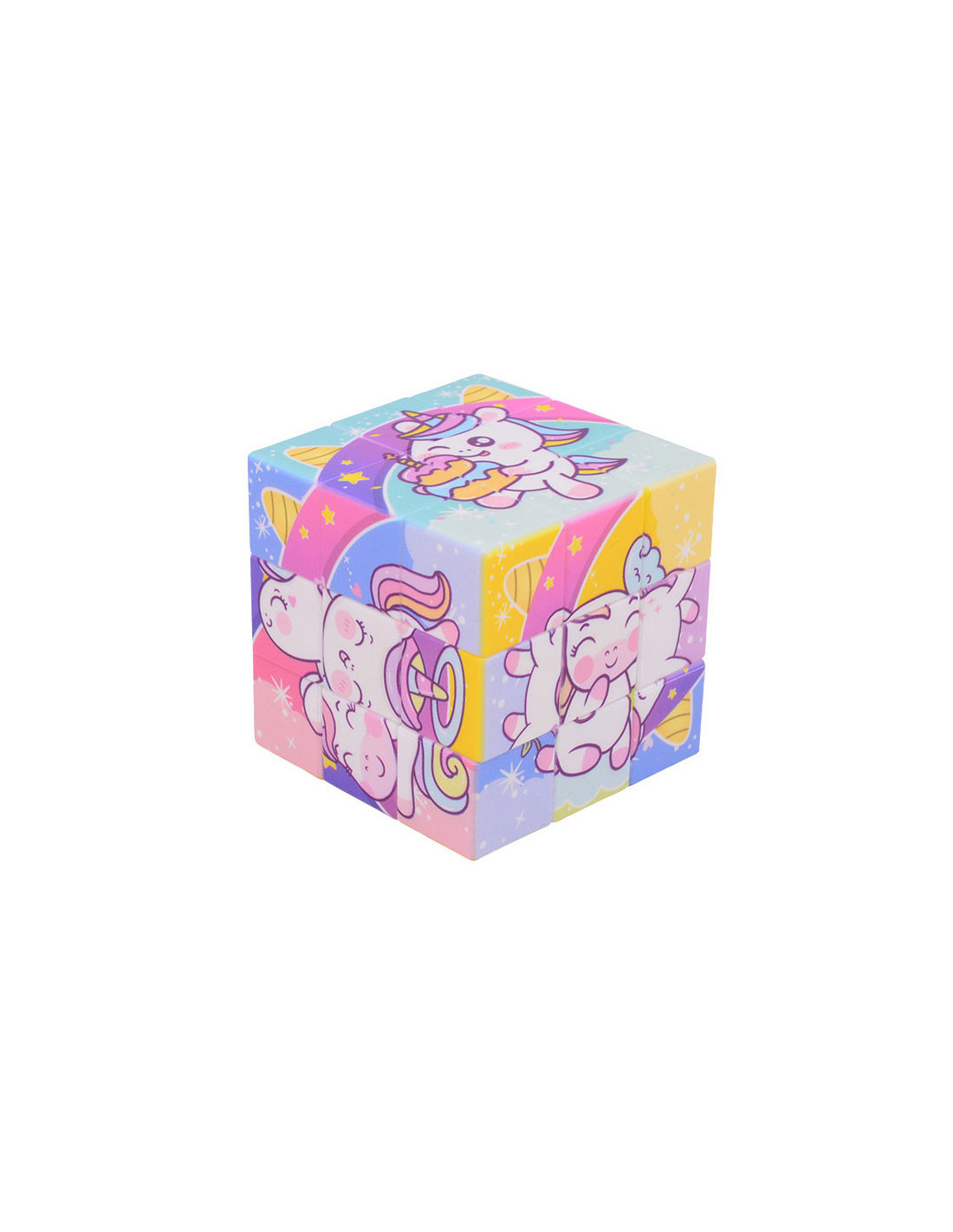 Het oplossen van de puzzelkubus stimuleert ruimtelijk inzicht, cognitieve vaardigheden en fijne motoriek. Met elke draai werk je stap voor stap naar het voltooien van de afbeeldingen van de eenhoorns. Het is een boeiende en educatieve activiteit die plezier en uitdaging combineert.
