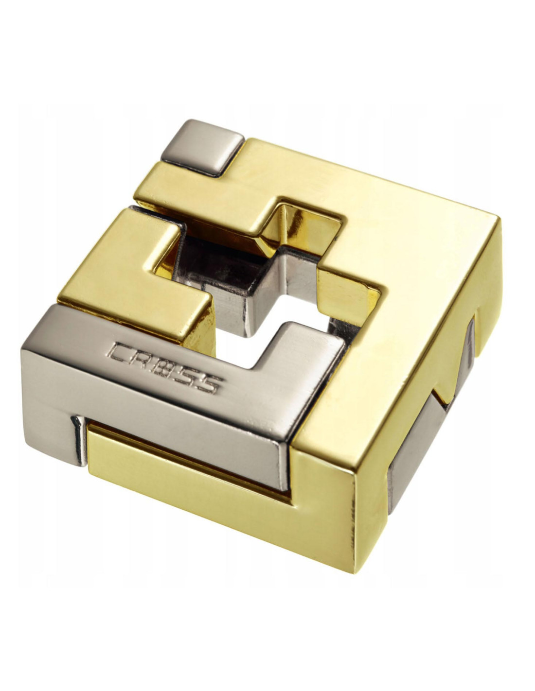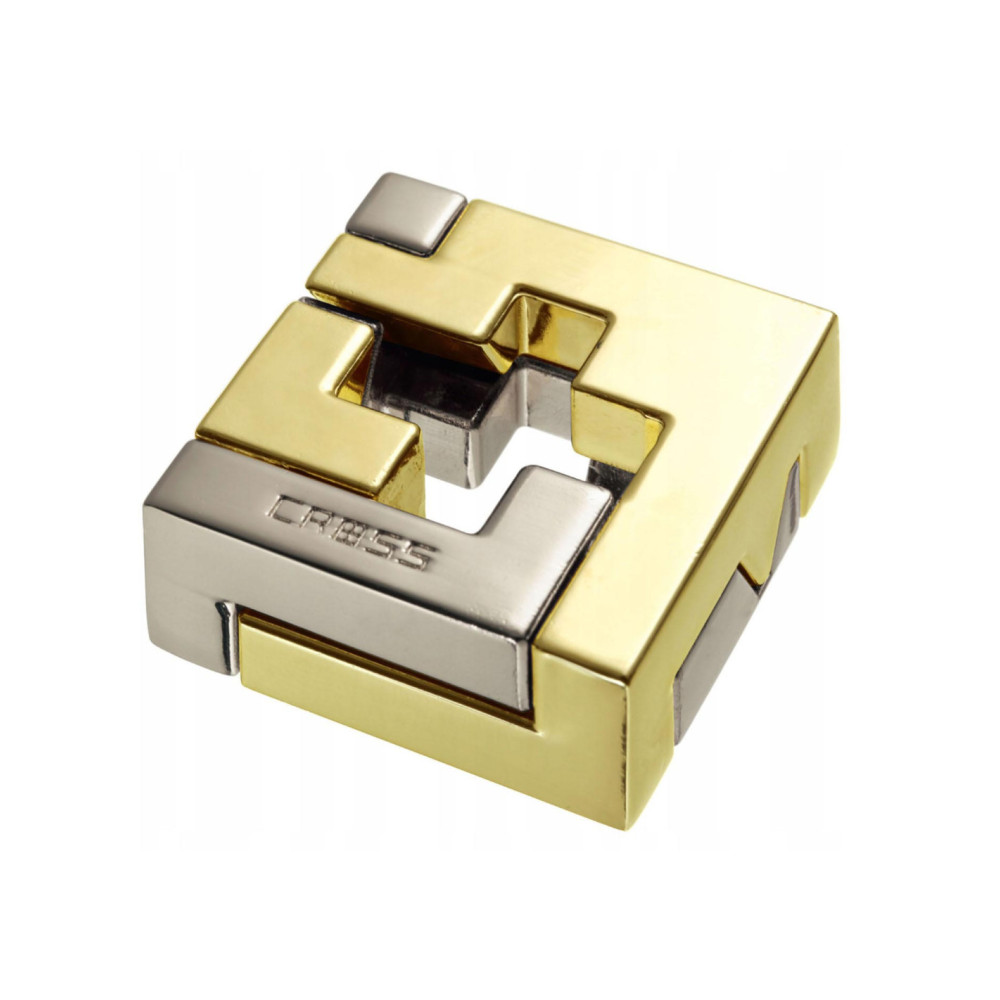 Stevige metalen breinpuzzel met moeilijkheidsgraad van 3 sterren ***. Haal de onderdelen uit elkaar en zet ze vervolgens weer in elkaar. Afmetingen: 7,5 x 11,7 x 4,5 centimeter.