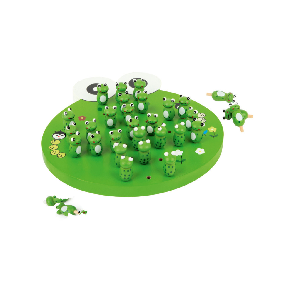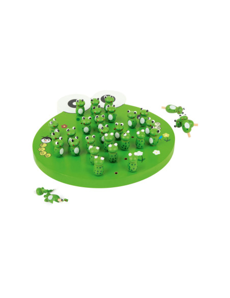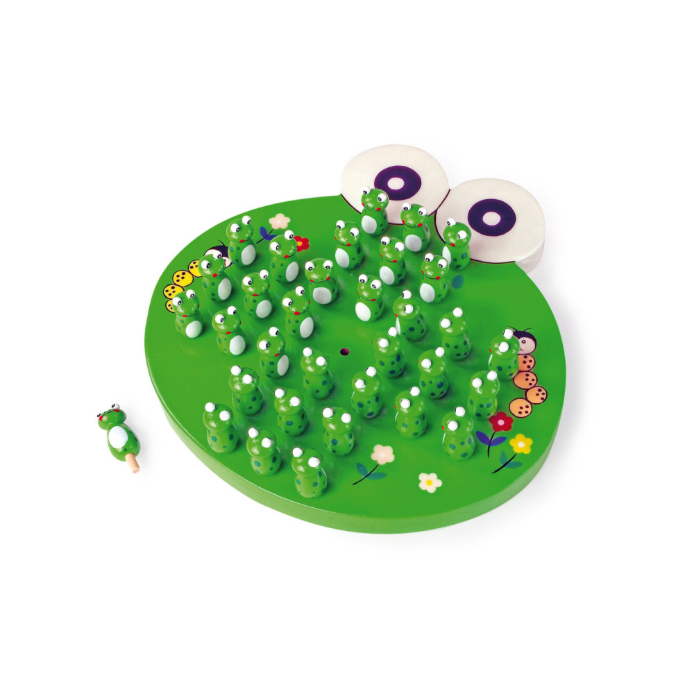 Een traditioneel spel in een kindvriendelijk design. Het doel van dit klassieke bordspel is om zet voor zet het aantal kikkers op het bord te verminderen. Het is een behendigheidsspel dat echt verslavend kan zijn! Dit Solitaire-spel bevordert de ontwikkeling van logisch denken en concentratie. Het is geweldig tijdverdrijf, dat ook heel leuk is als je onderweg bent!