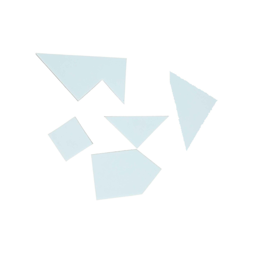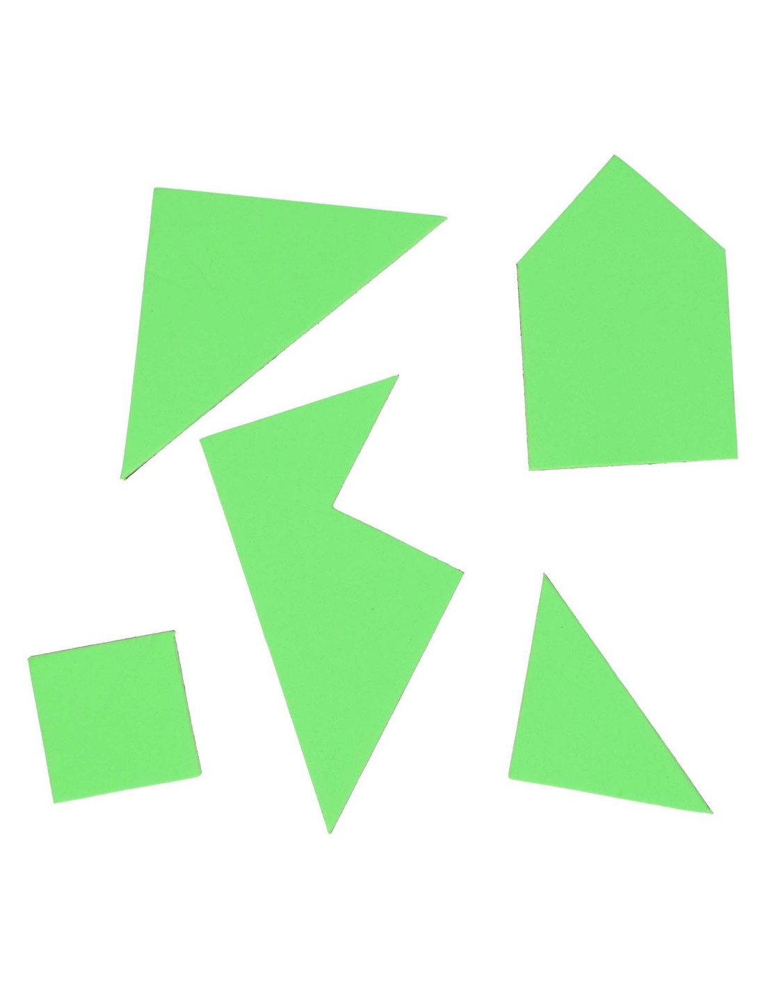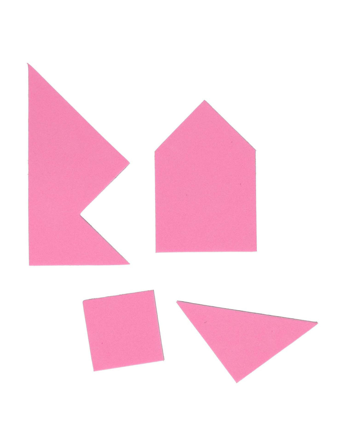 4 kleuren Tangrampuzzel van 4 x 5 stukken. De puzzel die je kunt maken, bestaat uit 5 stukken. Geschikt vanaf 3 jaar.