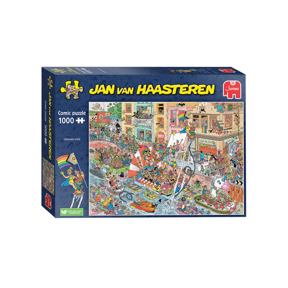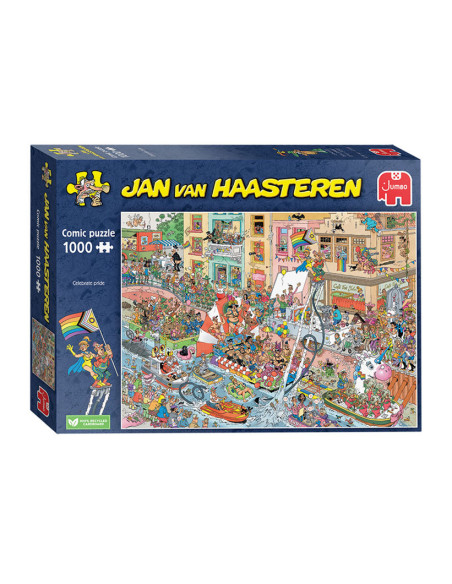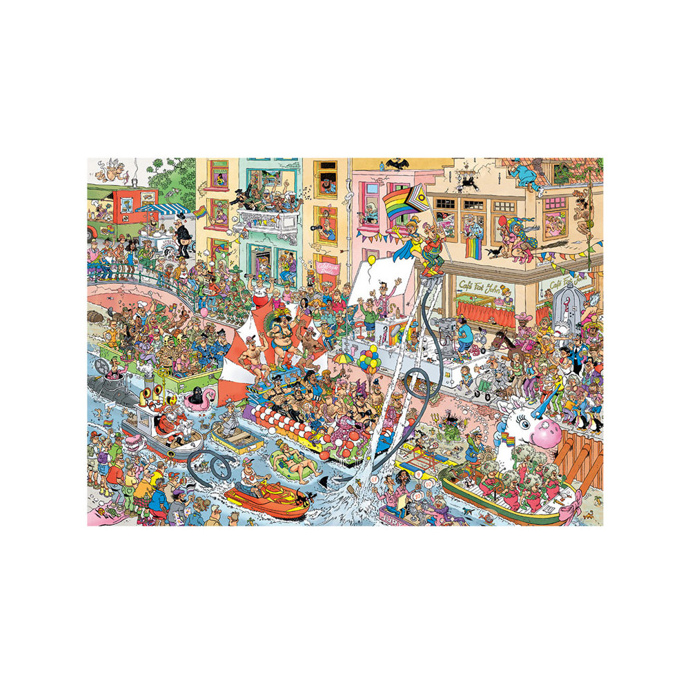 De Jan van Haasteren familie viert het Pride Festival in Amsterdam. Ze genieten van de kleurrijke parade en sommigen zijn zelfs aanwezig! Wat een manier om de vrijheid van liefde te vieren.Jan van Haasteren puzzels zijn puzzels met veel kleur en details. Jan van Haasteren tekent al decennia lang humoristische platen die je steeds weer verrassen en laten lachen. De echte fans kennen de specifieke kenmerken van Jan van Haasteren en zoeken in elke puzzel direct naar de haaienvin, Sinterklaas, de handjes, het kunstgebit en Jan�??s zelfportret. Jumbo heeft tientallen Jan van Haasteren puzzels in de collectie van 54 tot maar liefst 5.000 puzzelstukjes.
