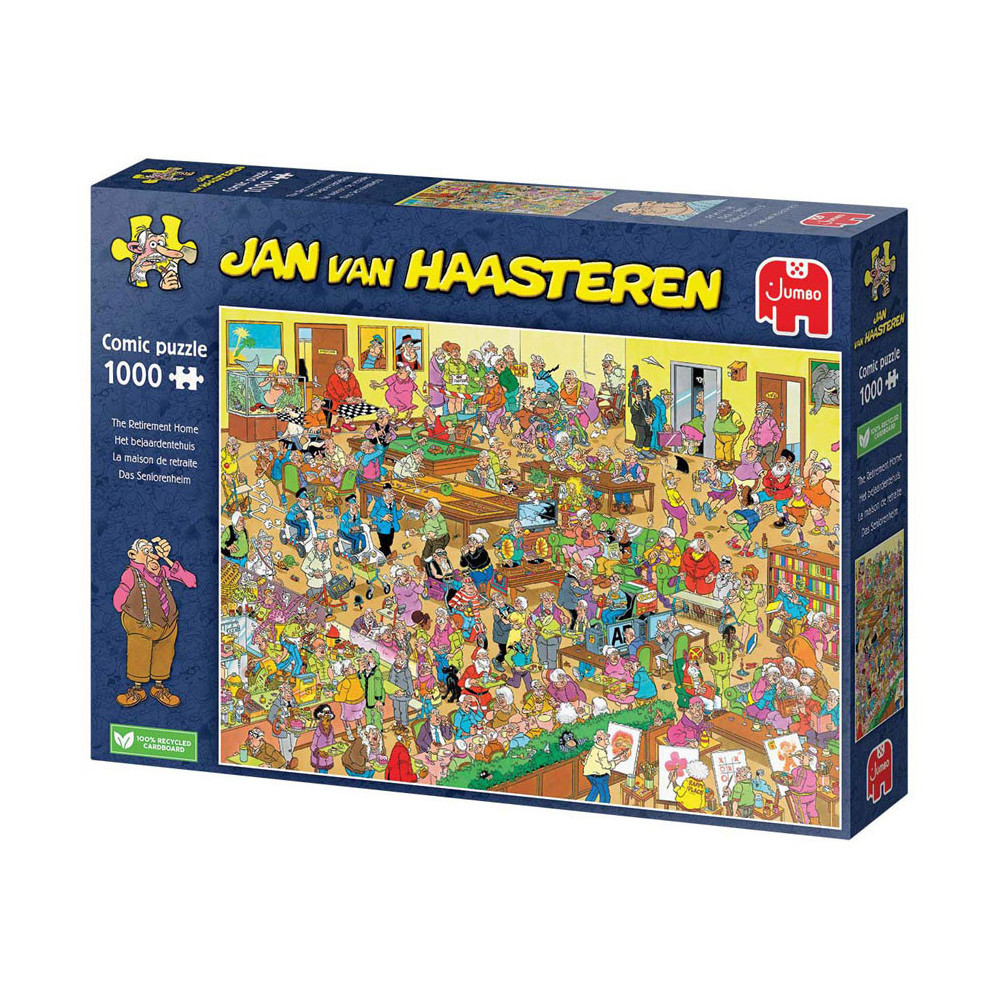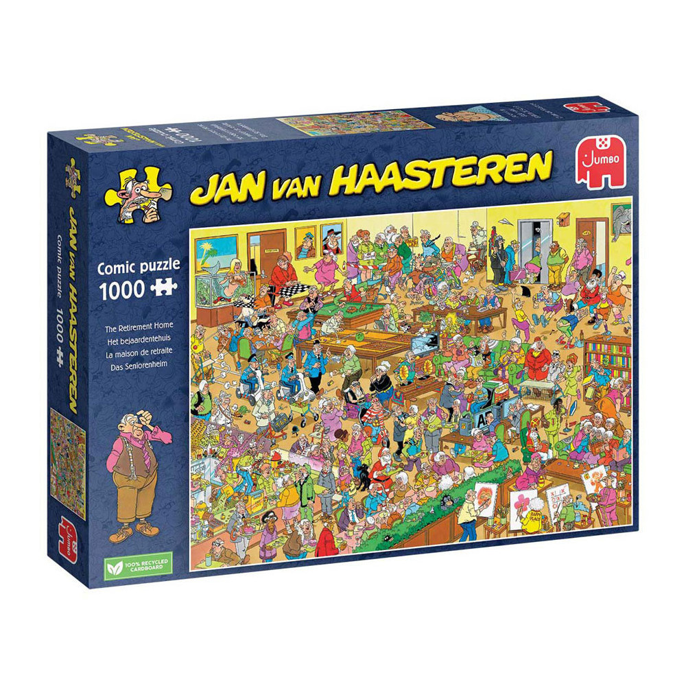 Met Deze Puzzel Nemen We Een Kijkje In De Toekomst, Wanneer De Jan Van Haasteren Familie De Senioren Leeftijd Heeft Bereikt. In Het Bejaardentehuis Is Van Alles Te Doen! Schilderles, Potje Biljarten Of Sjoelen En Er Is Een Fijn Restaurant Met Heel Veel Lekkers. Wie Wil Hier Nou Niet Wonen? Over Jan Van Haasteren Puzzels Jan Van Haasteren Puzzels Zijn Puzzels Met Veel Kleur En Details. Jan Van Haasteren Tekent Al Decennia Lang Humoristische Platen Die Je Steeds Weer Verrassen En Laten Lachen. De Echte Fans Kennen De Specifieke Kenmerken Van Jan Van Haasteren En Zoeken In Elke Puzzel Direct Naar De Haaienvin, Sinterklaas, De Handjes, Het Kunstgebit En Jan'S Zelfportret. Jumbo Heeft Tientallen Jan Van Haasteren Puzzels In De Collectie Van 54 Tot Maar Liefst 5.000 Puzzelstukjes
